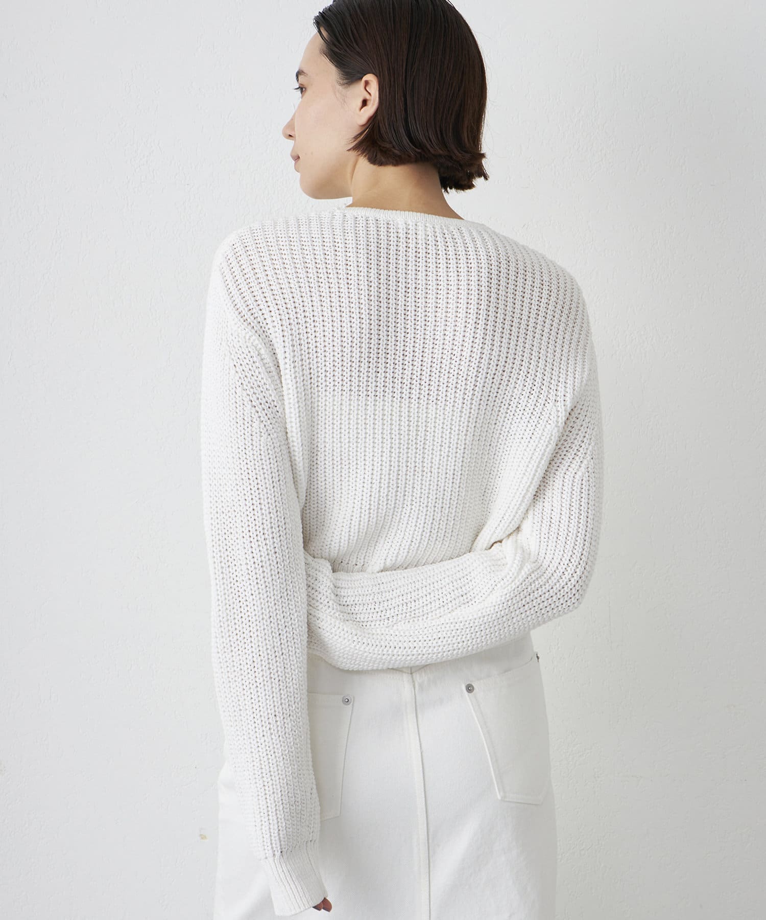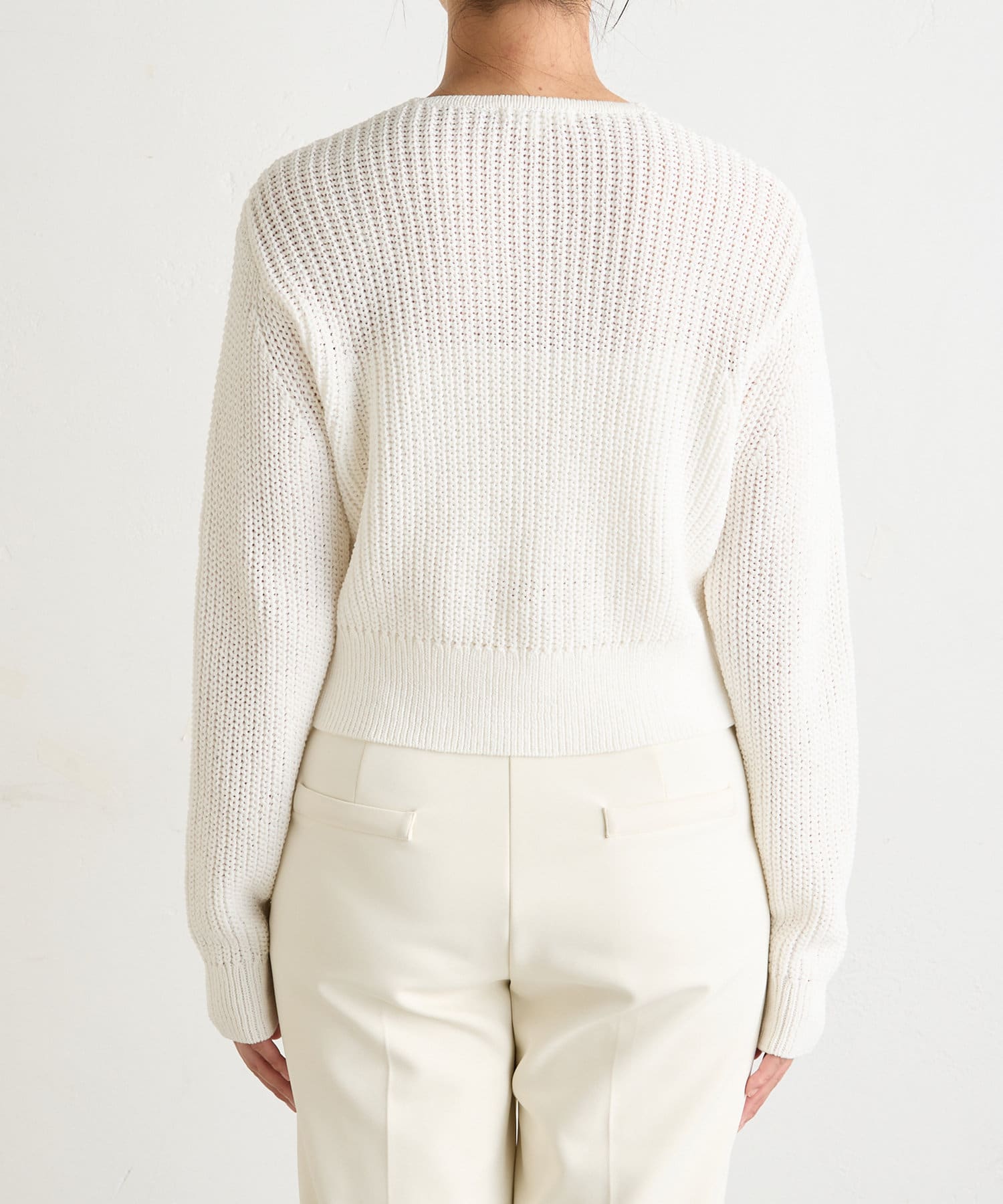 ■さりげない透け感のある編地の表情が軽やかで女性らしい一枚。