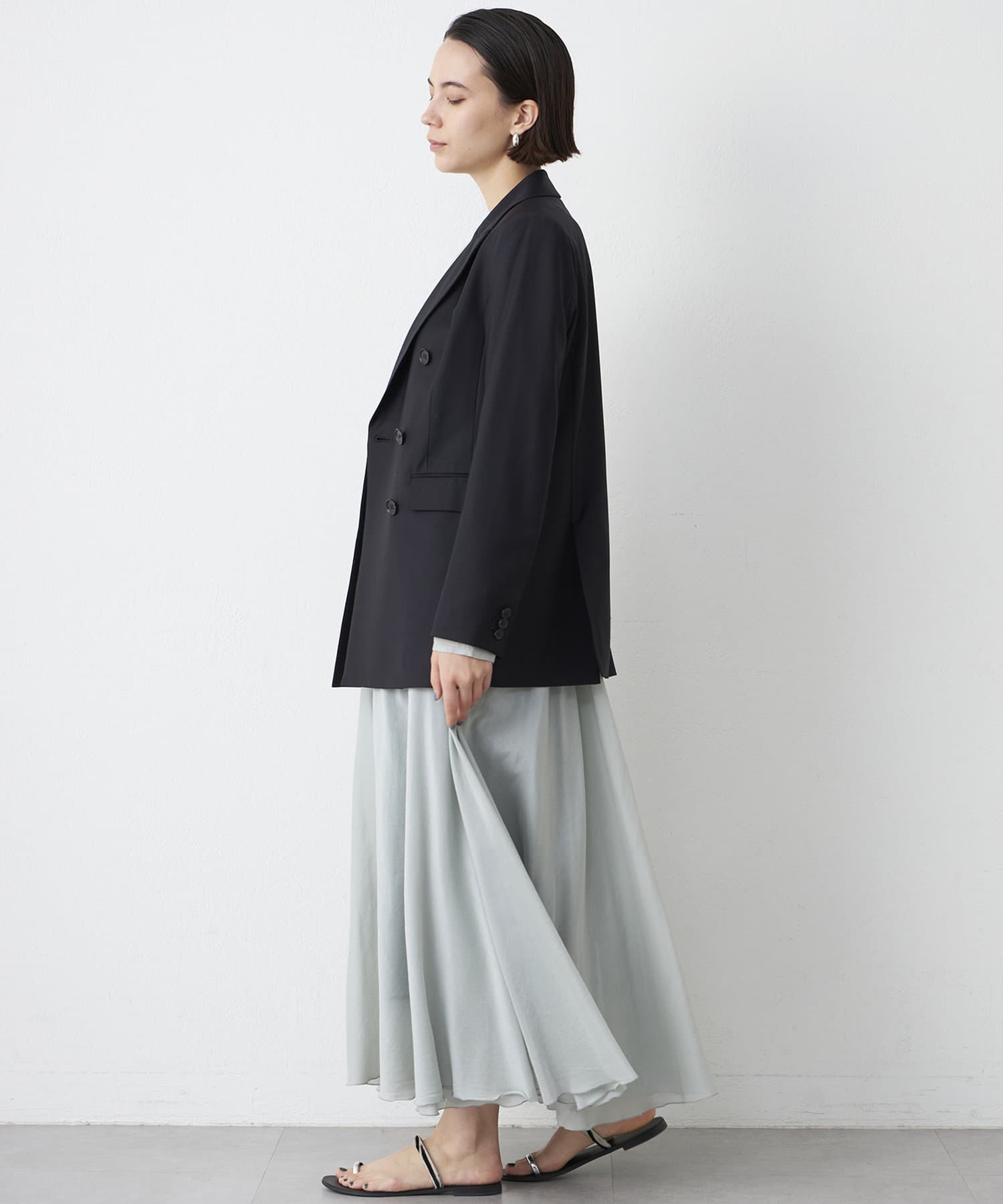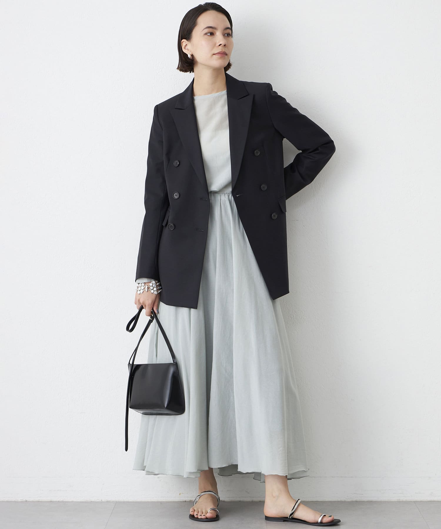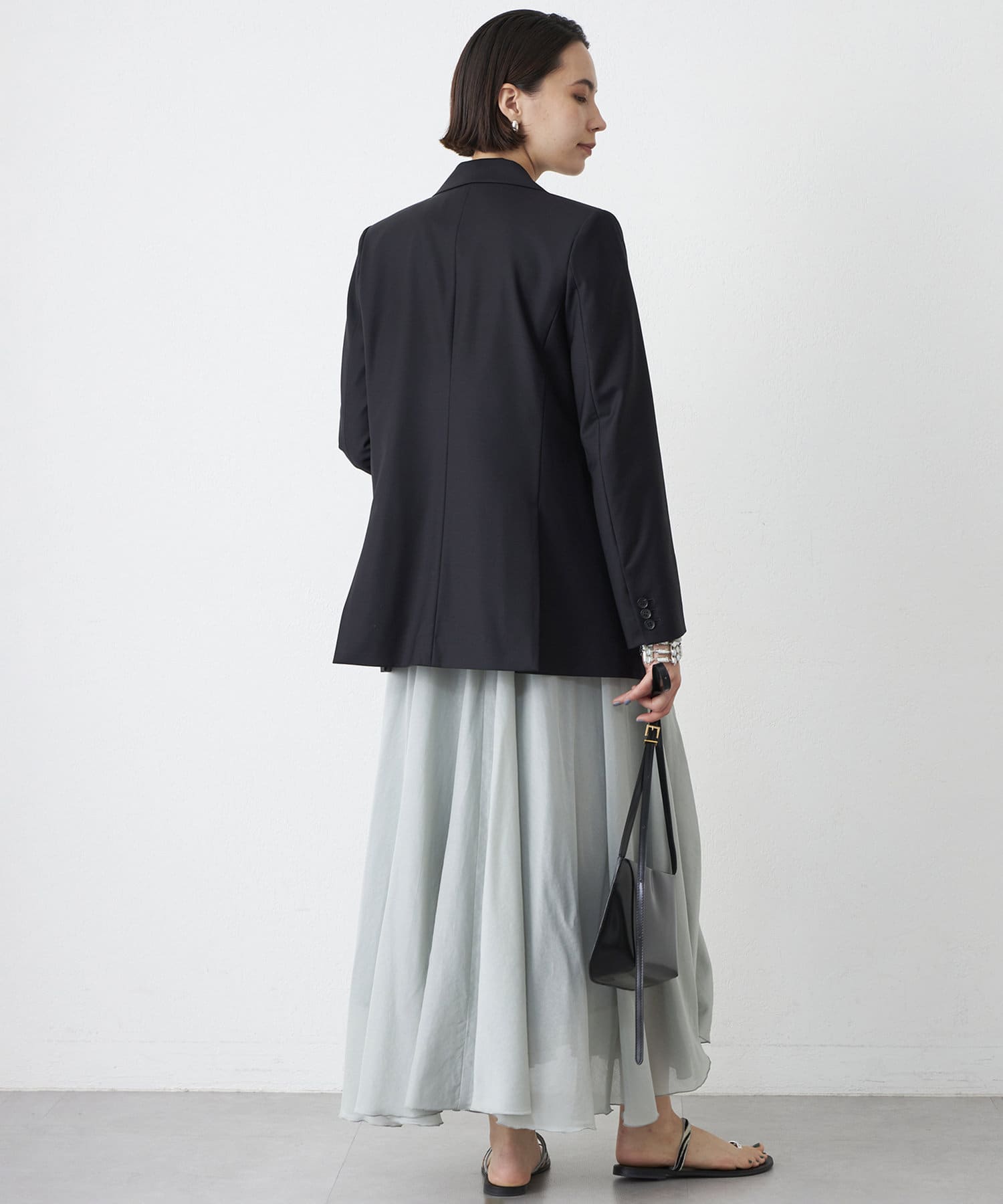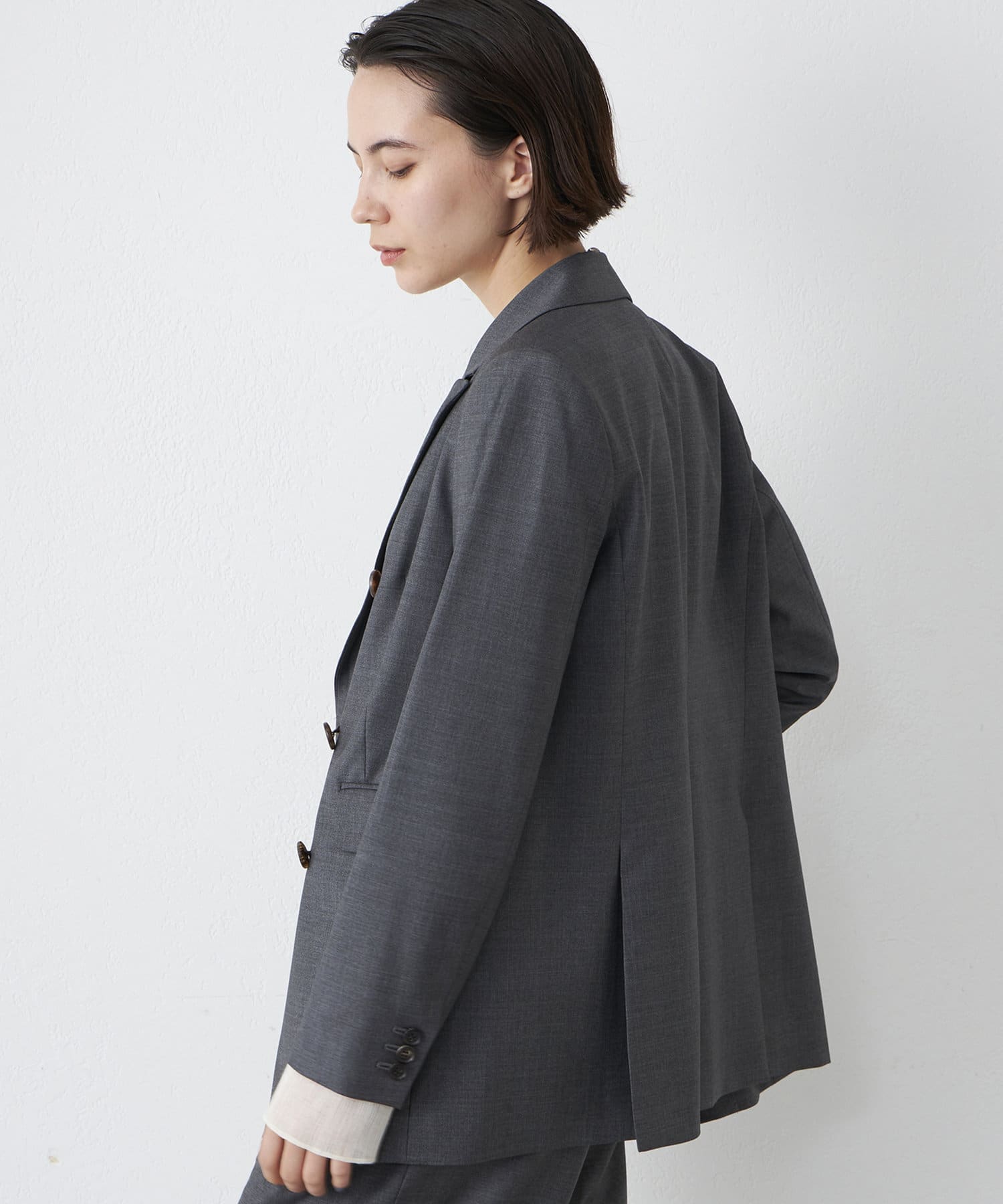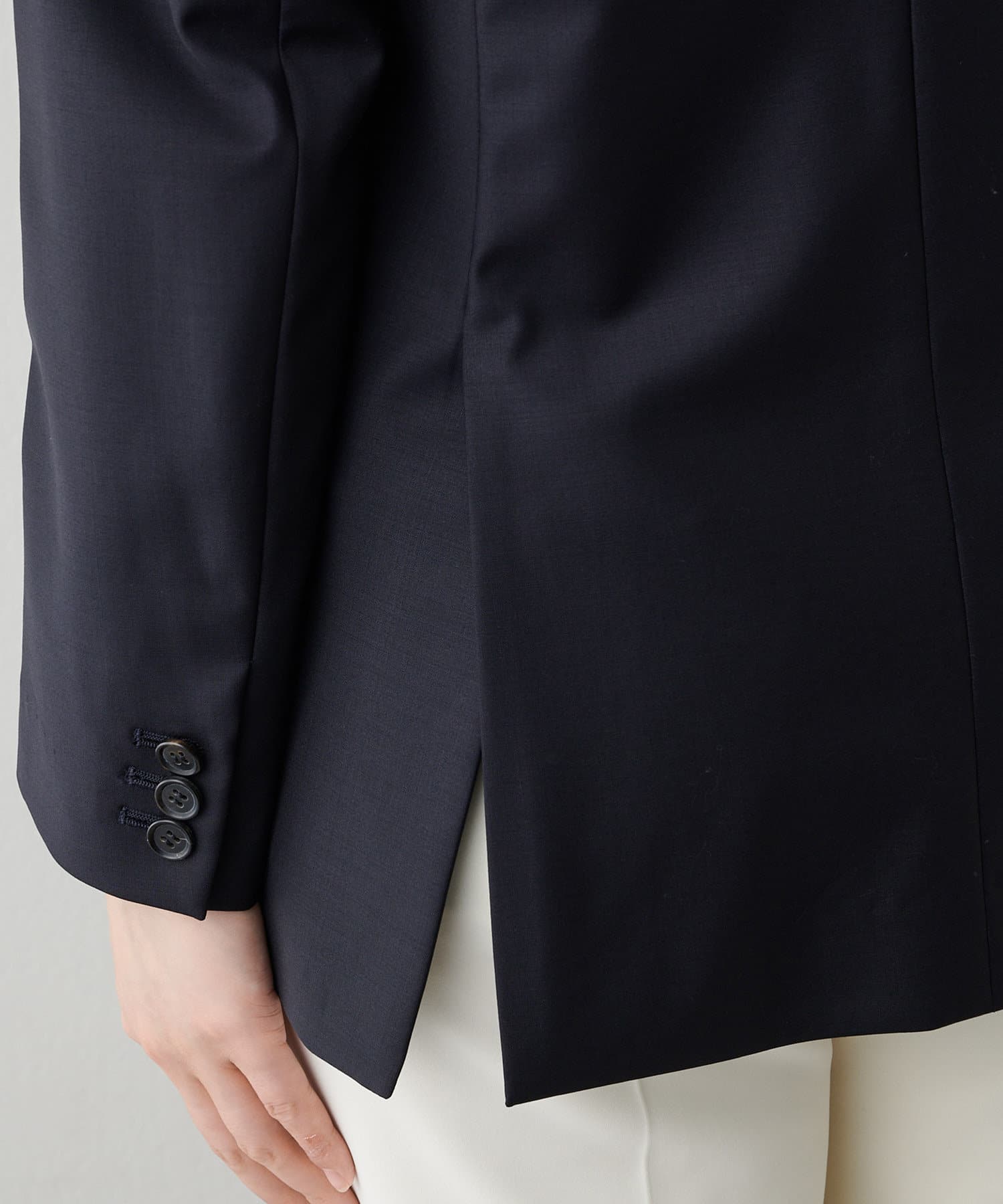 ■後ろはサイドベンツを入れることでボトムシルエットを選ばず、エレガントなムードをプラス。