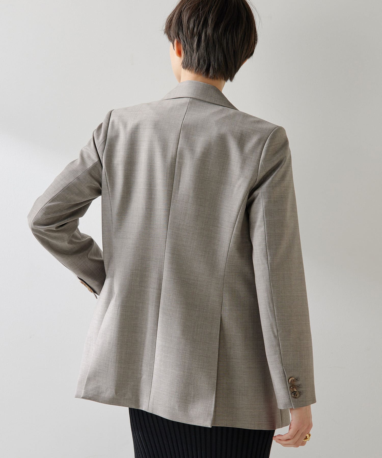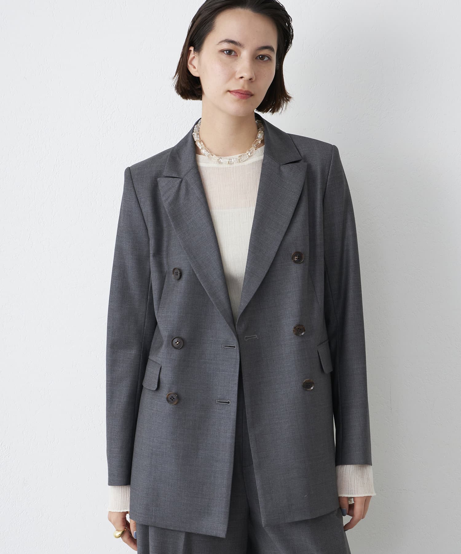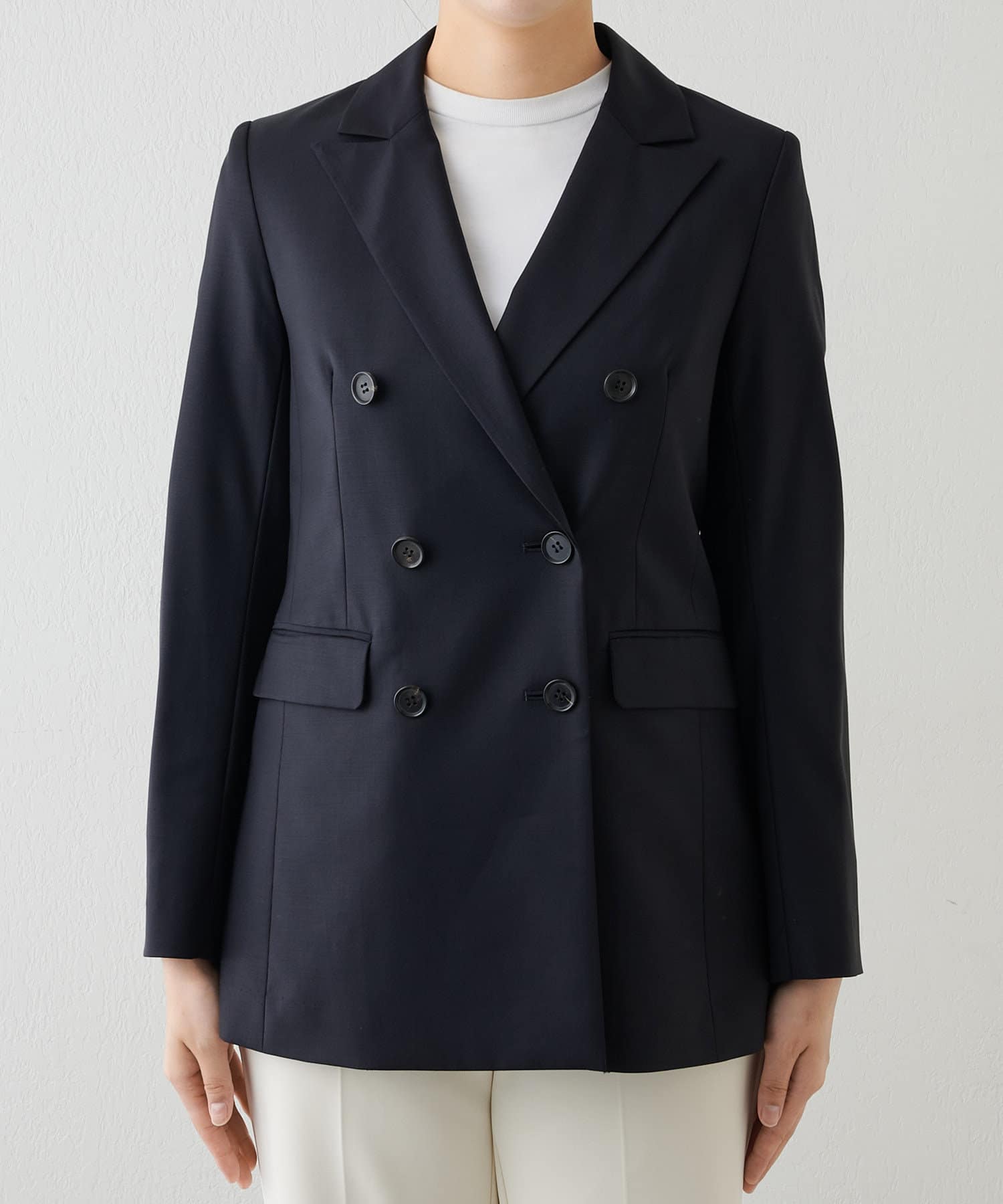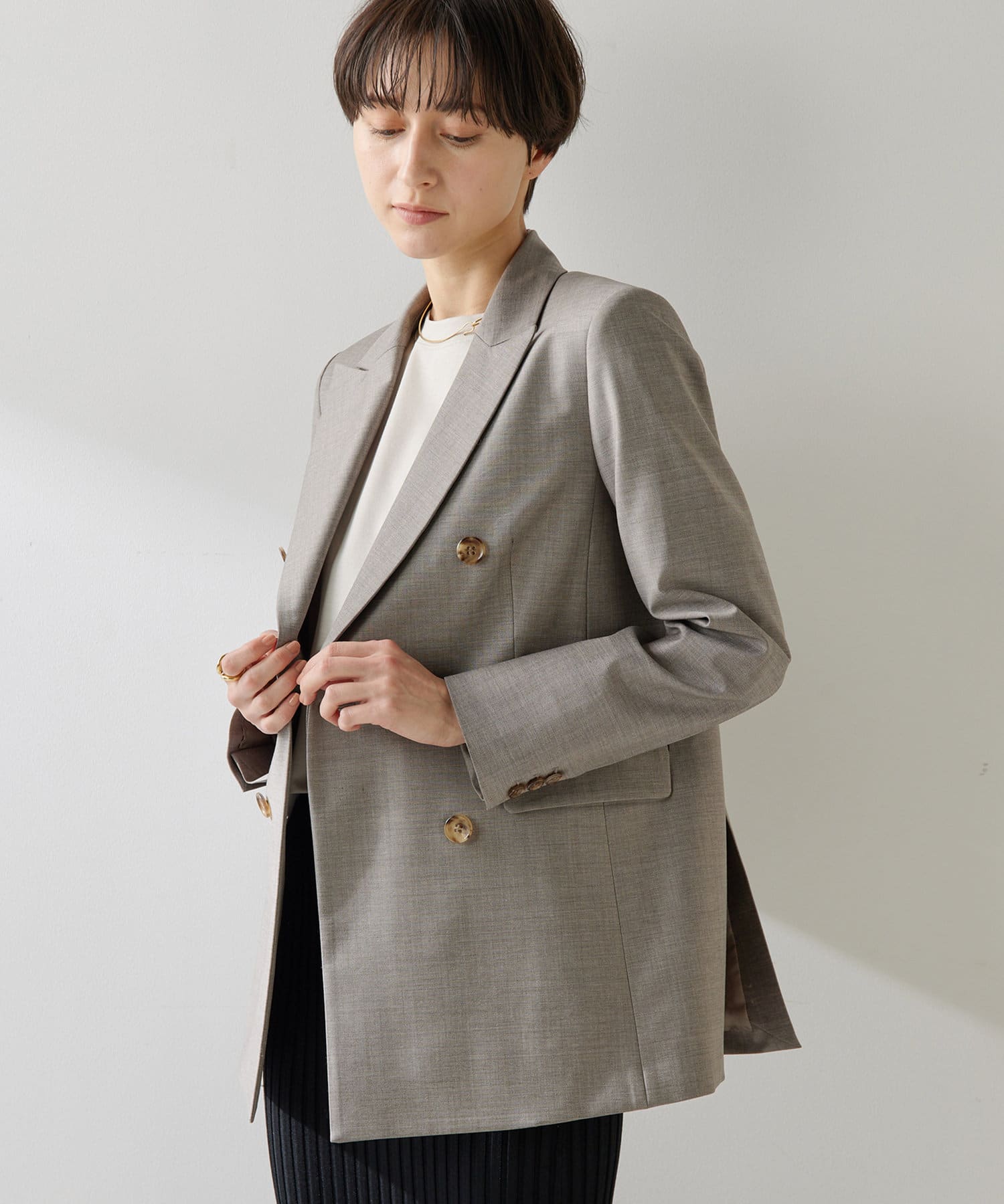 ■クラシカルな佇まいのピークドラペルダブルジャケット。