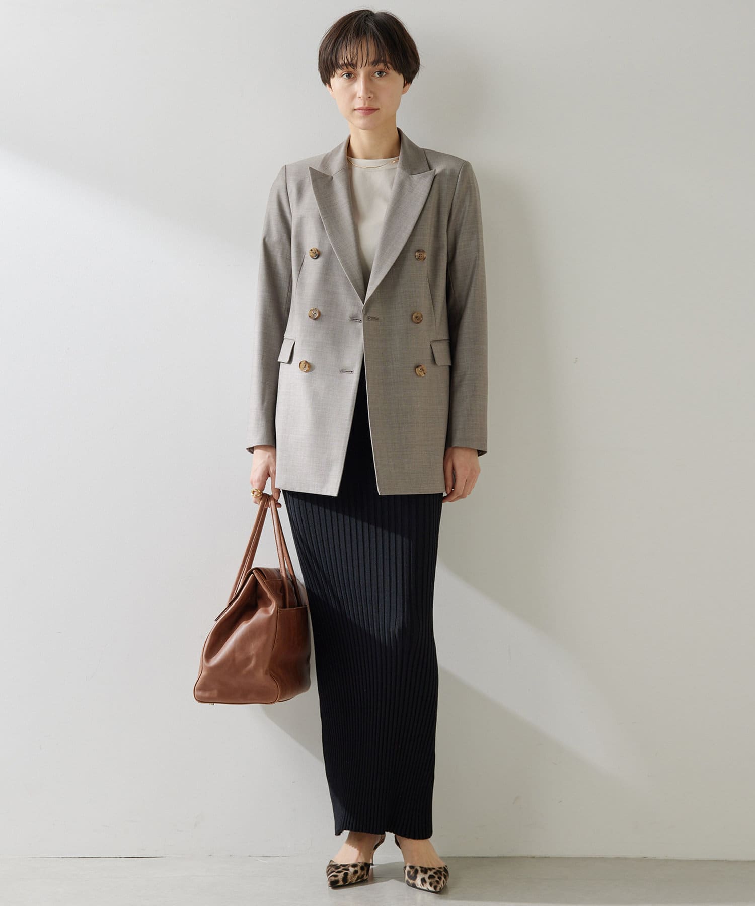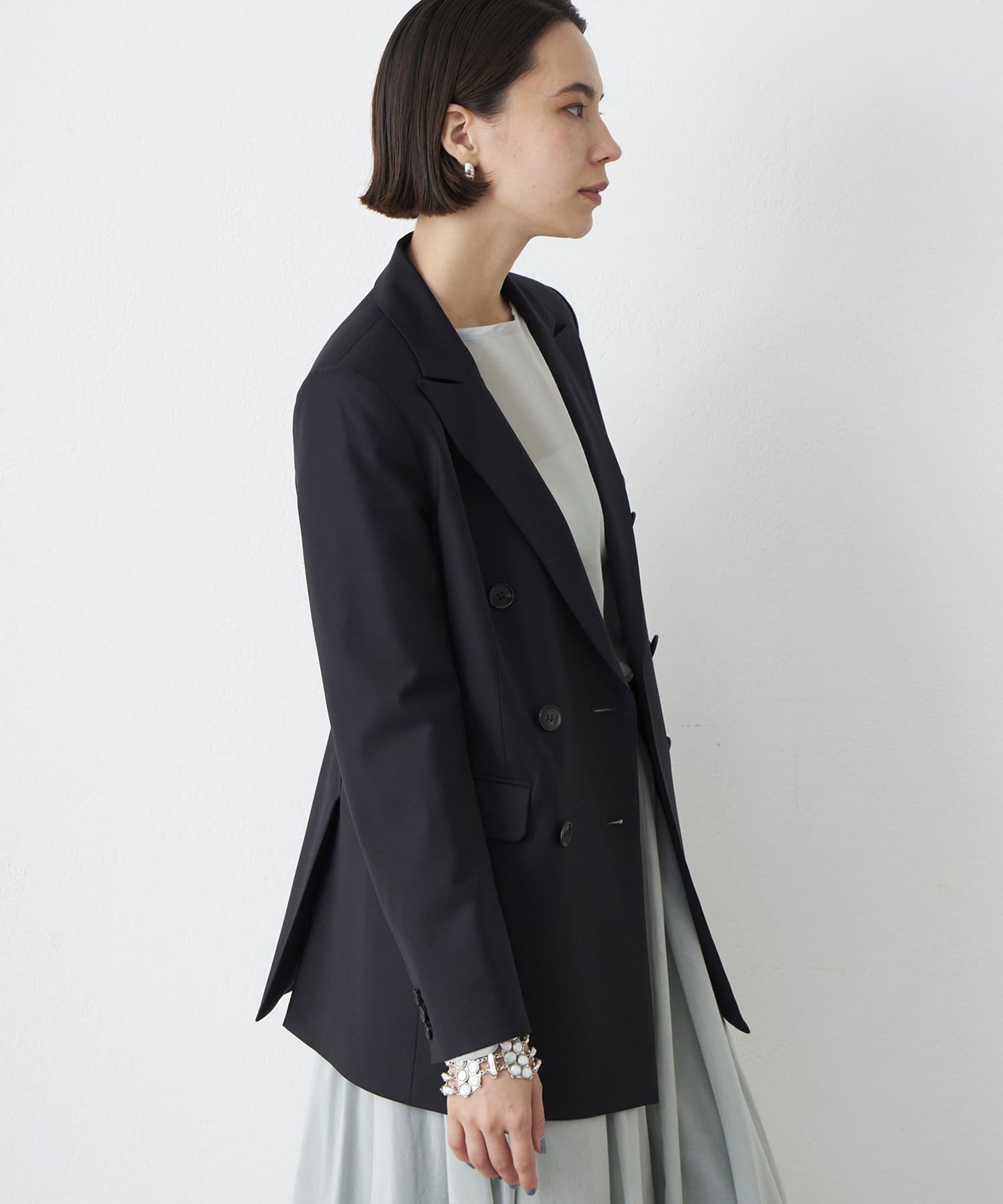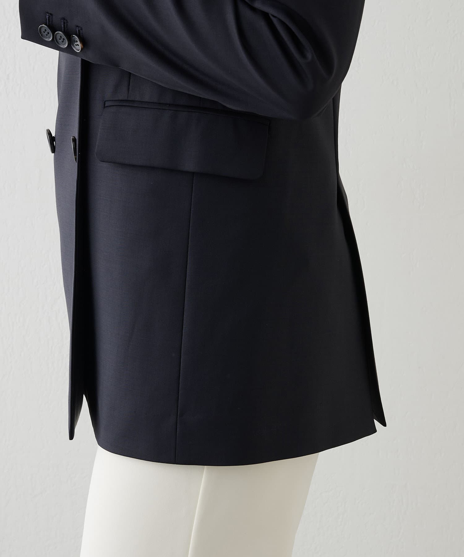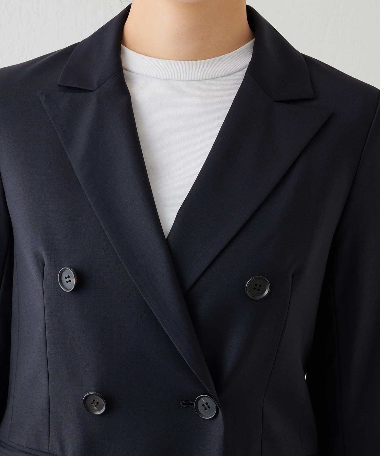 ■クラシカルな佇まいのピークドラペルダブルジャケット。