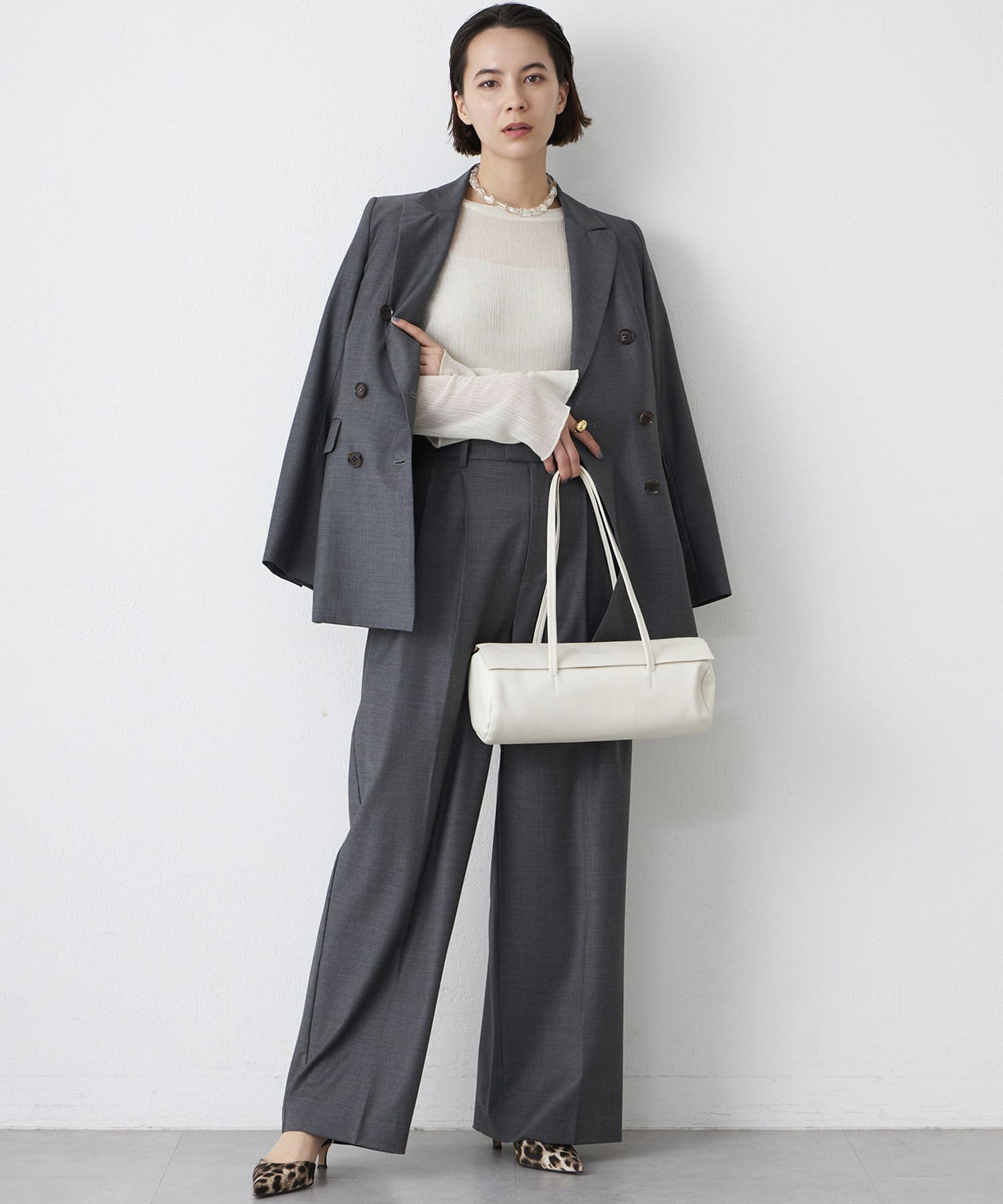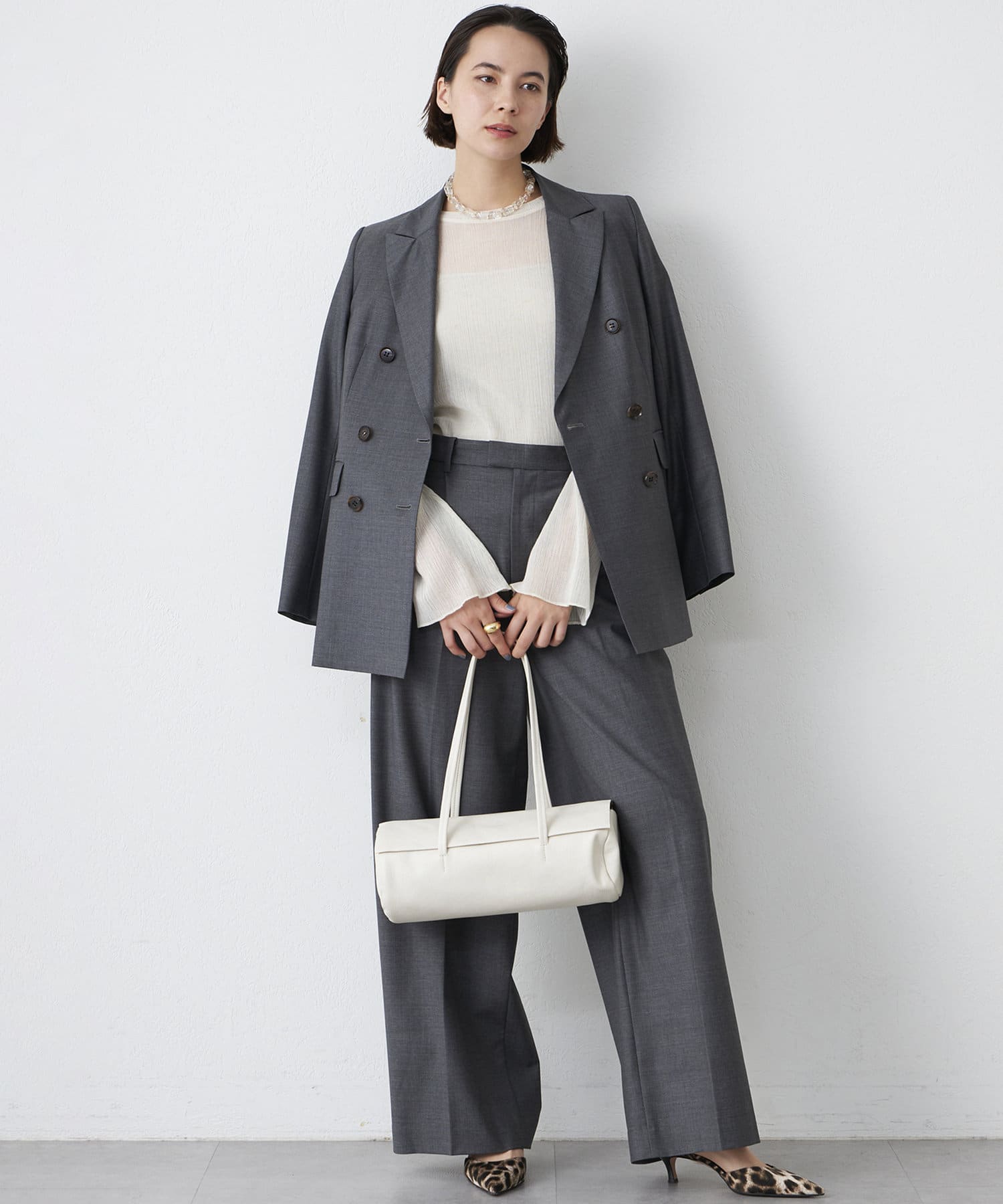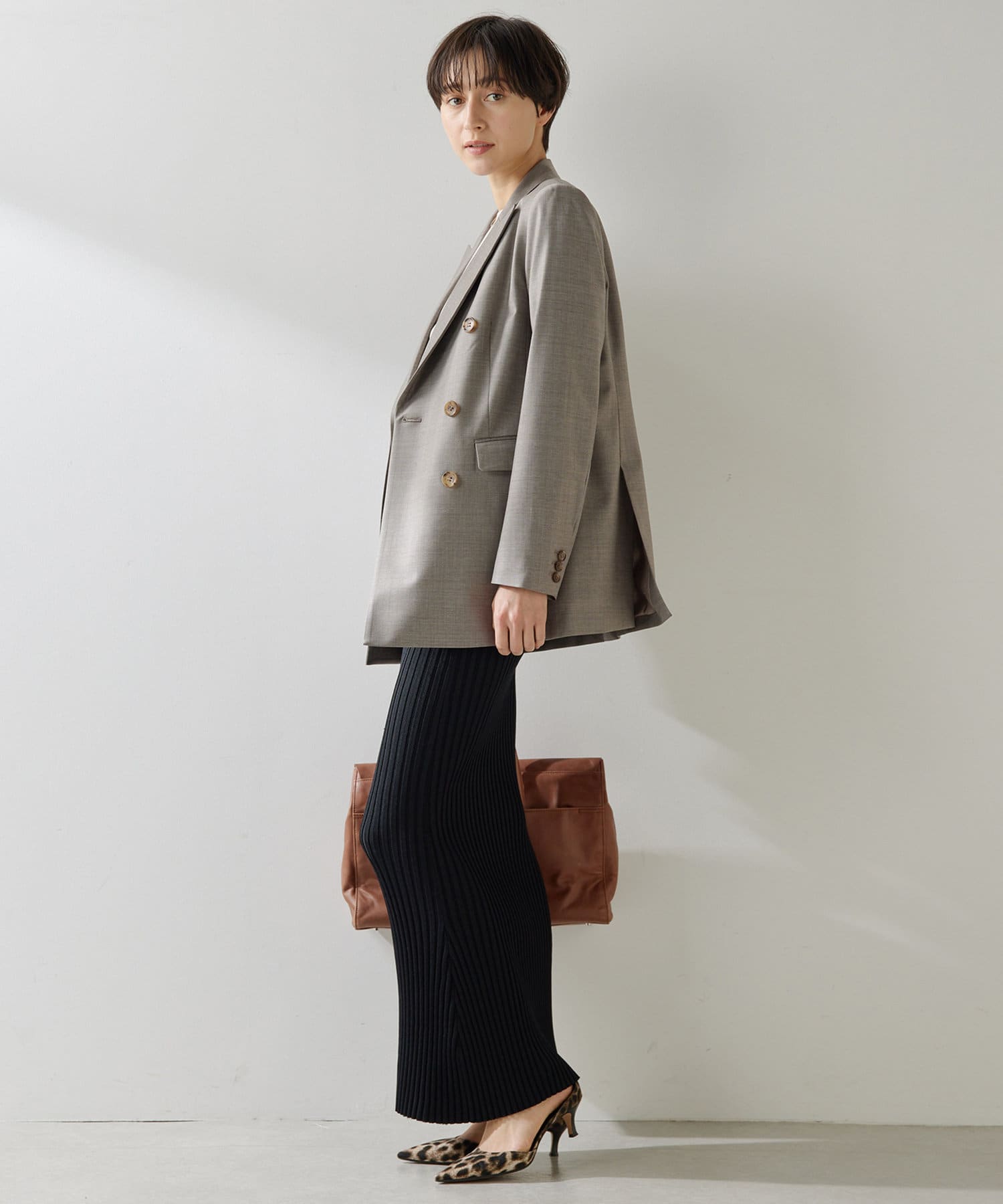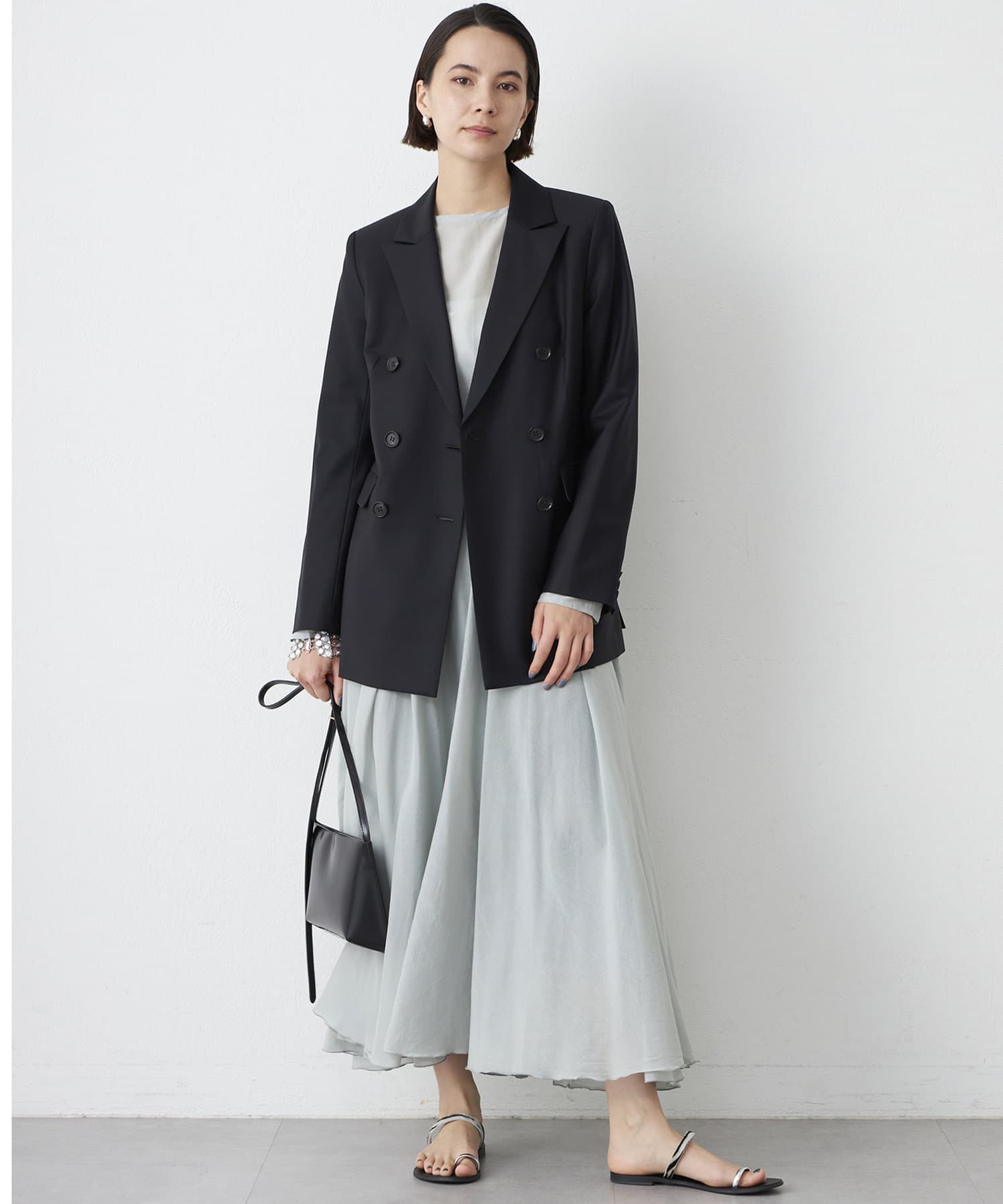 ■クラシカルな佇まいのピークドラペルダブルジャケット。
