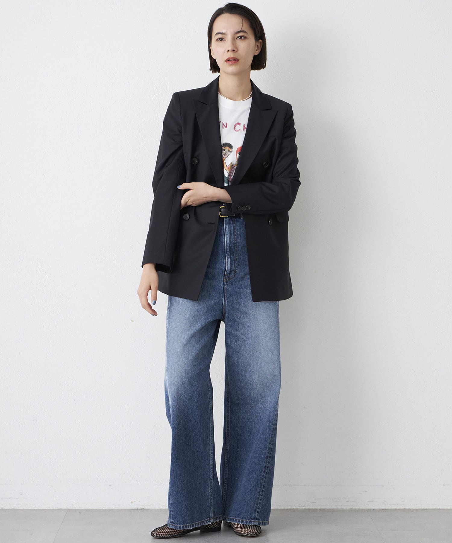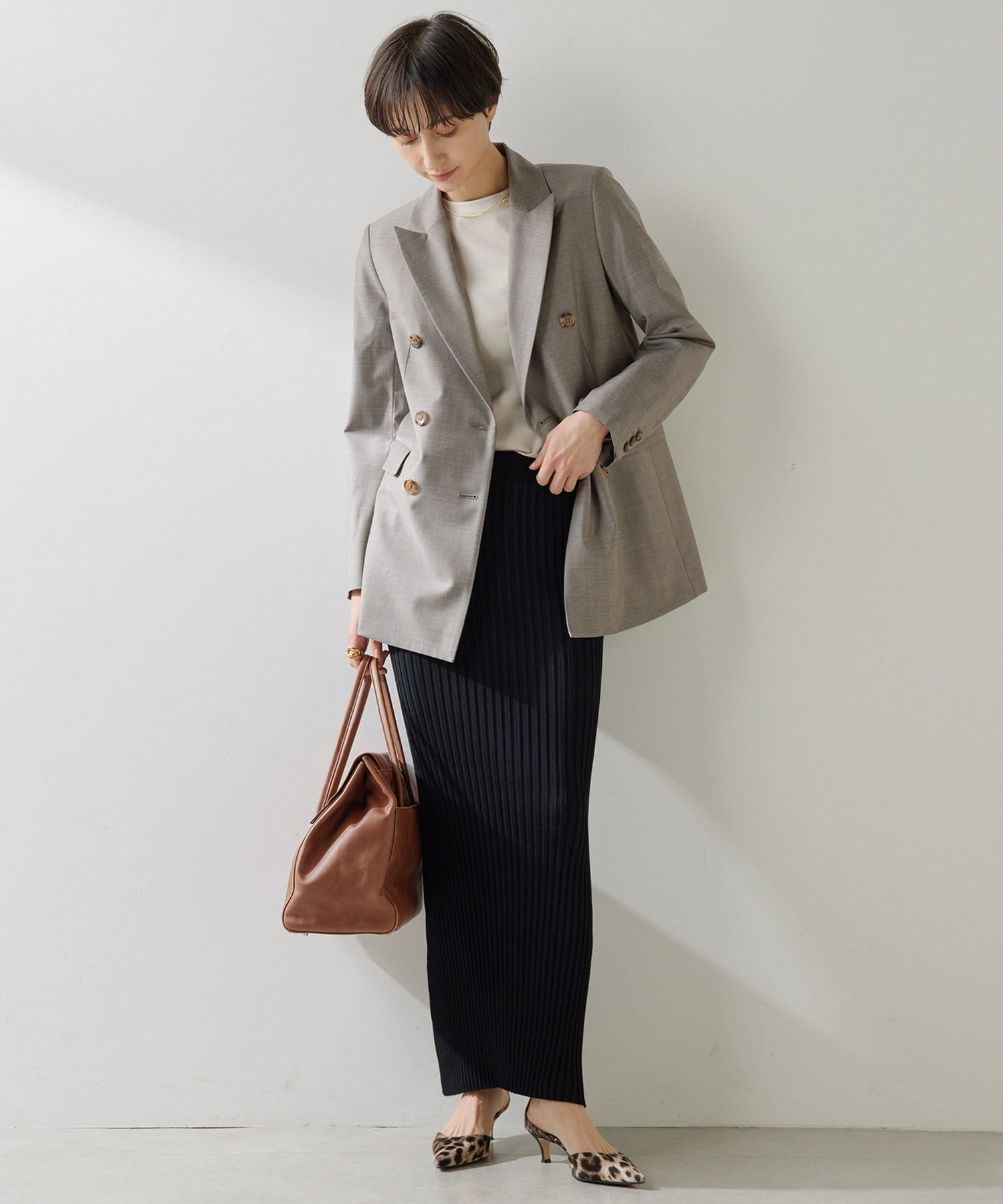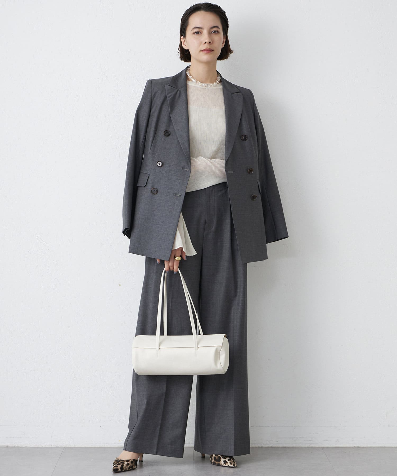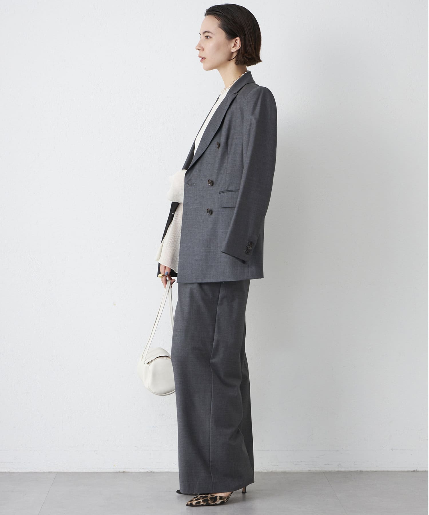 ■クラシカルな佇まいのピークドラペルダブルジャケット。