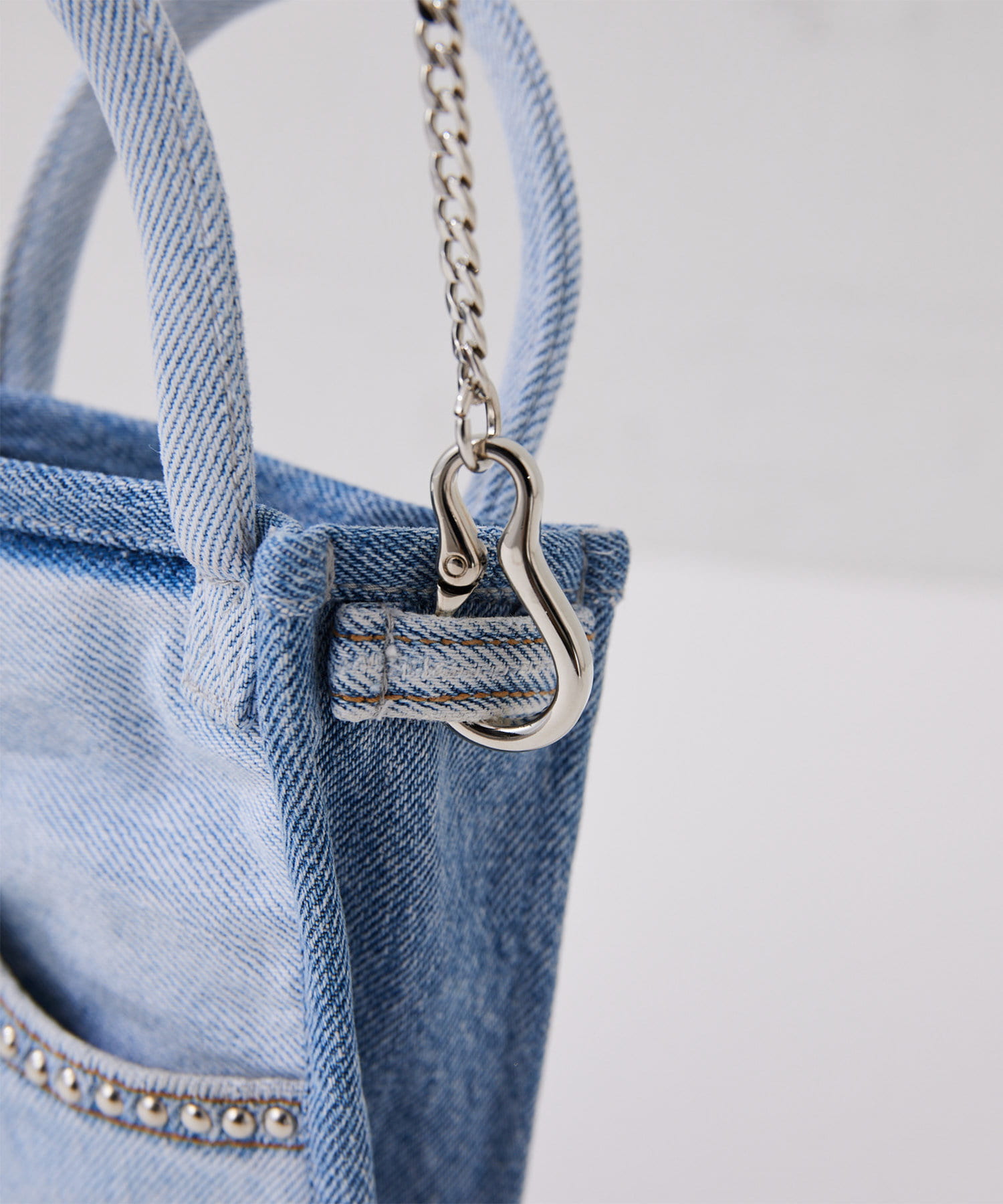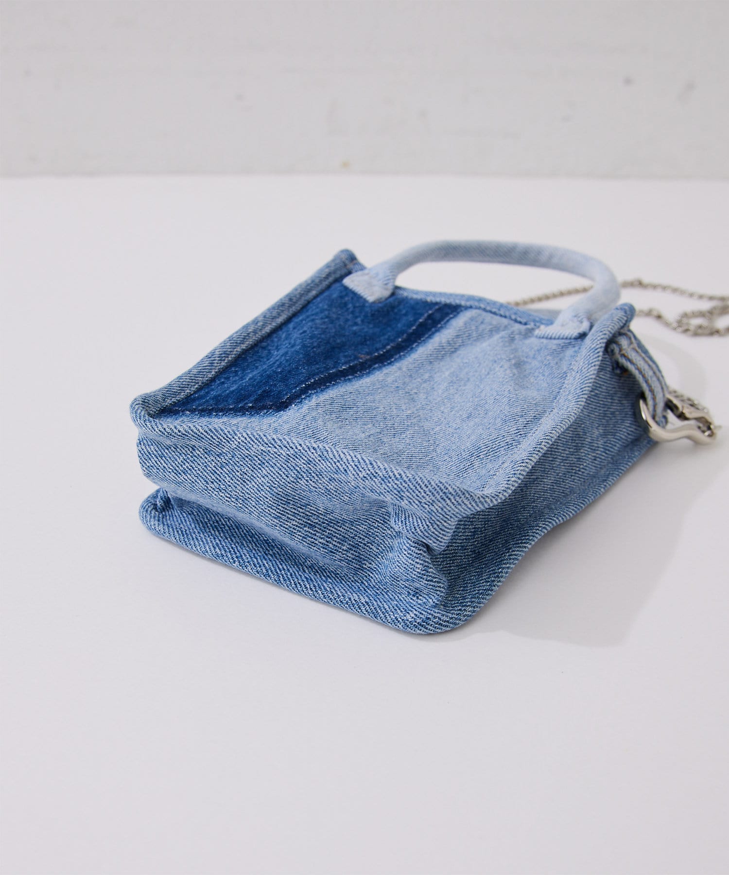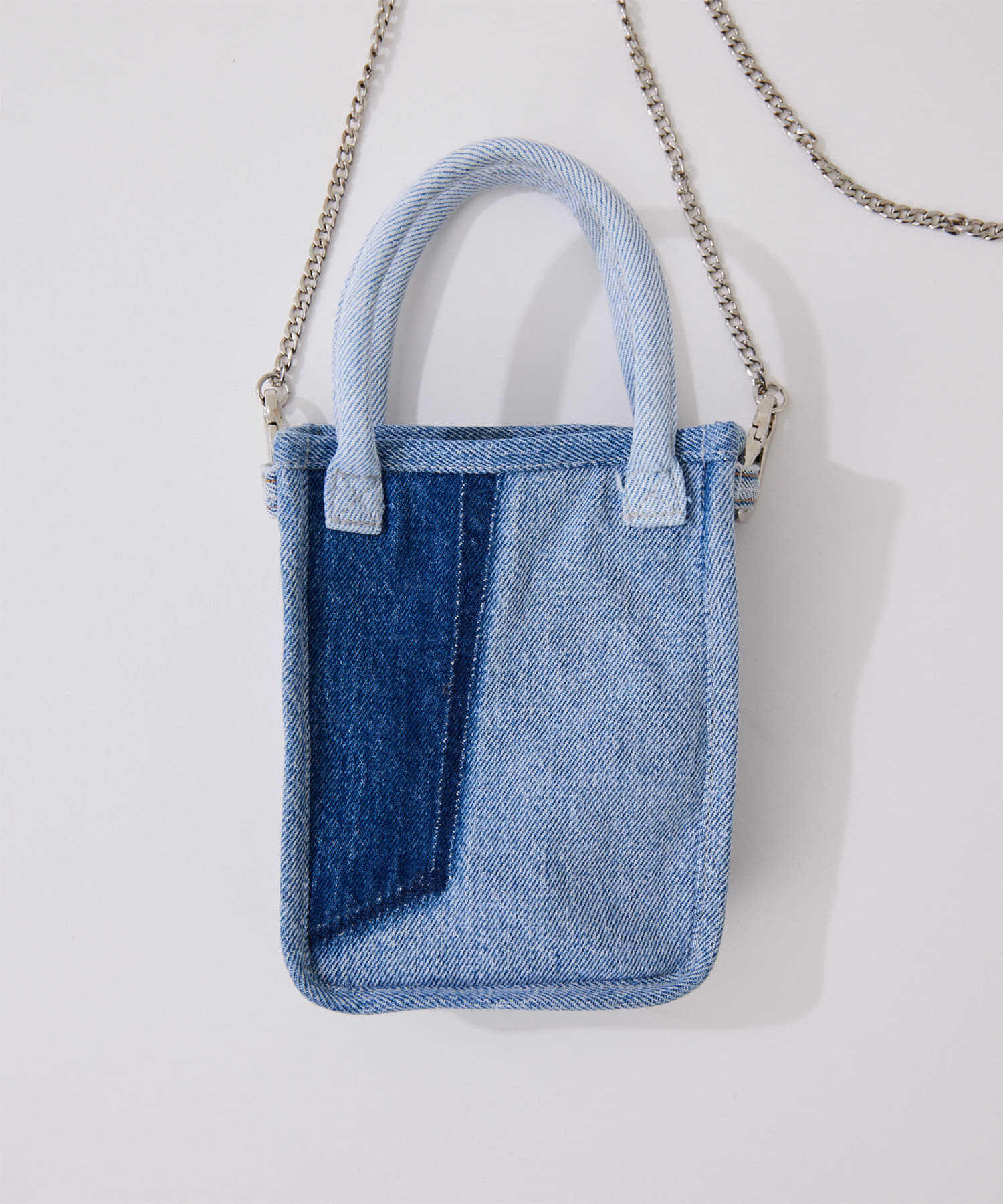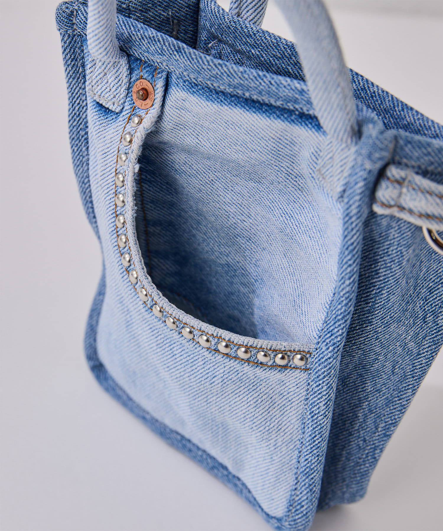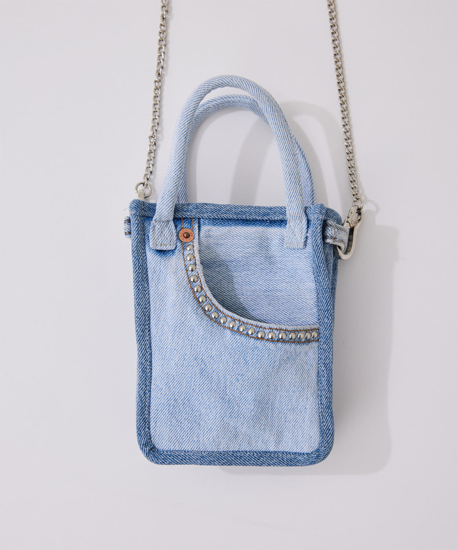 ■デニムのウエスタンポケット部分のパーツを使用したミニバッグ。