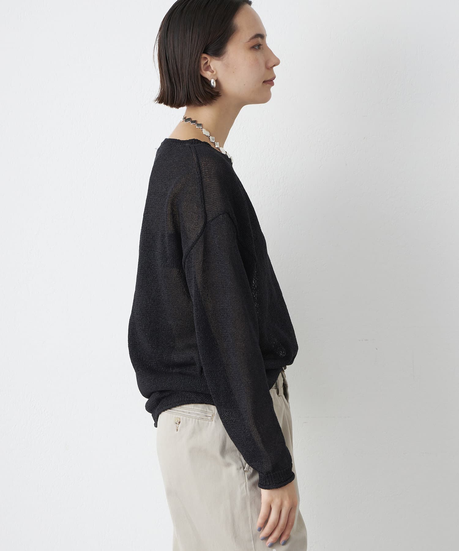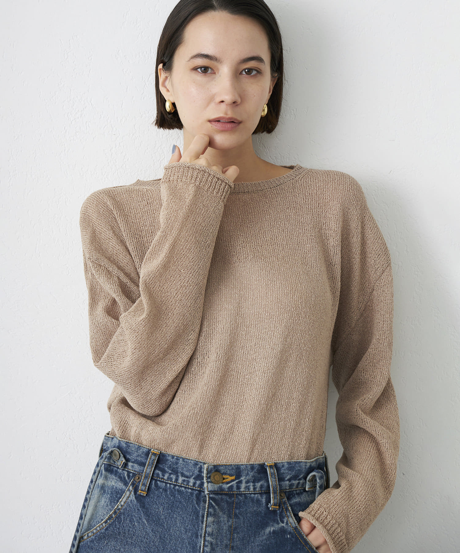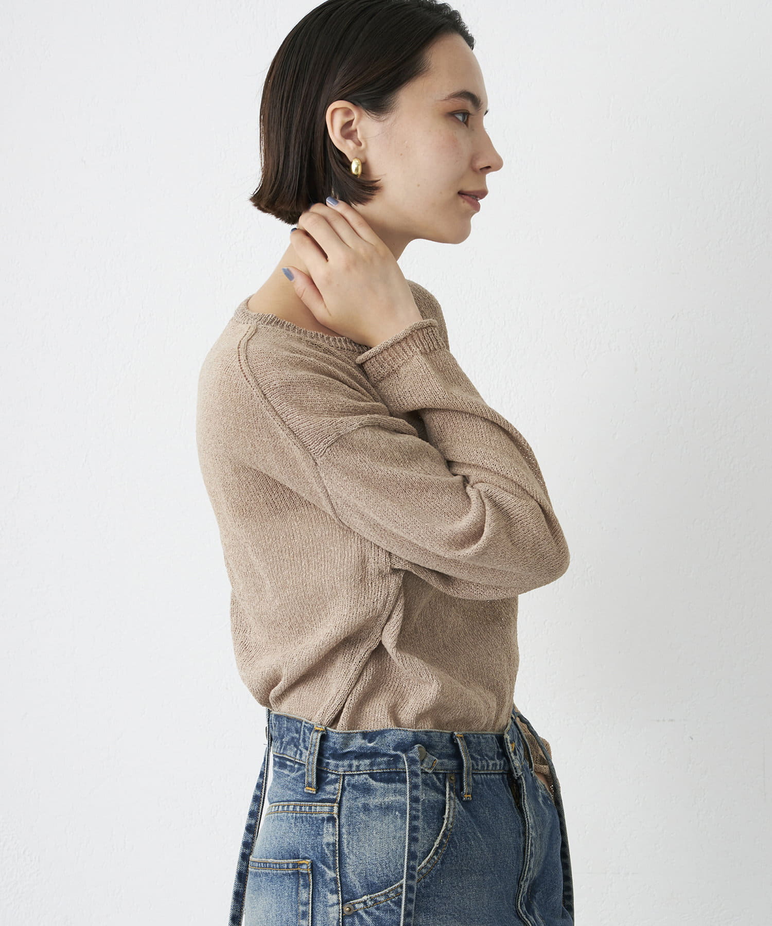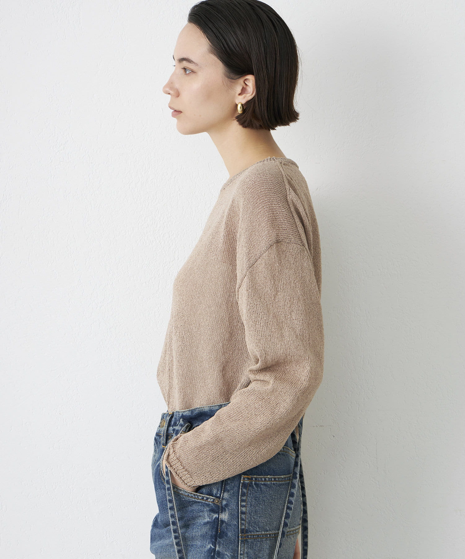 ■こなれ感のある詰まり気味のクルーネックに、袖口のスリットが手首をきれいに見せてくれるデザイン。