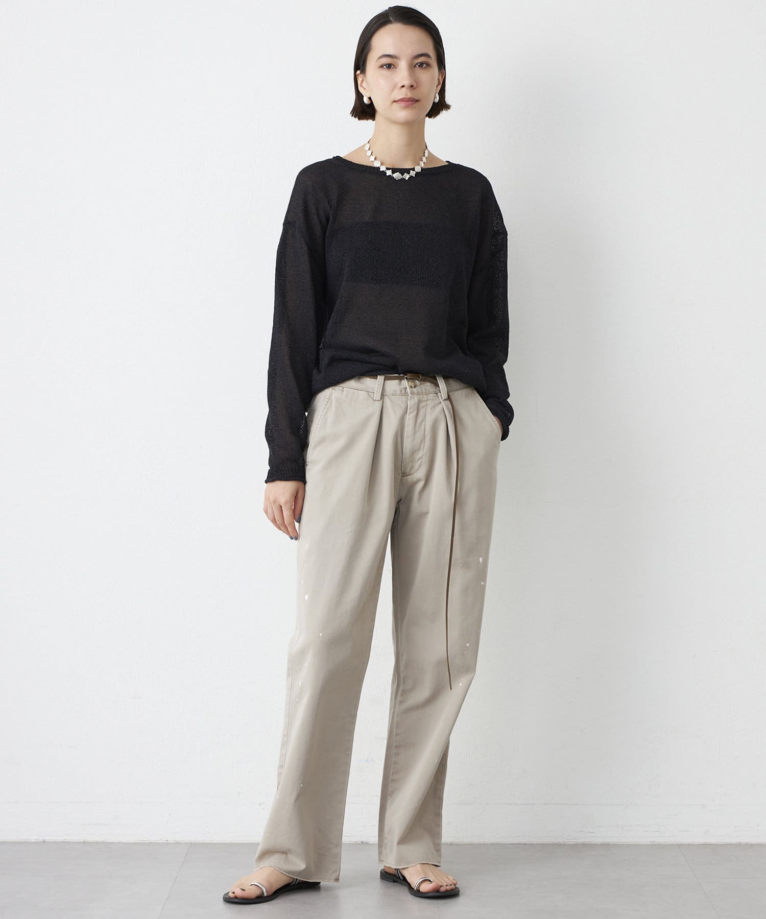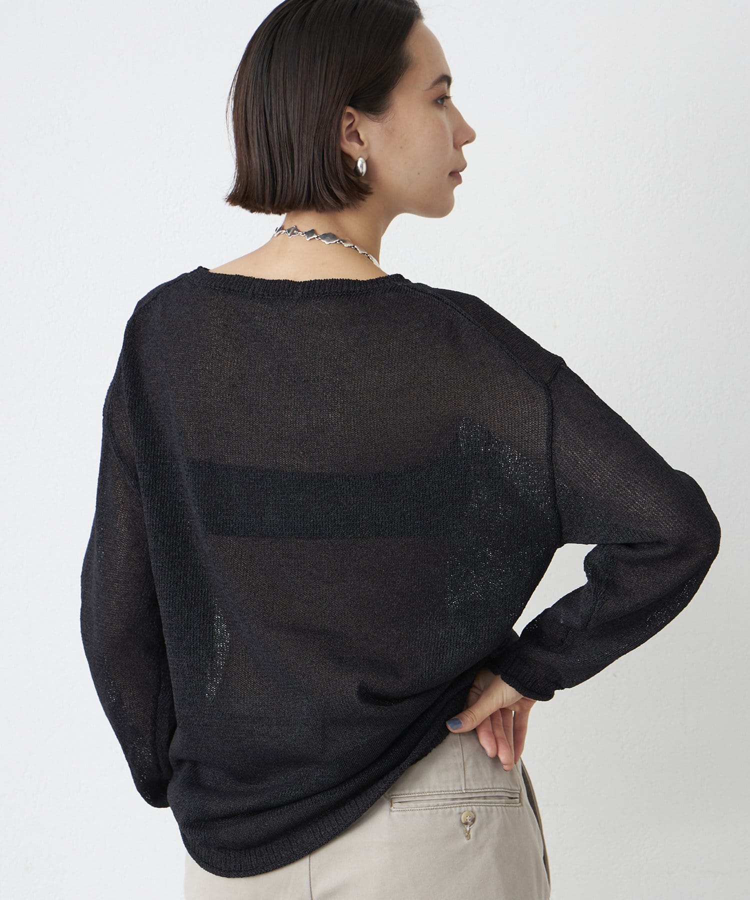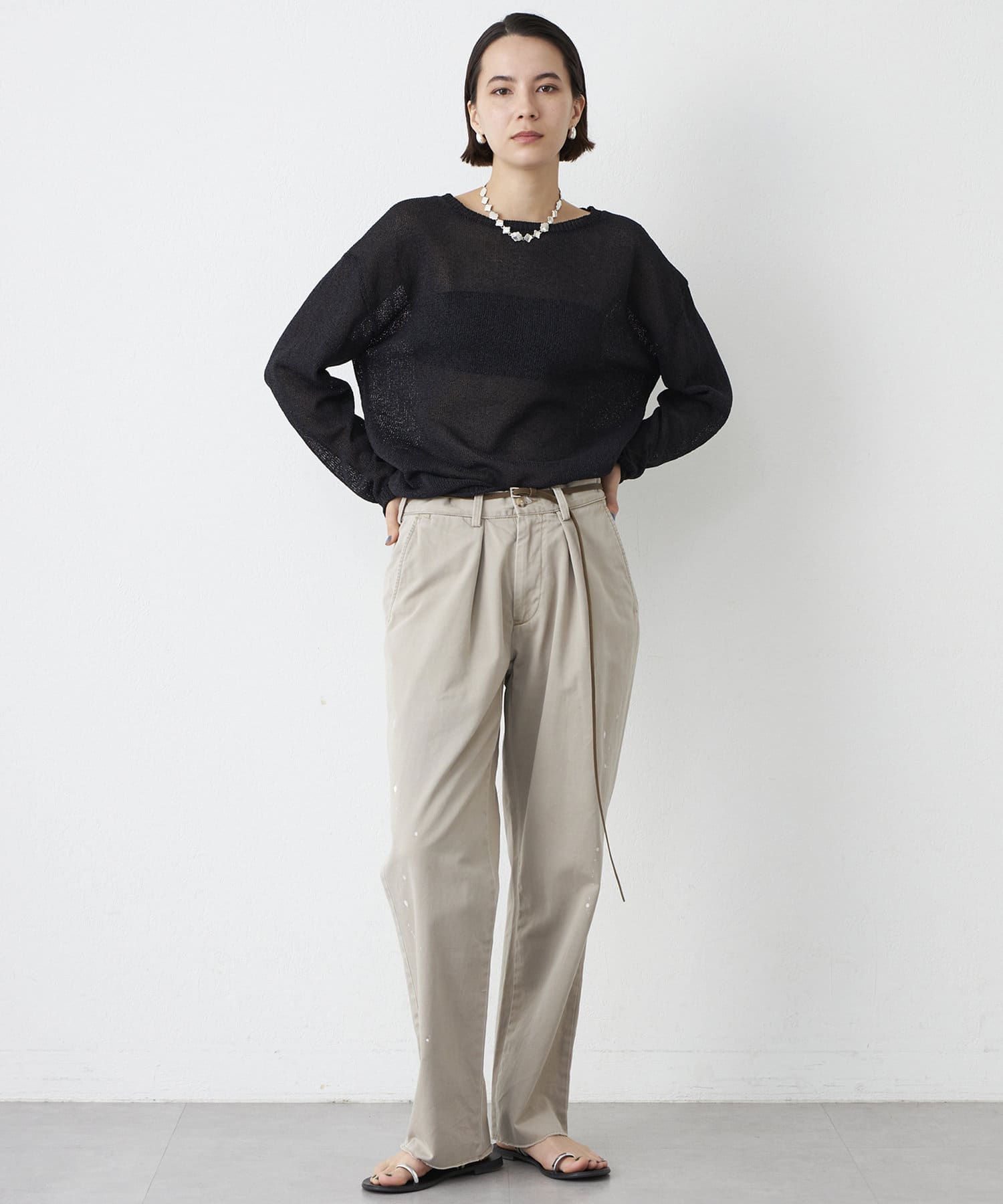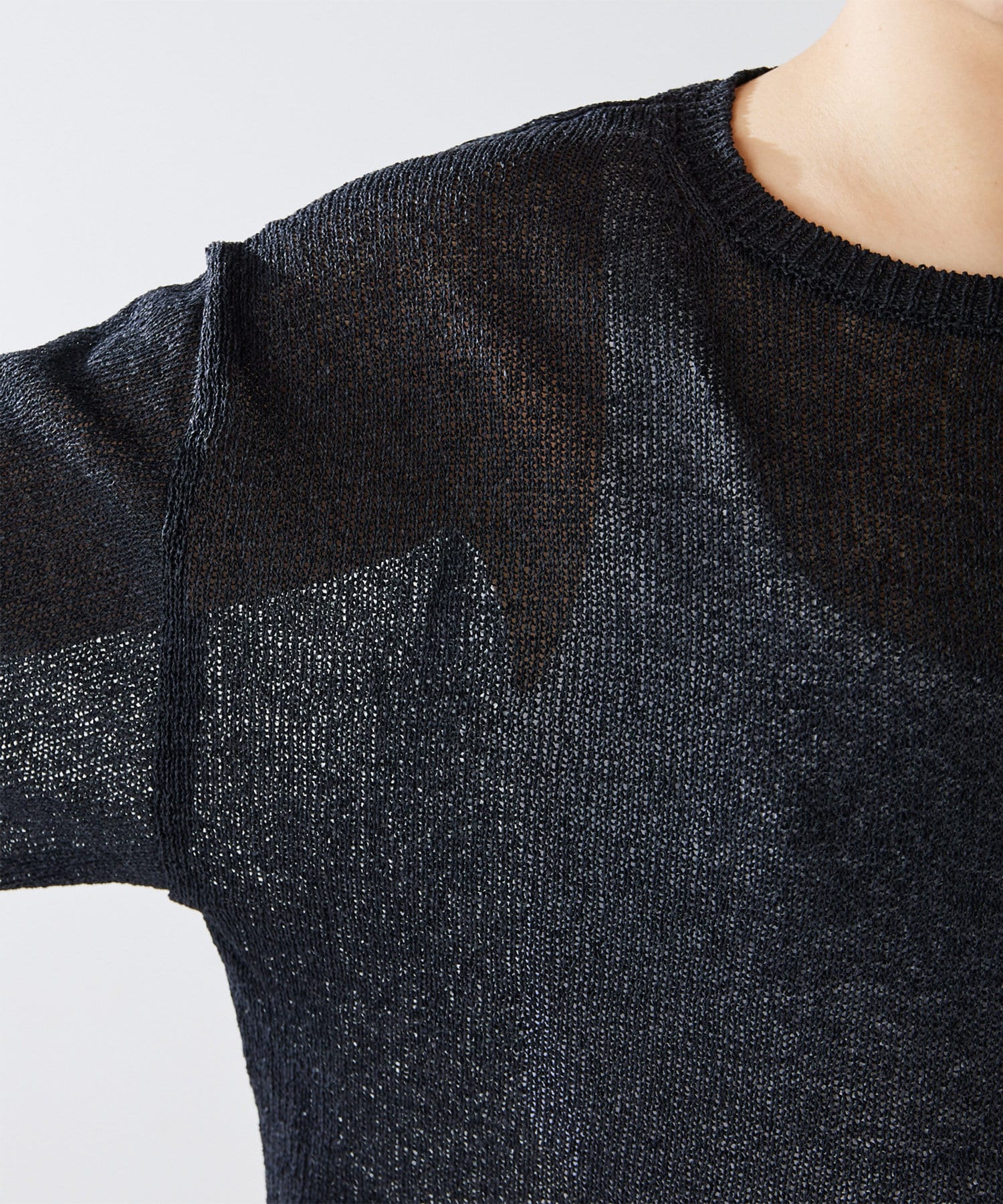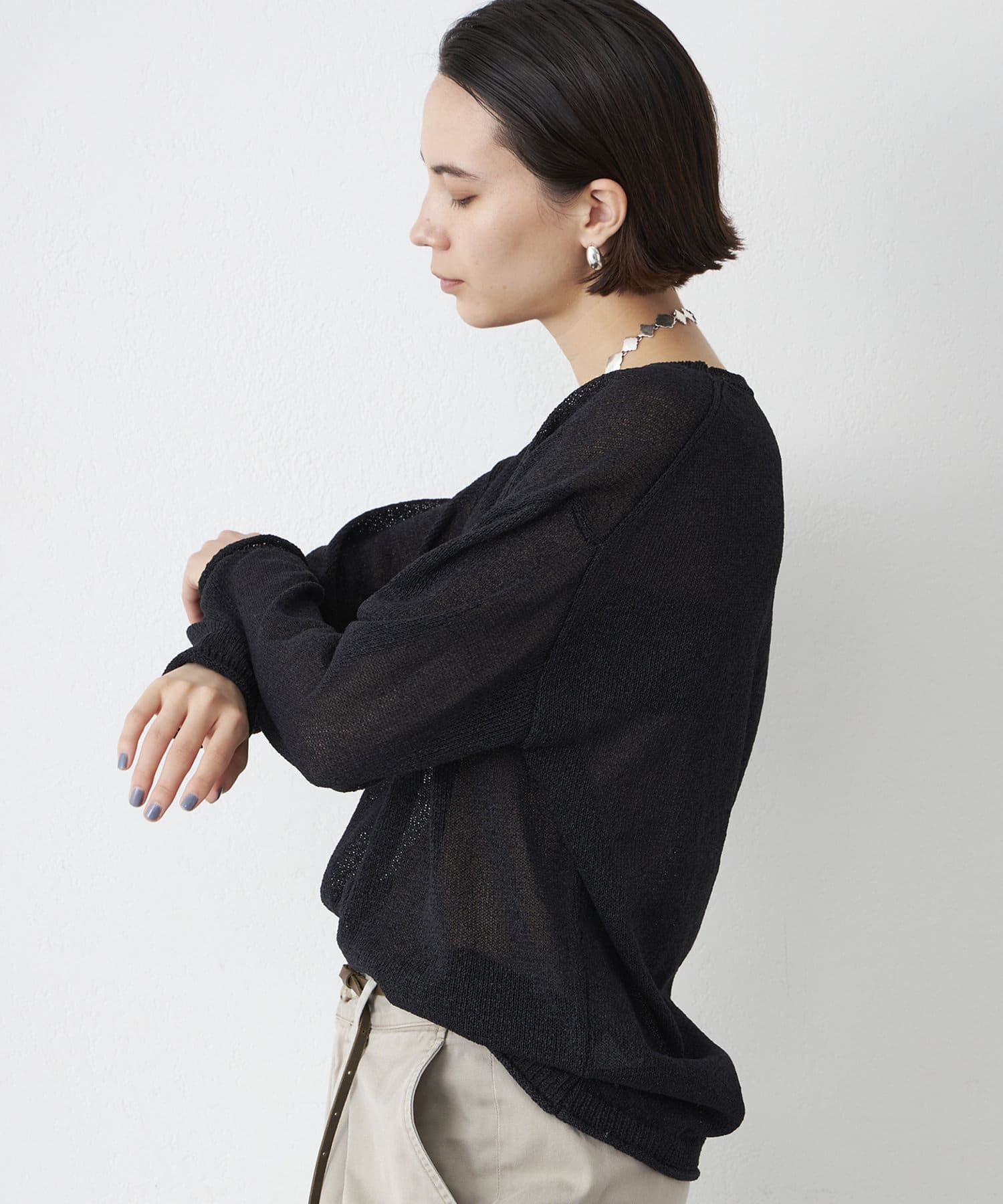 ■こなれ感のある詰まり気味のクルーネックに、袖口のスリットが手首をきれいに見せてくれるデザイン。