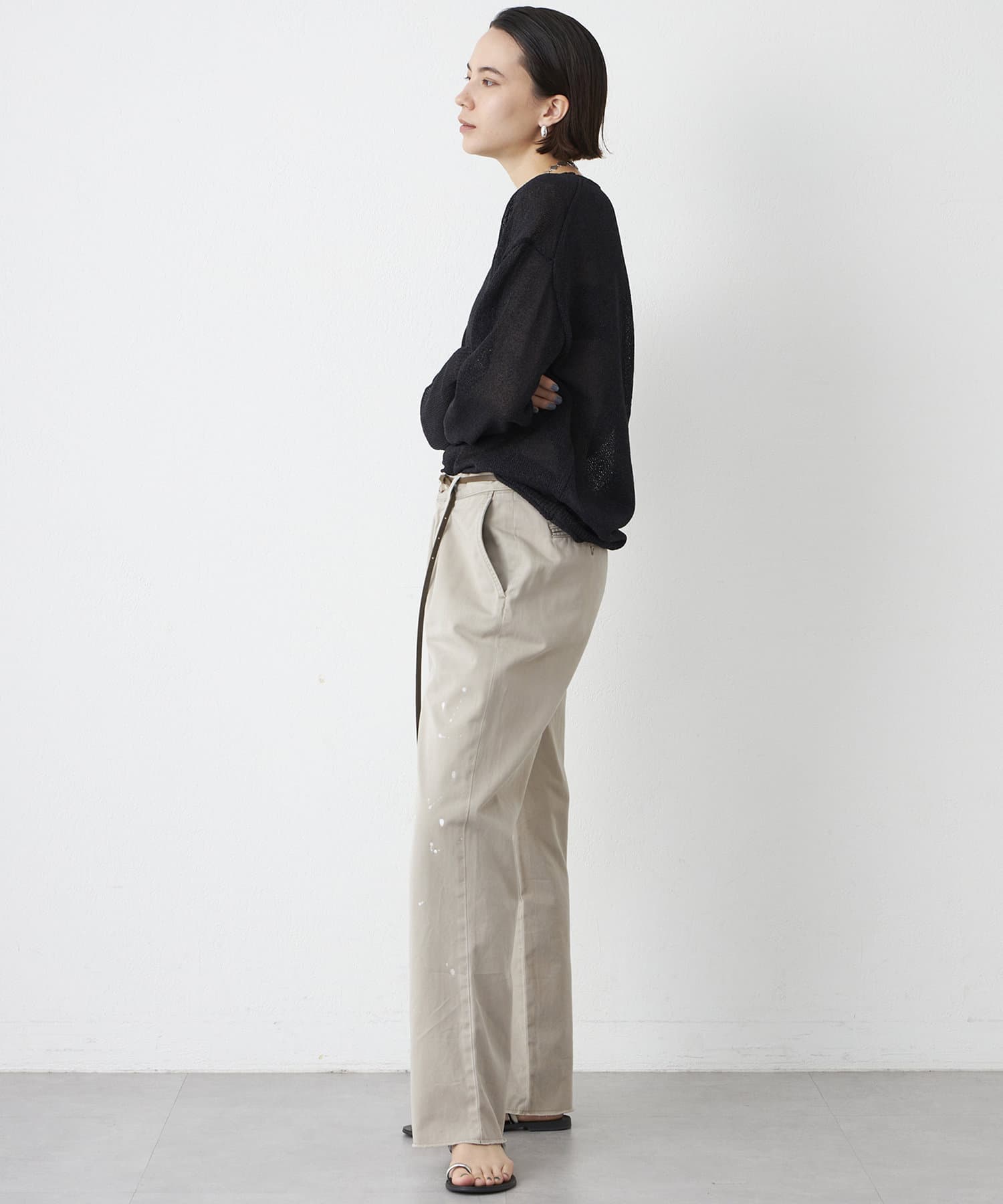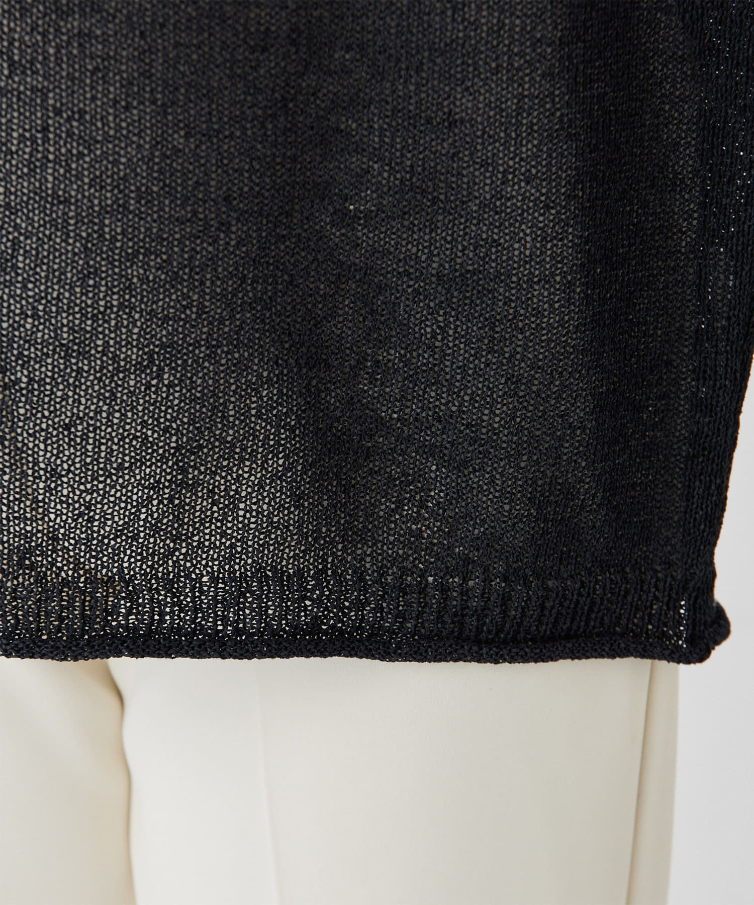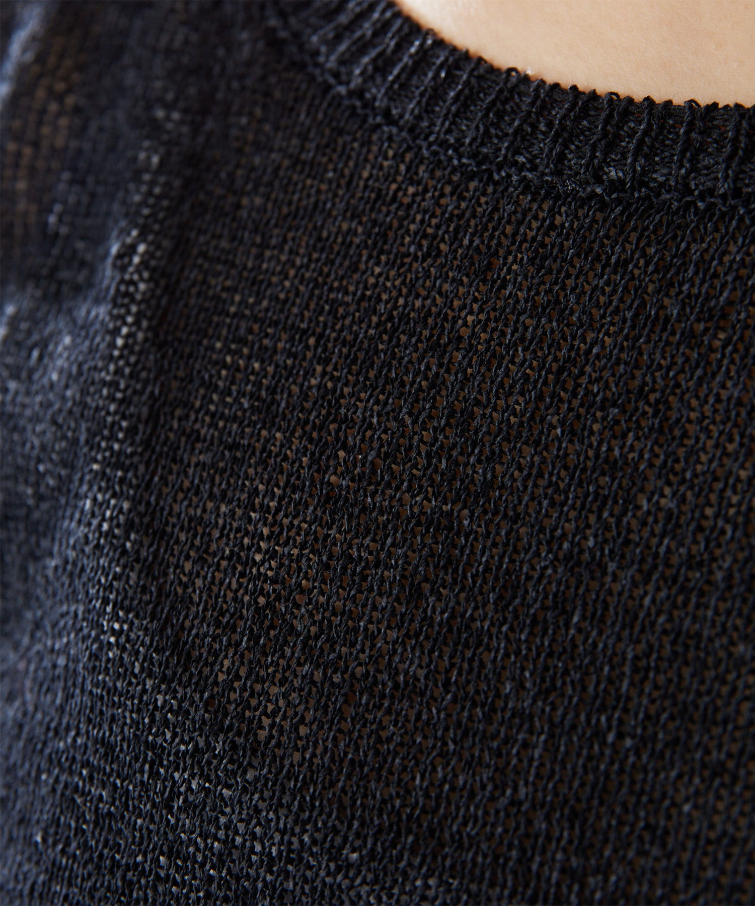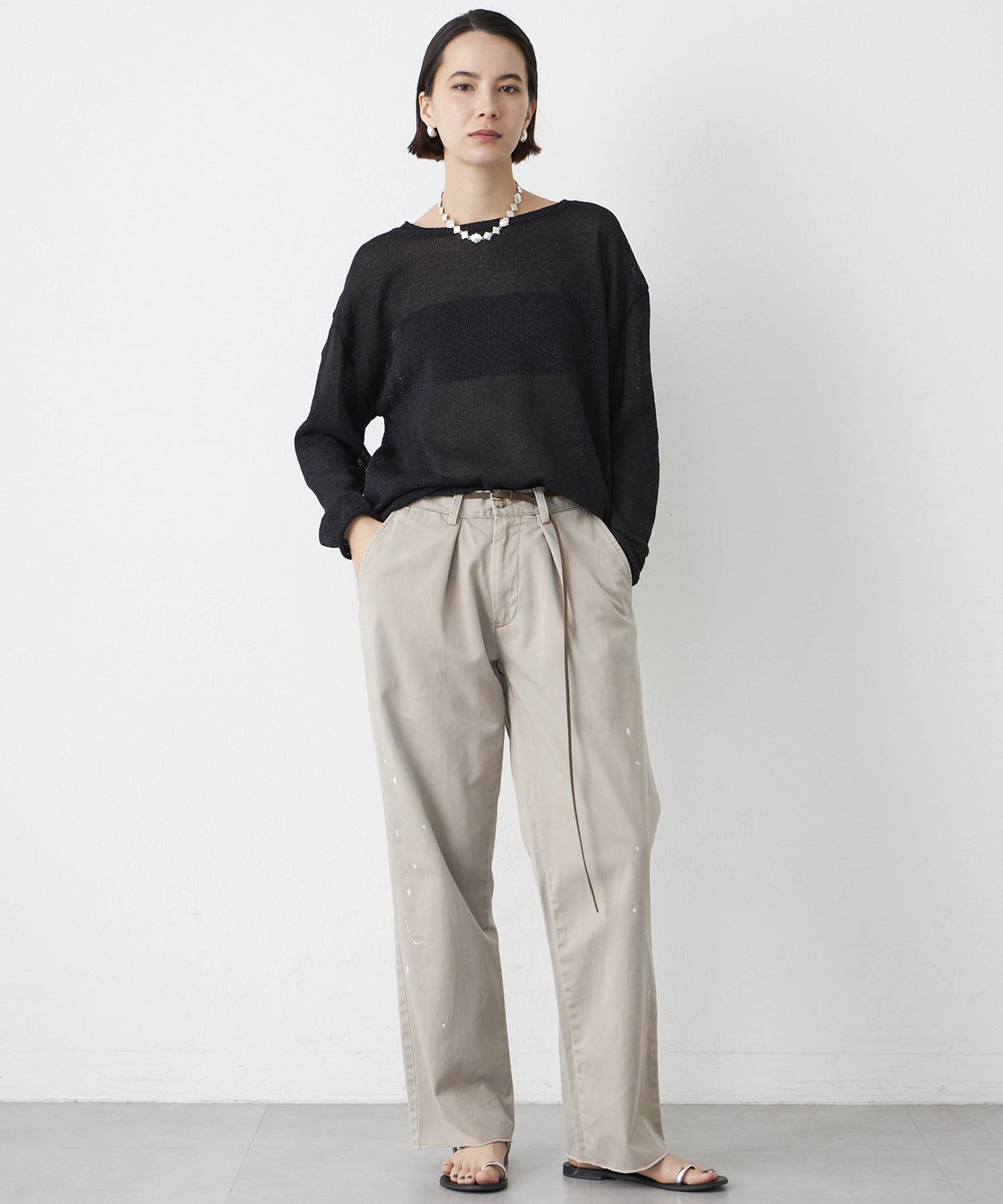 ■こなれ感のある詰まり気味のクルーネックに、袖口のスリットが手首をきれいに見せてくれるデザイン。