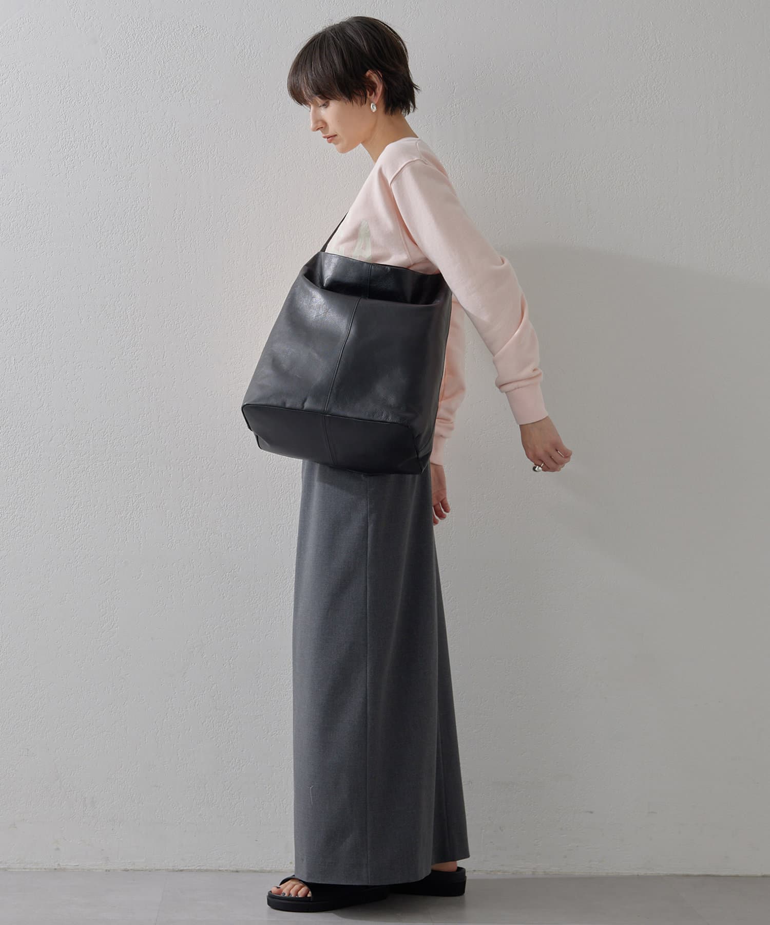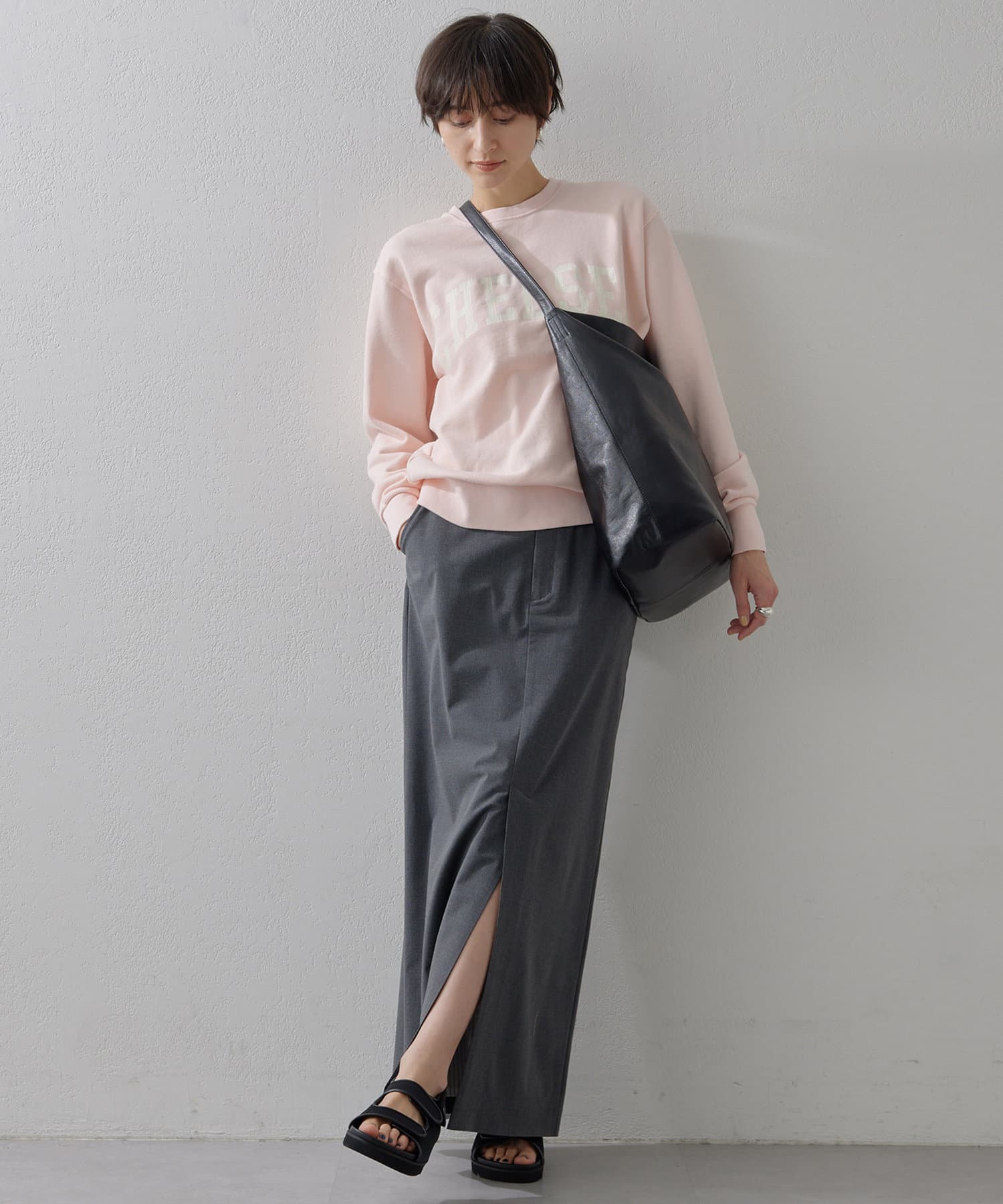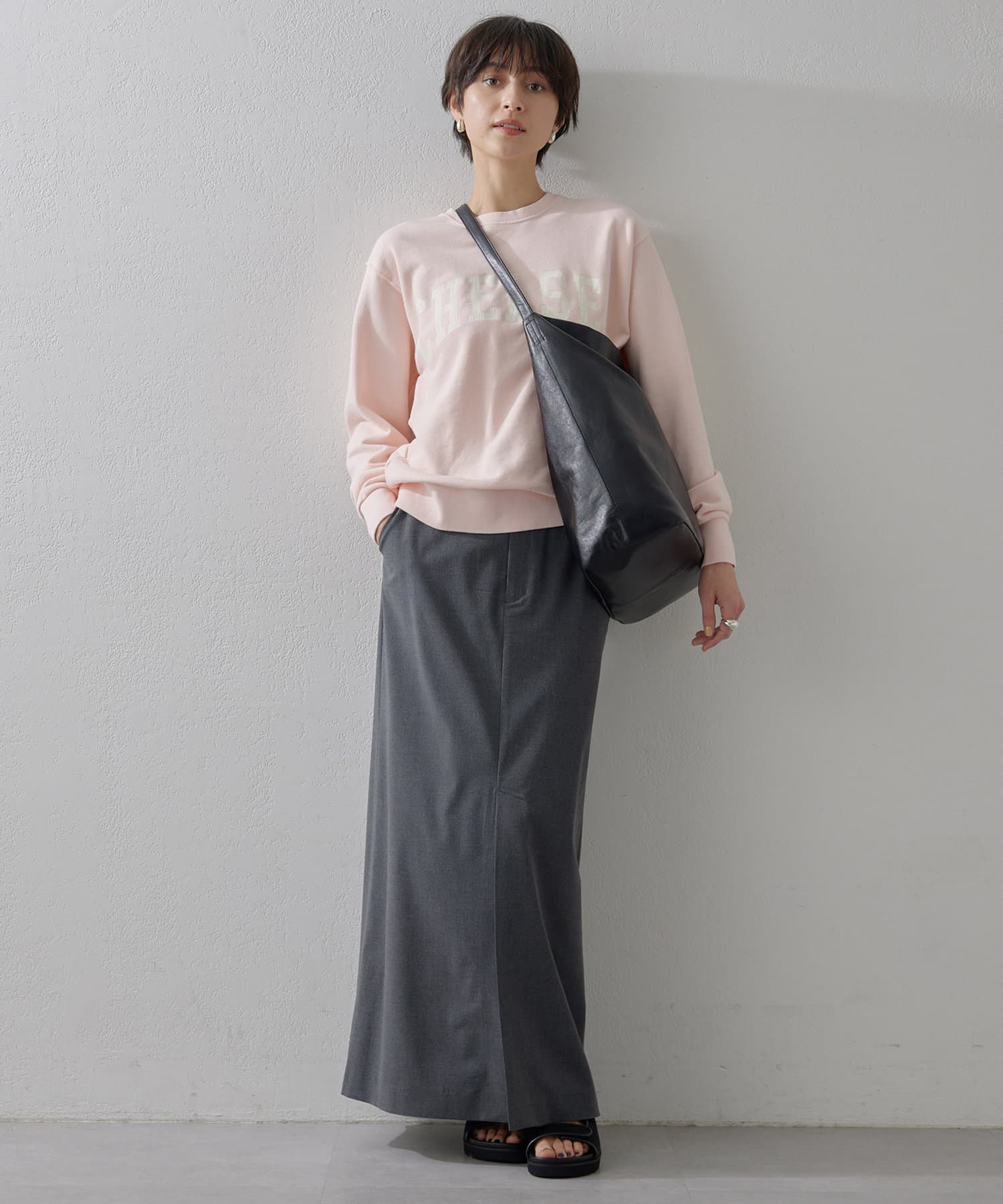 ■身体のラインを拾いにくく、程よくリラックス感のあるシルエットがこなれて見える一枚。