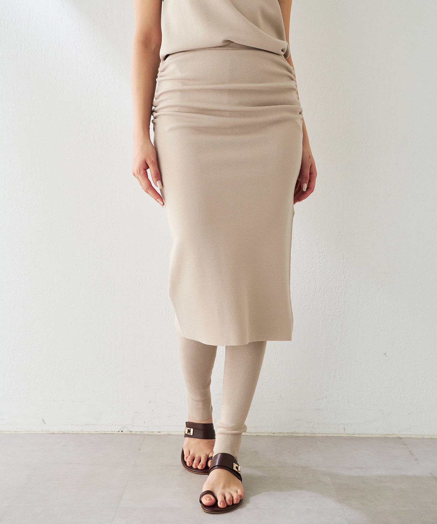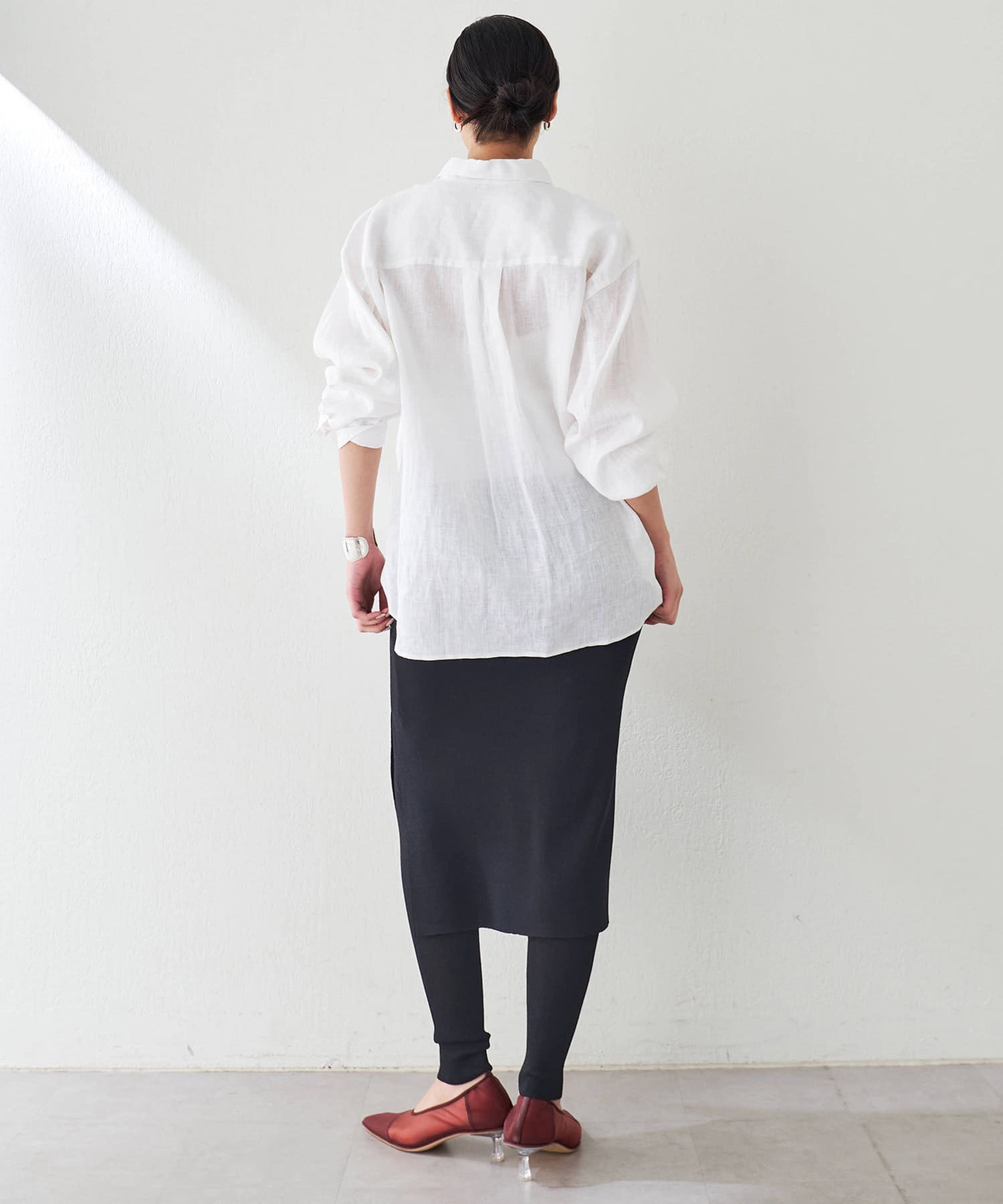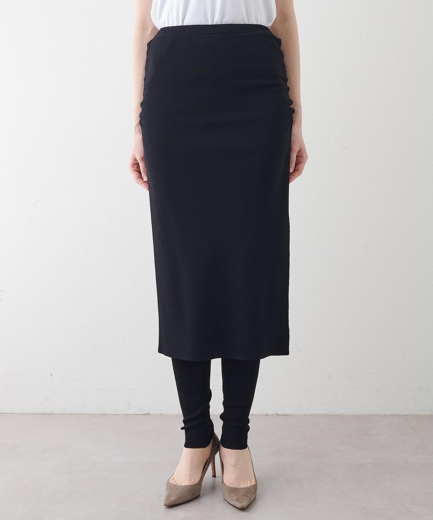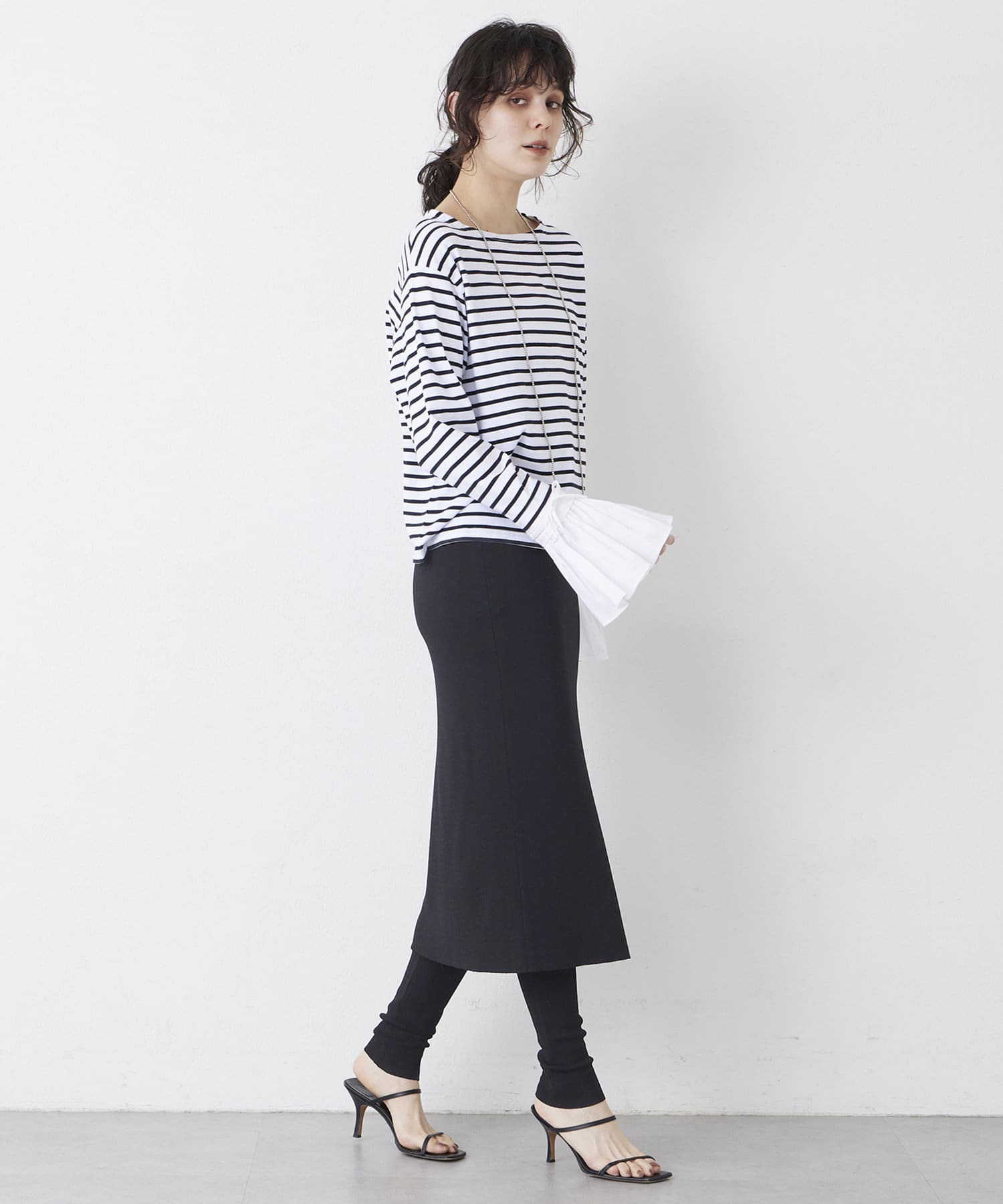 ■左サイドにはスリットをあしらい、重ね着風でも女性らしく抜け感のあるスタリングに。