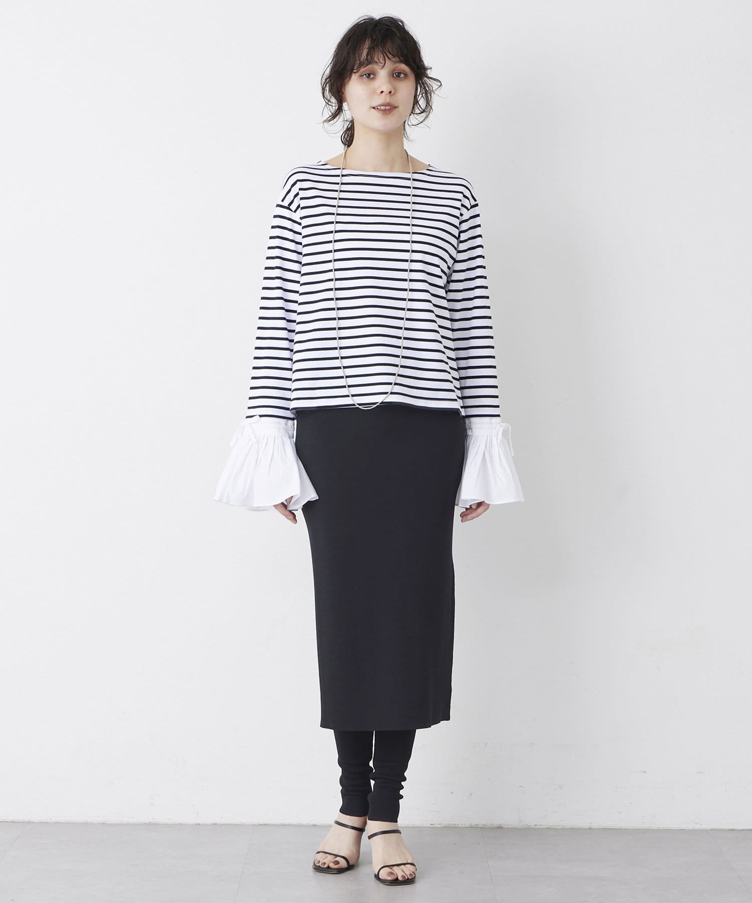 ■同素材のフレンチスリーブニットプルオーバー(ブランド品番:WGZ1051305A0006)とのセットアップもおすすめ。