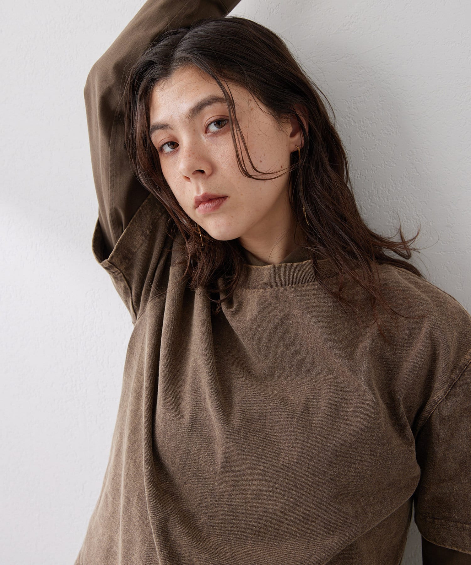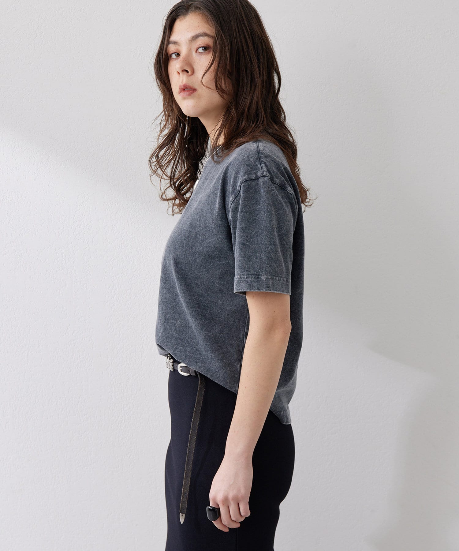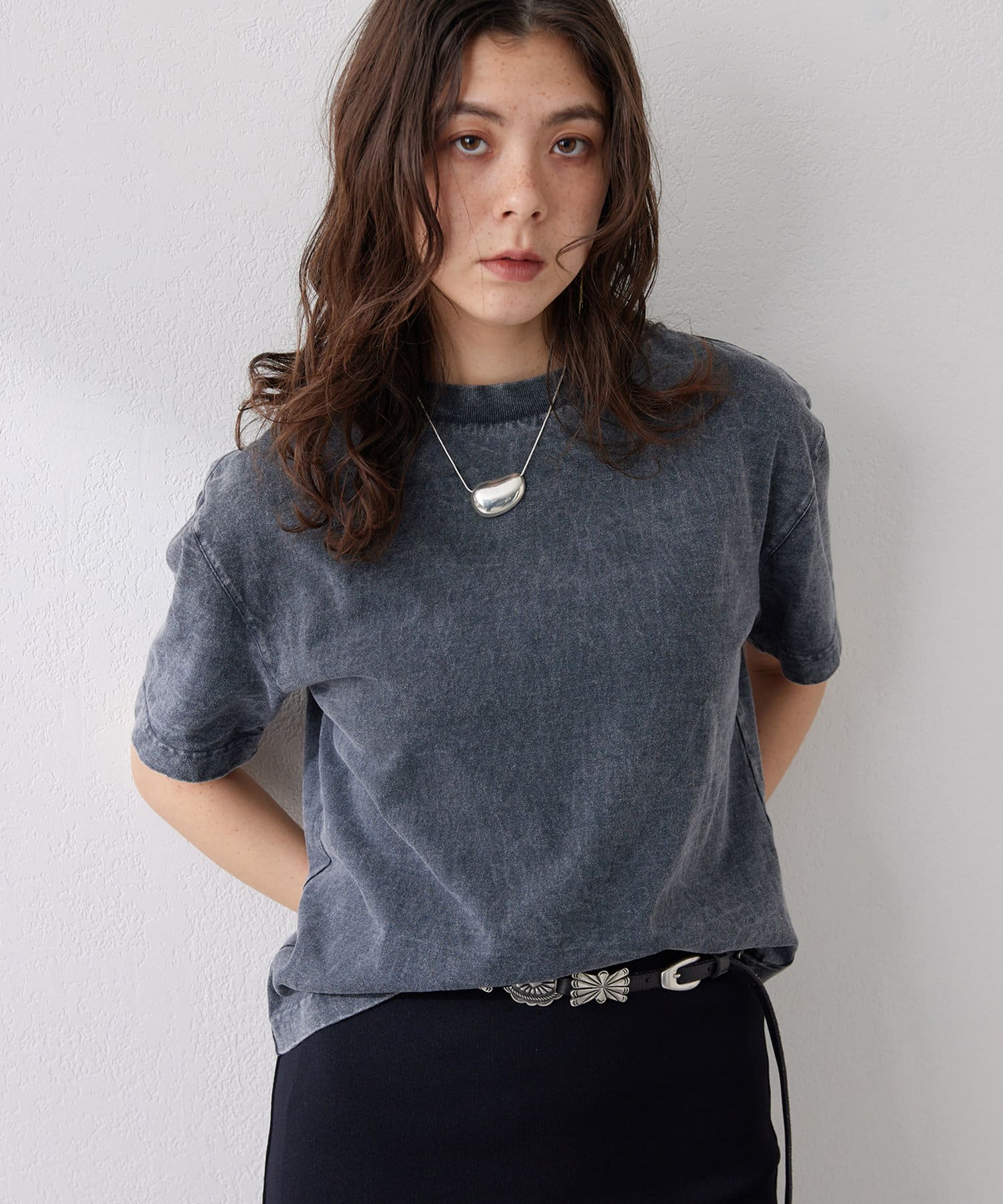 ■硫化染め+パウダーブリーチを施した表情感のあるTシャツ。