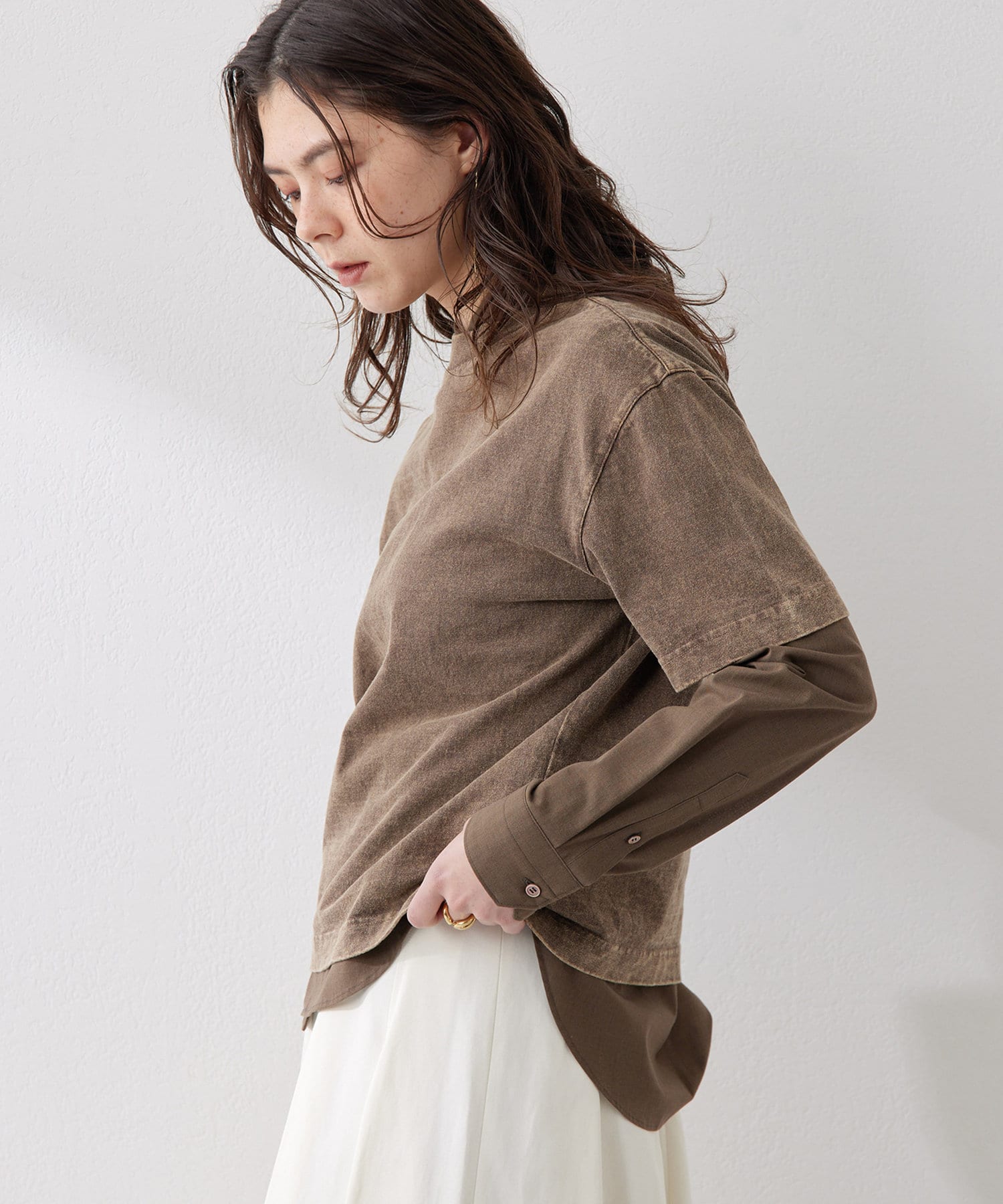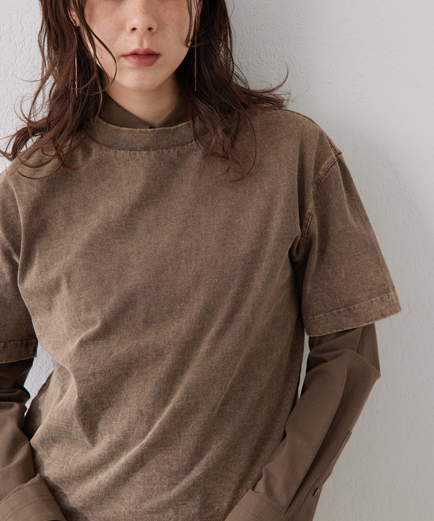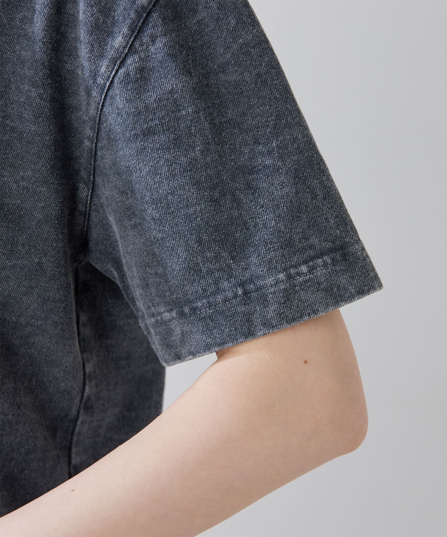 ■硫化染め+パウダーブリーチを施した表情感のあるTシャツ。