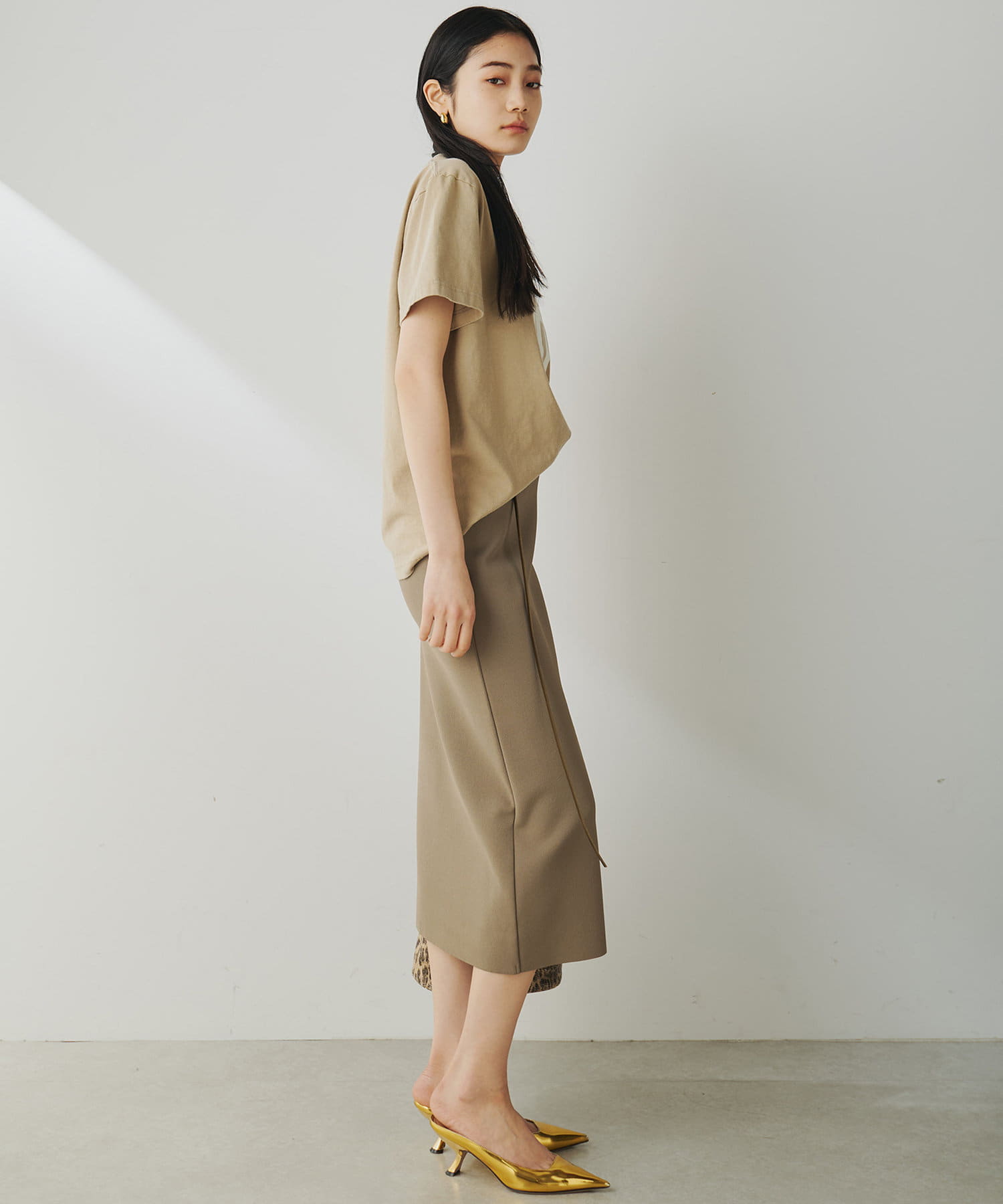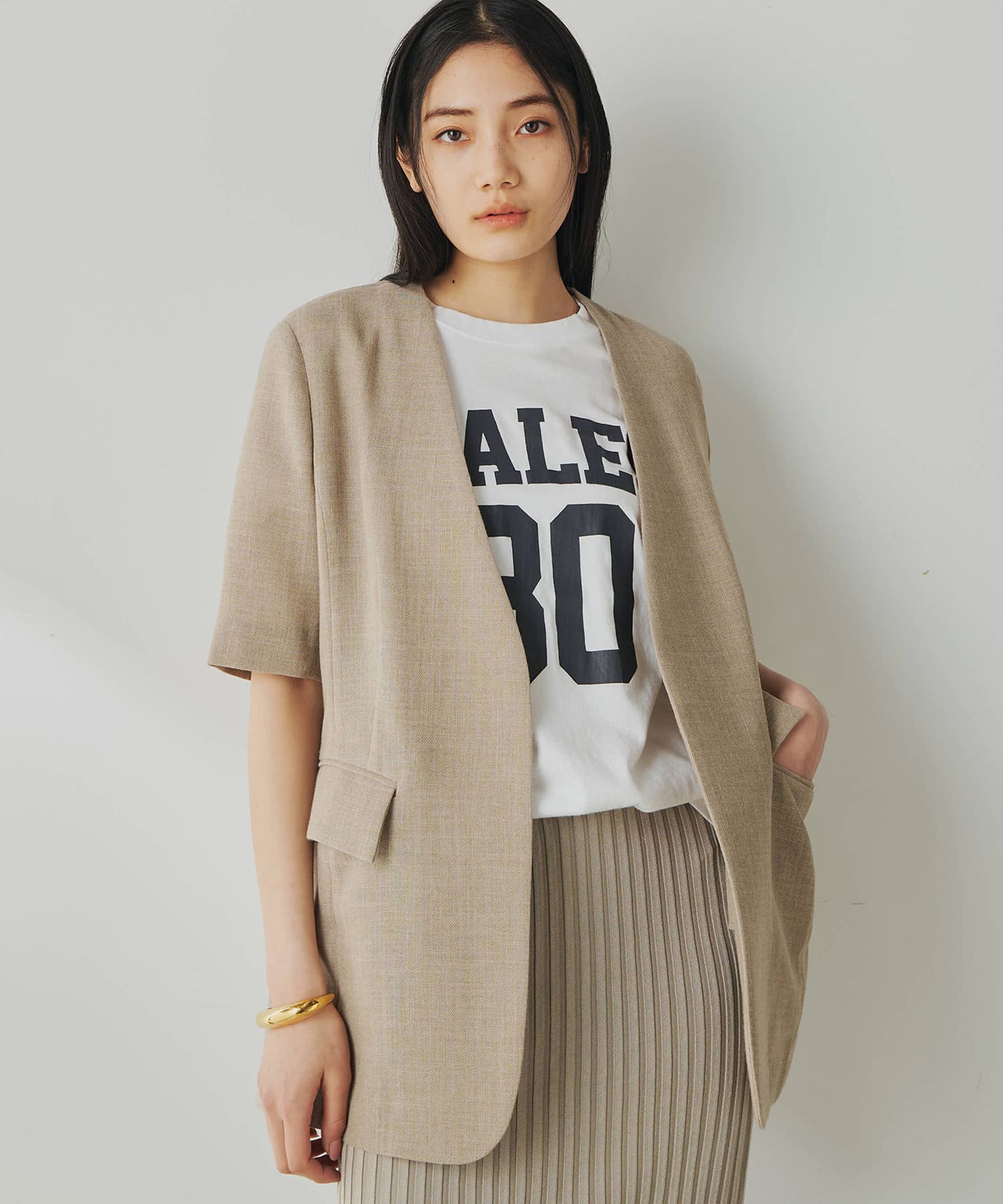 ■ボトムを選ばない程よくゆとりのあるシルエットながら、コンパクトな袖丈でラフ見えしすぎないのもポイント。
