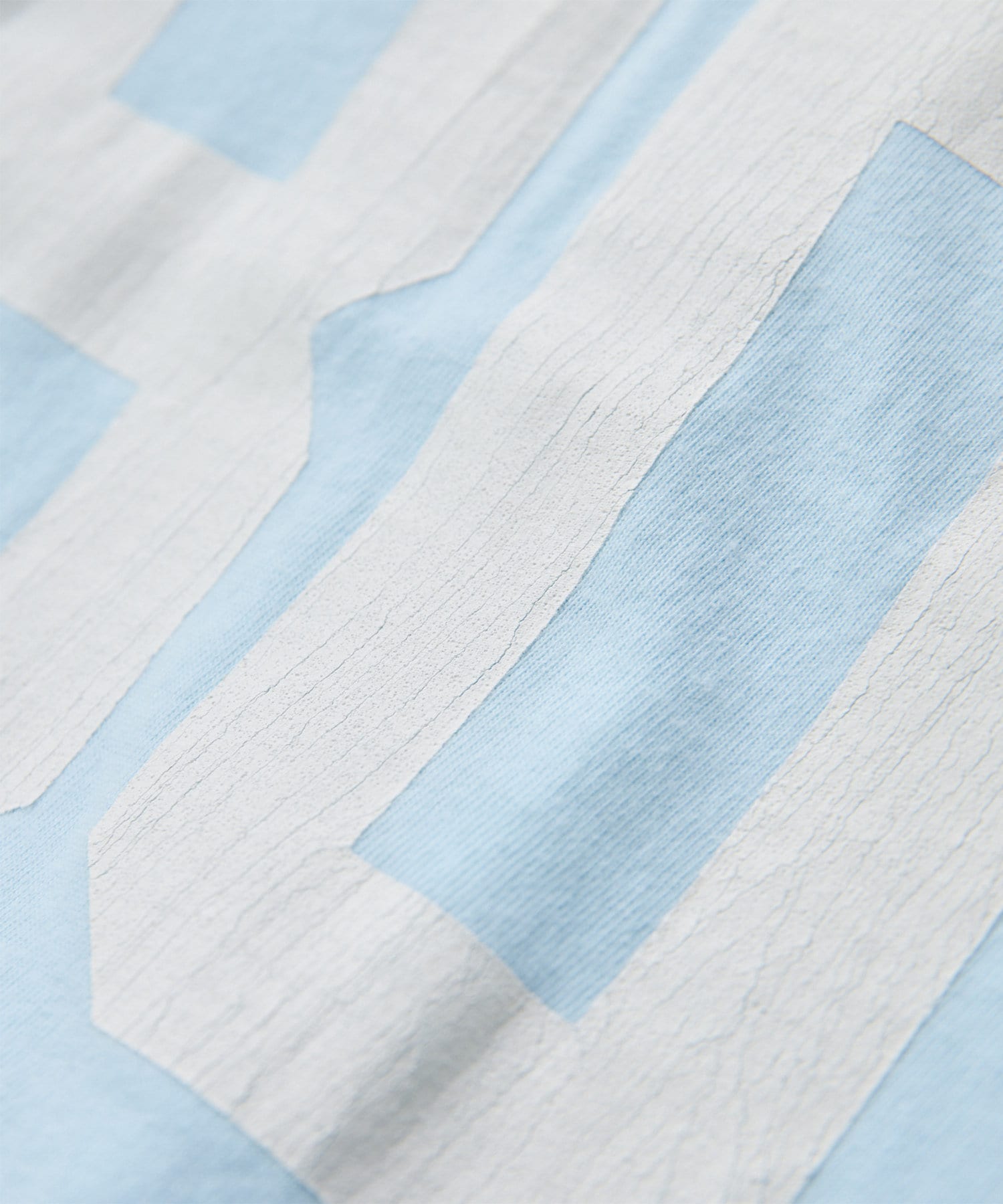 ■インク割れを再現するクラックプリントは、表面を手作業で割ることでよりリアルなヴィンテージの雰囲気を再現。