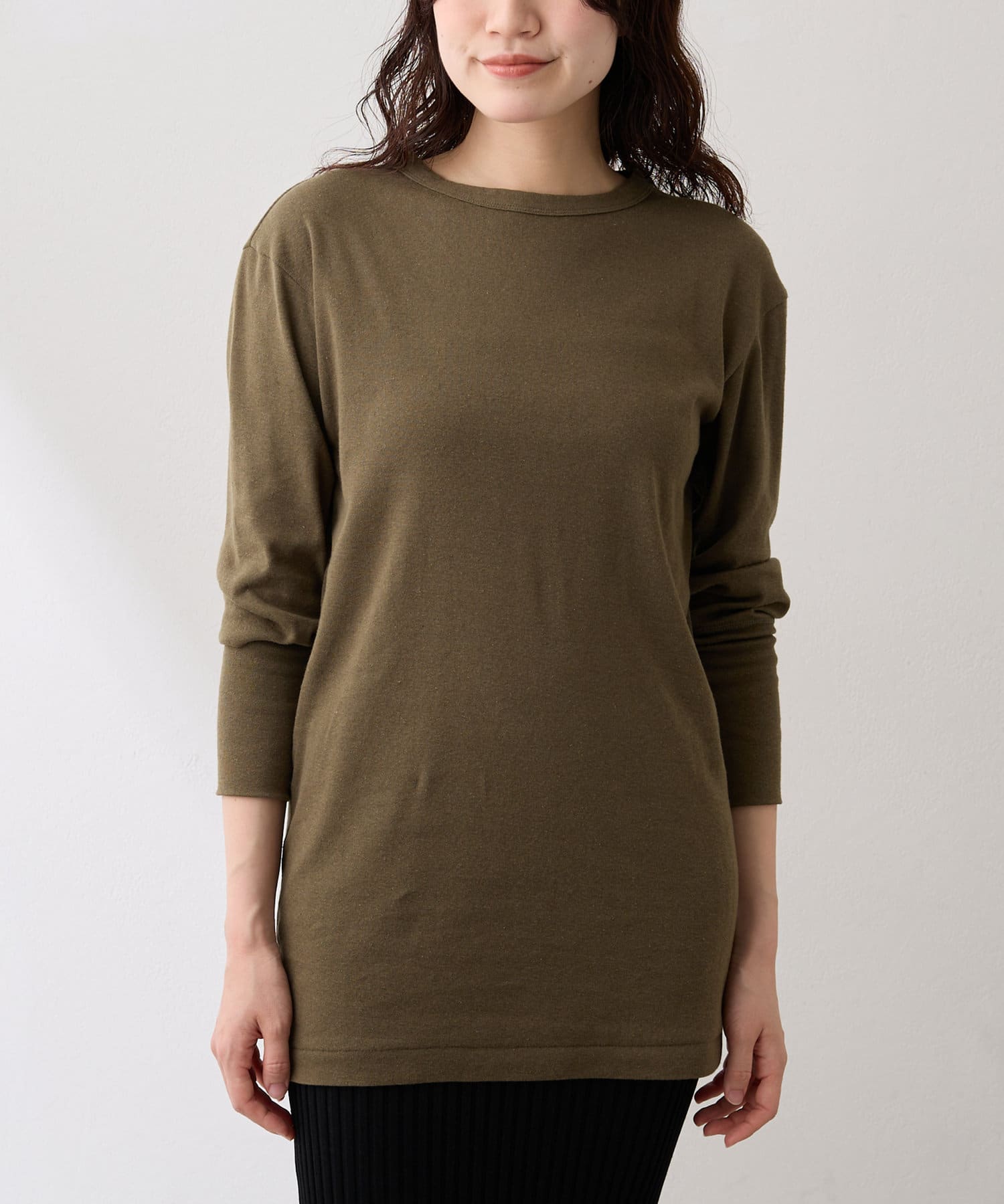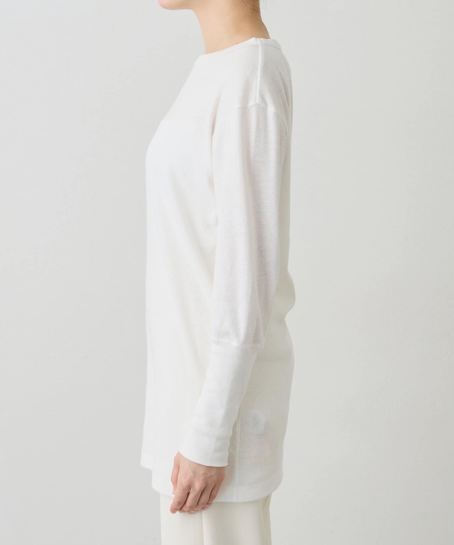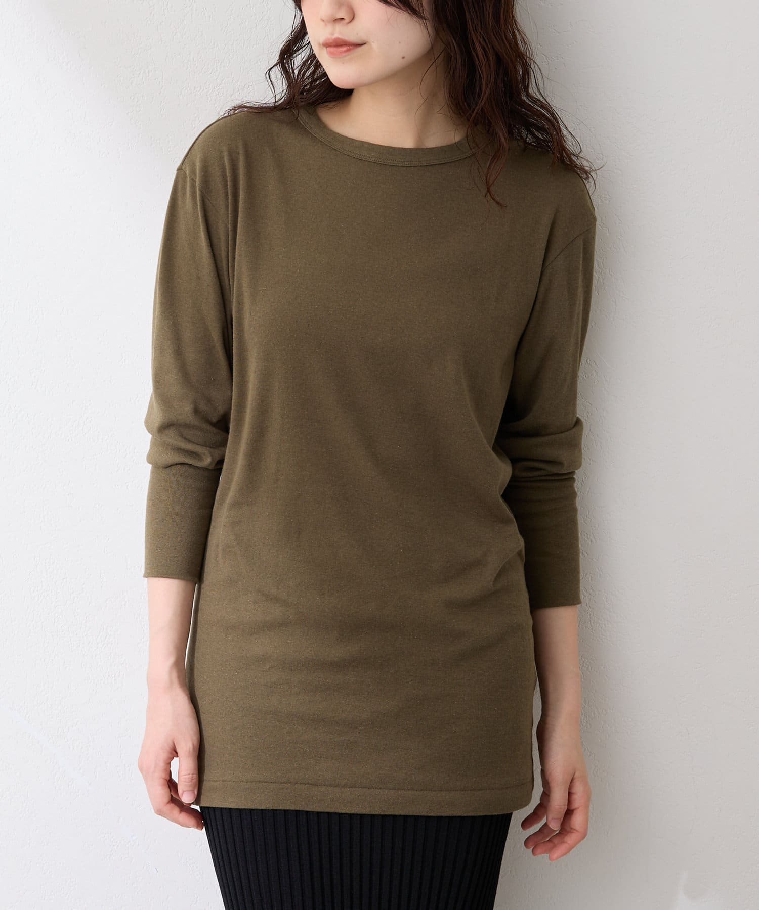 ■綿麻素材を使用したロングスリーブカットソー。