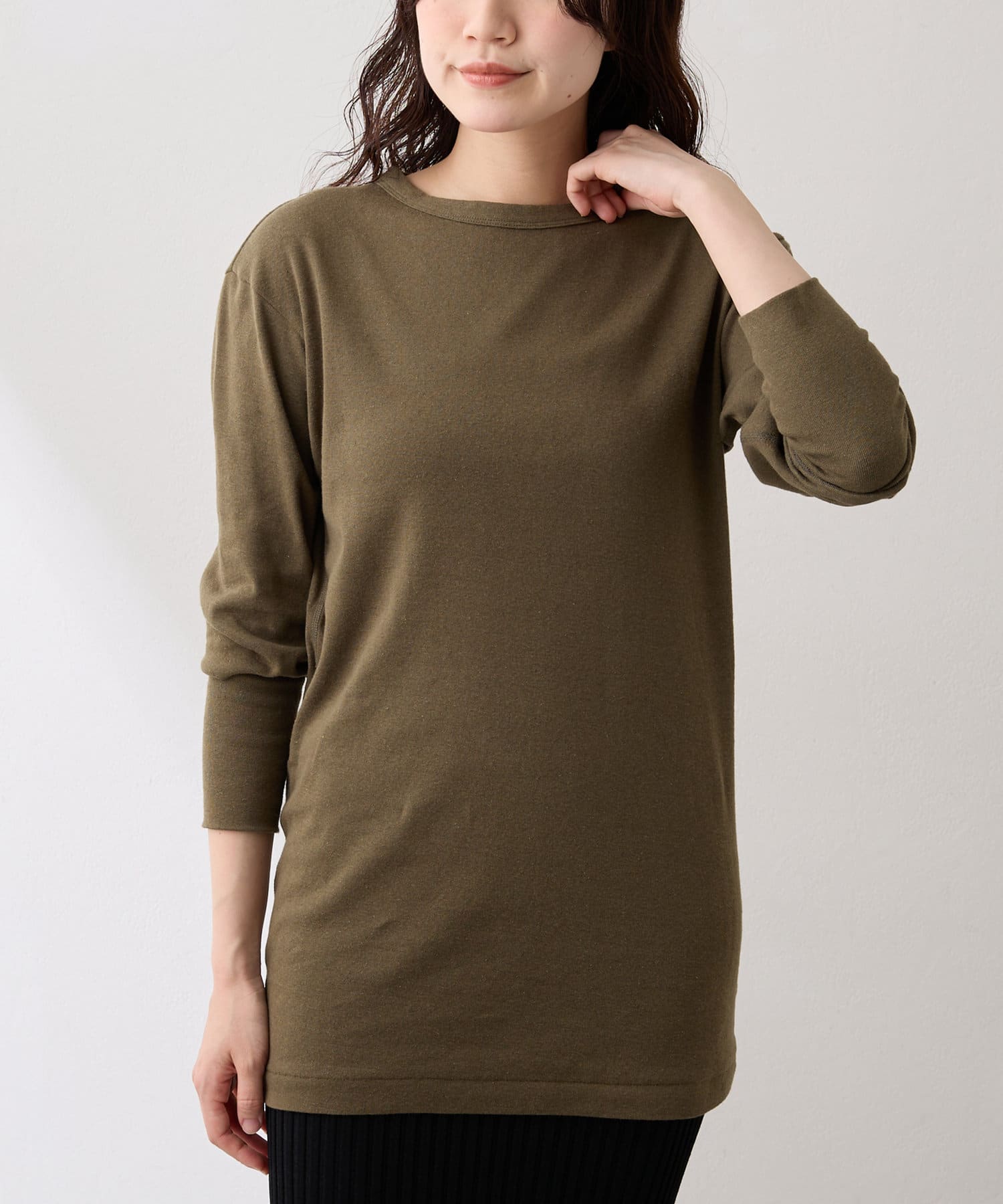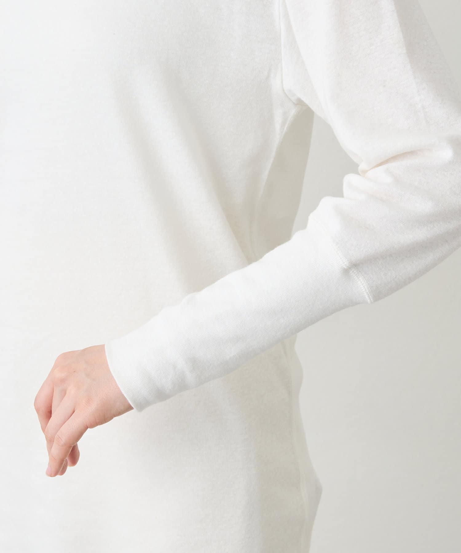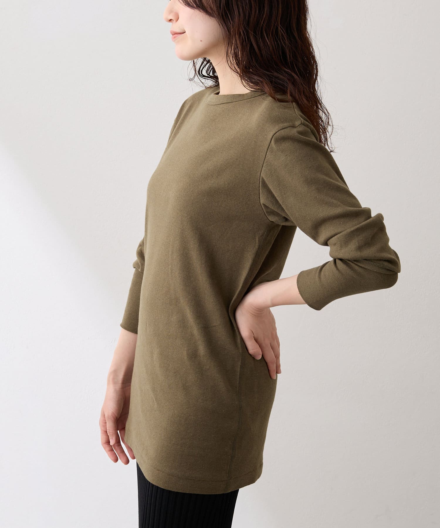 ■綿麻素材を使用したロングスリーブカットソー。