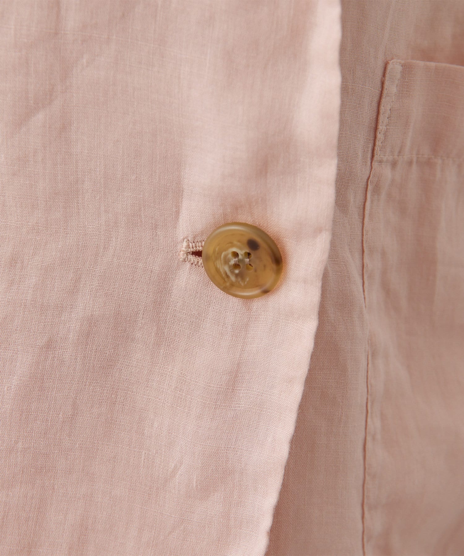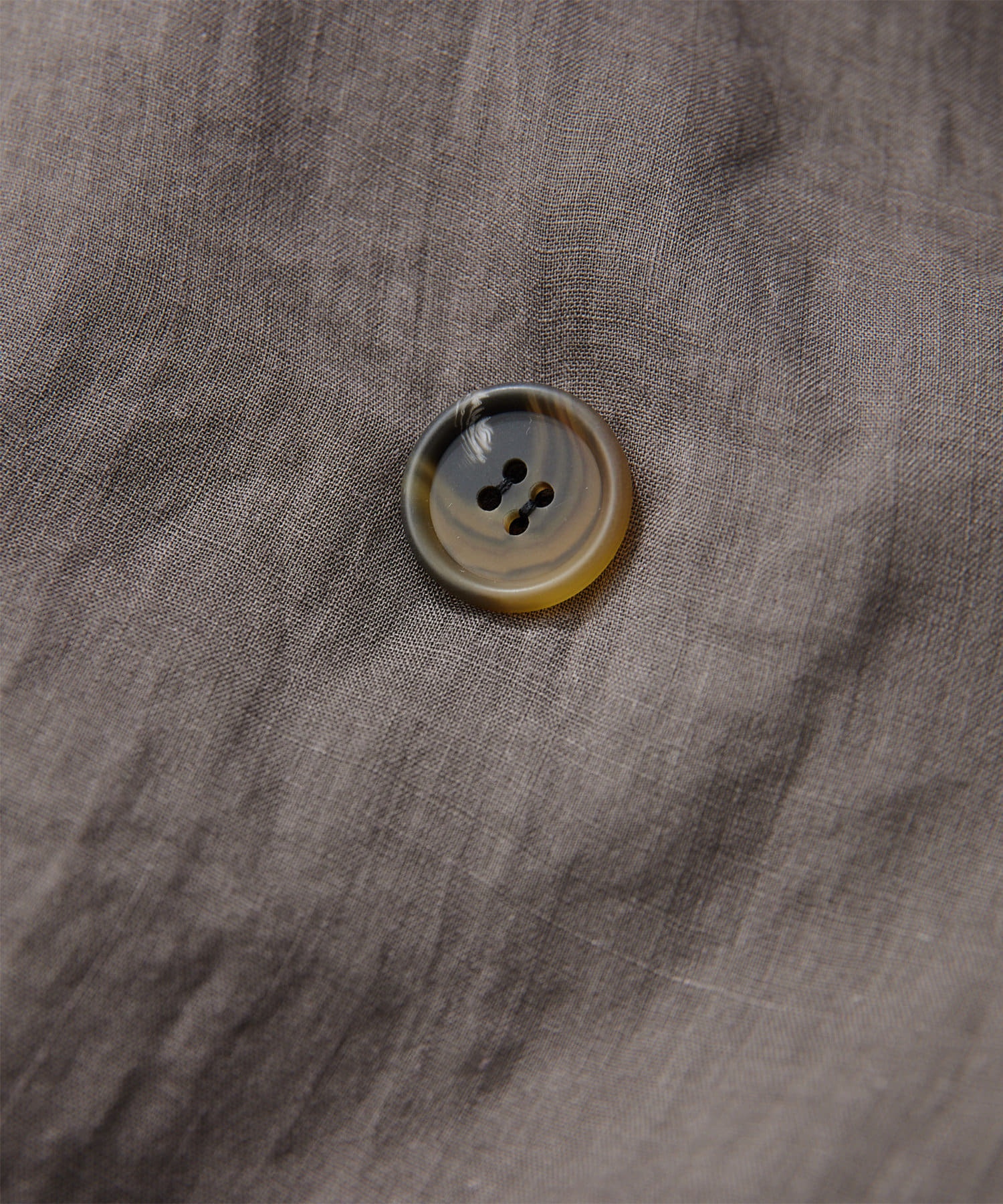 カジュアルすぎない程よい光沢とハリ感がポイントの、珍しい高番手のラミー素材を製品染めした素材。