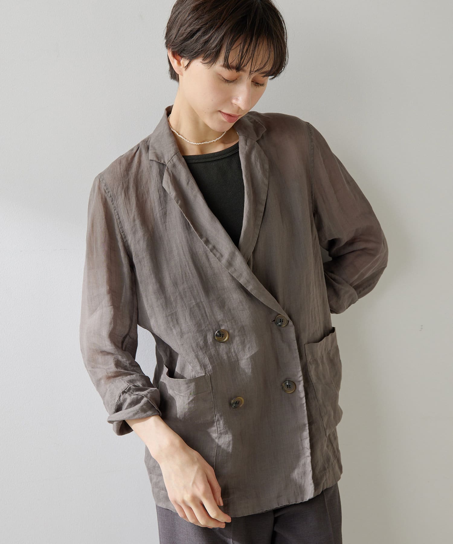 ■夏の定番素材、ラミーを使用した清涼感たっぷりのジャケット。
