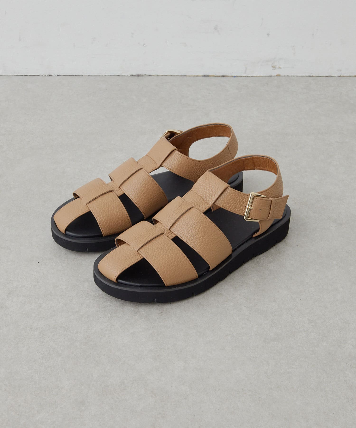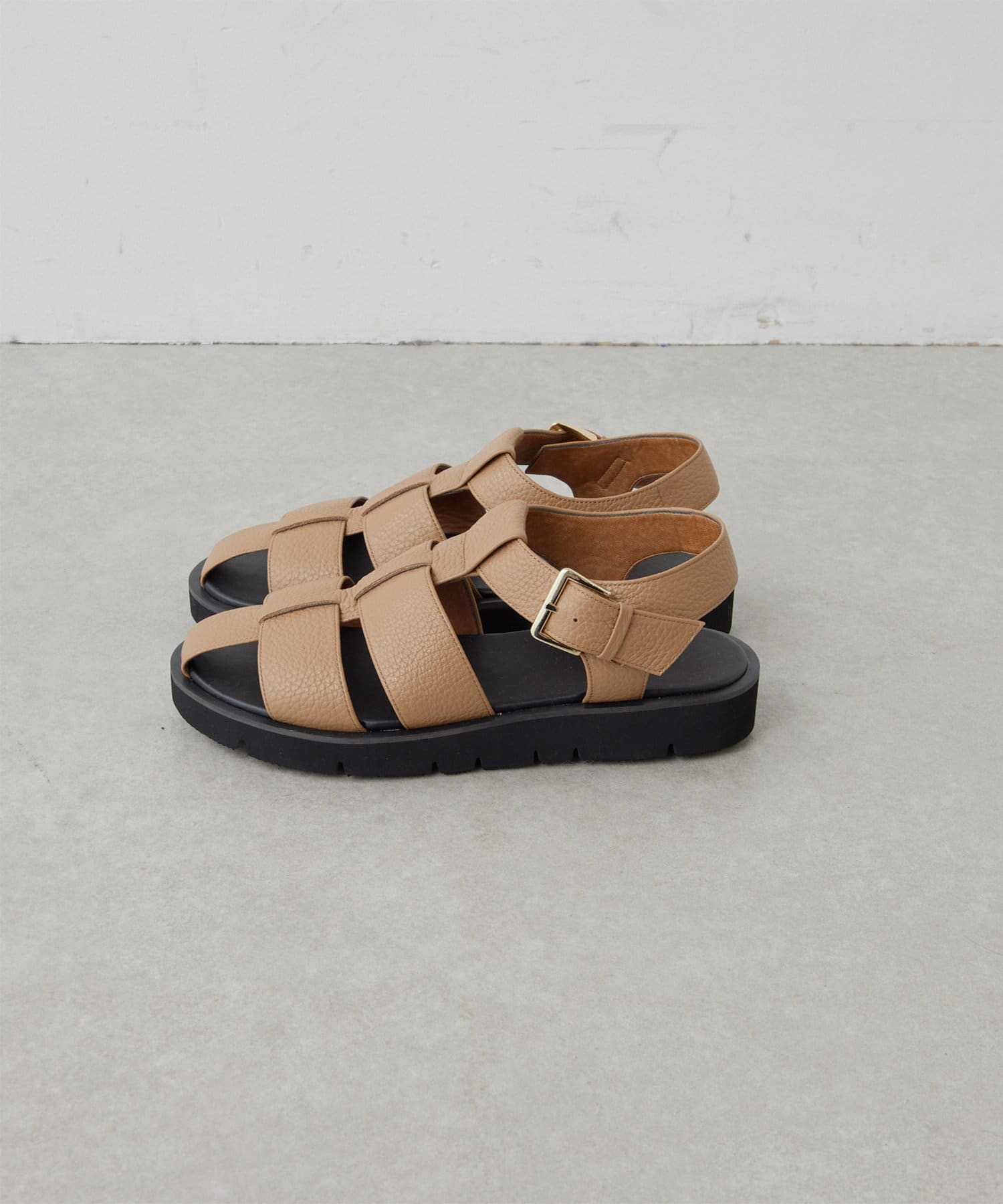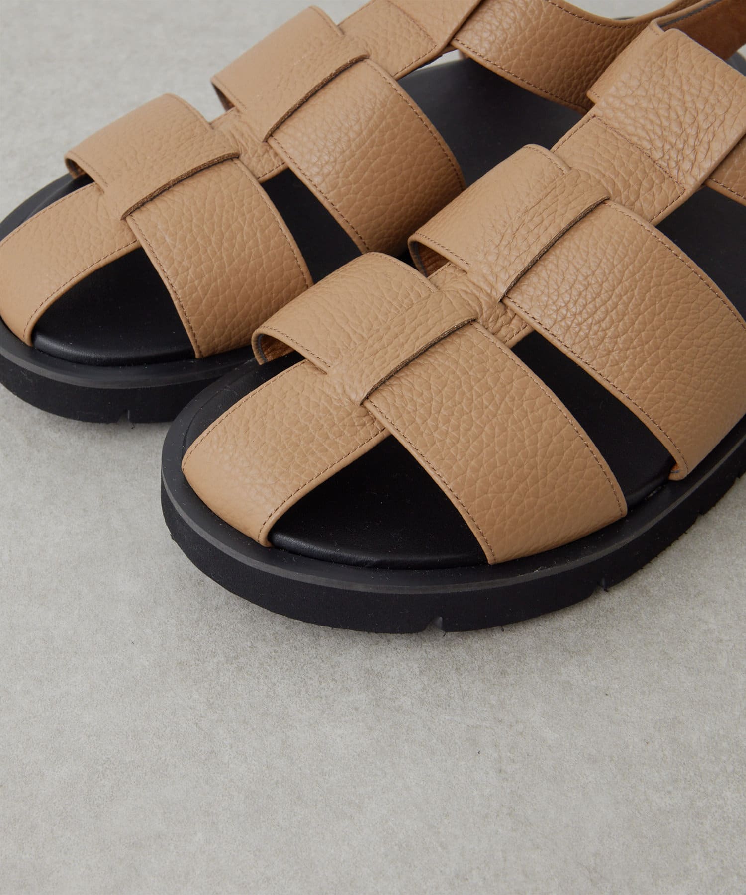 ■編み込まれたレザーと丸みのあるトゥが特徴のグルカサンダル。