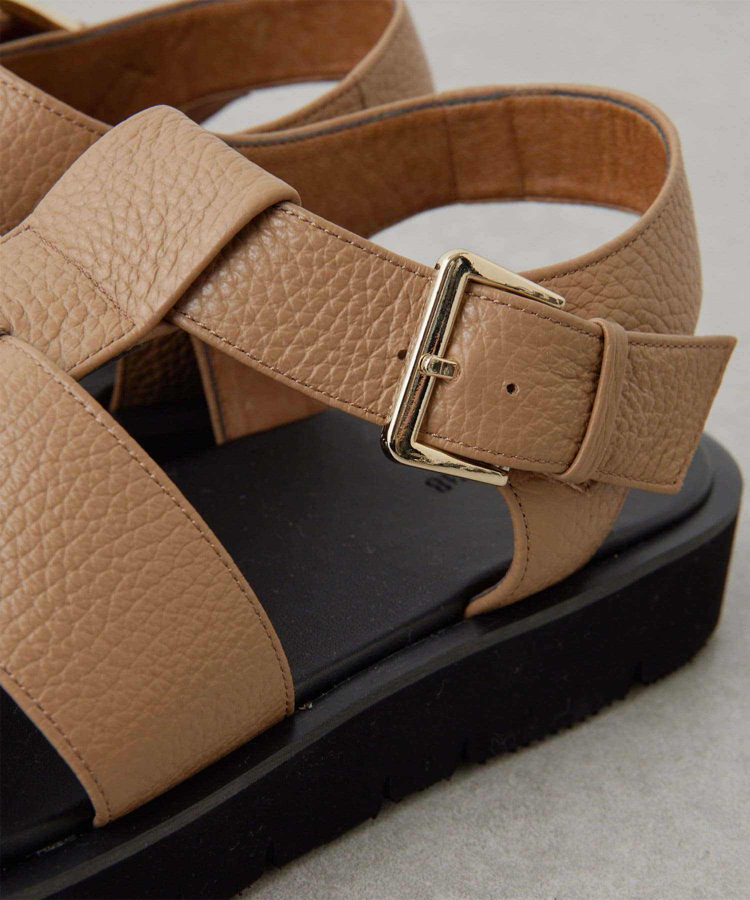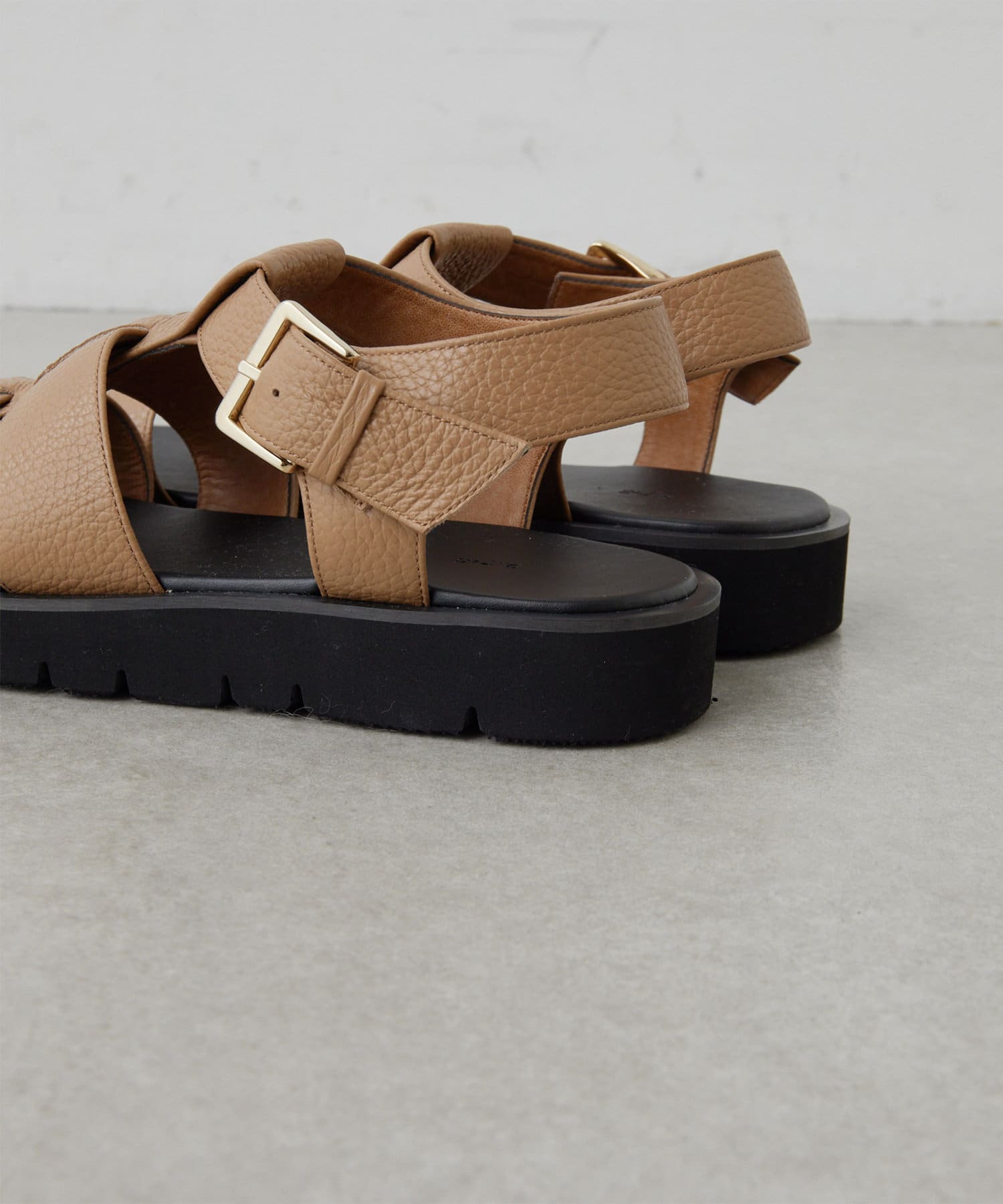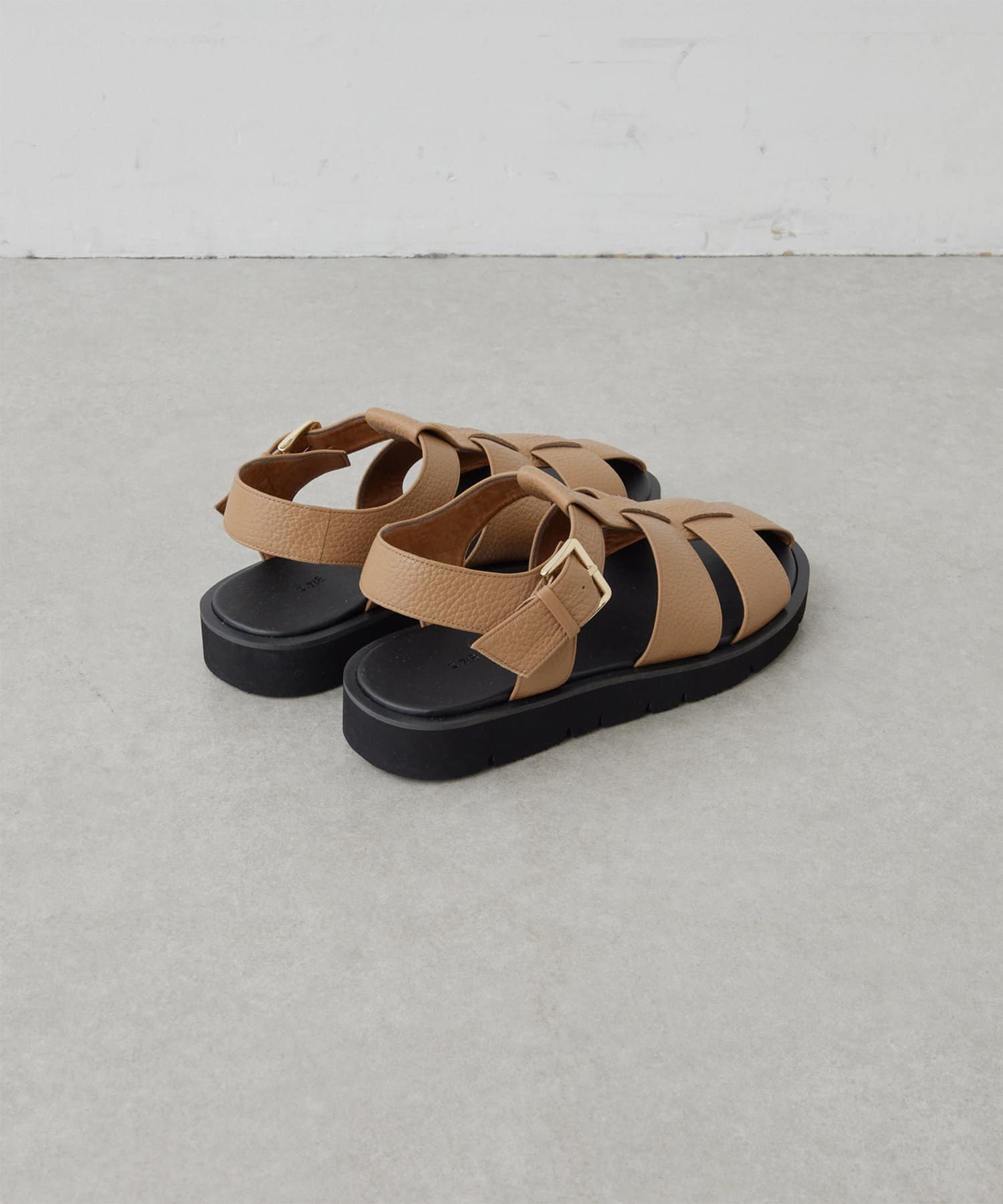 ■編み込まれたレザーと丸みのあるトゥが特徴のグルカサンダル。