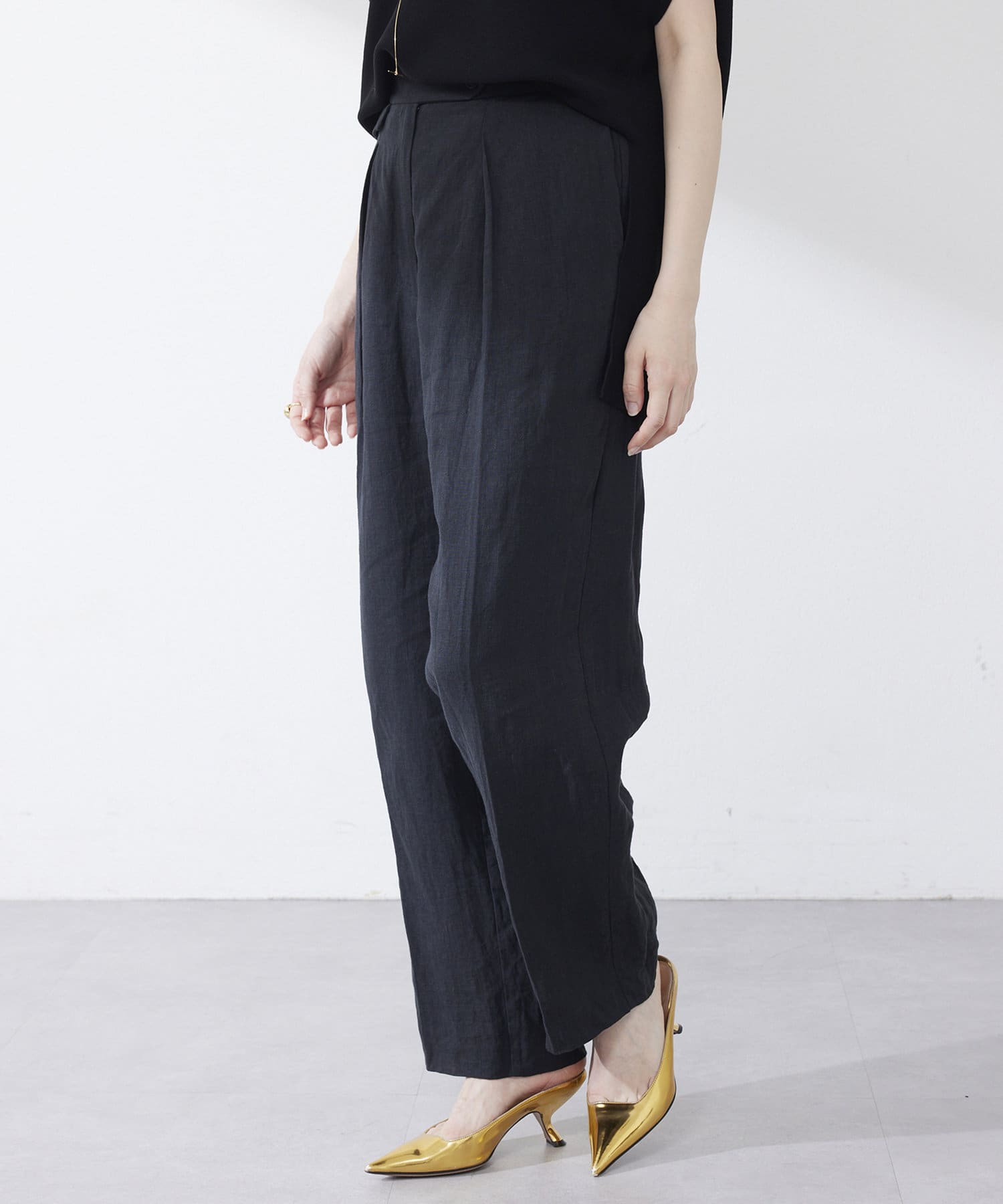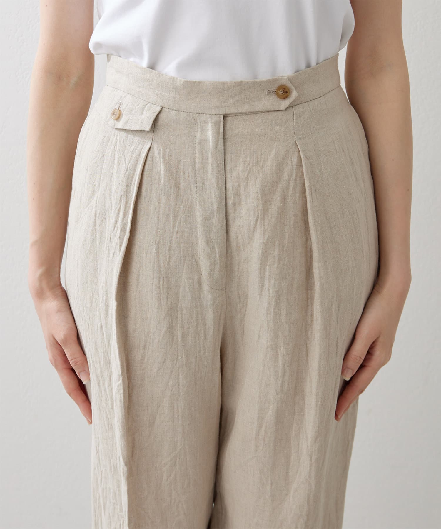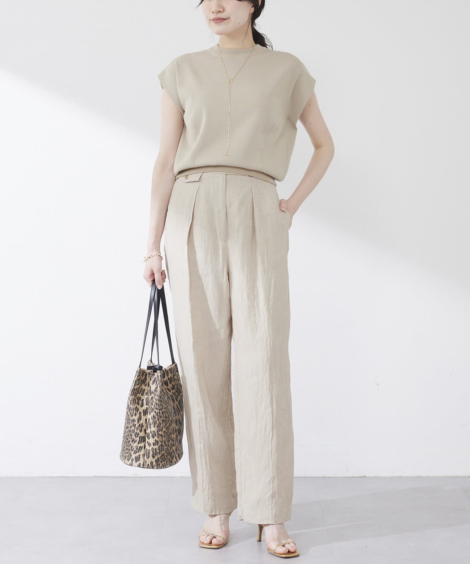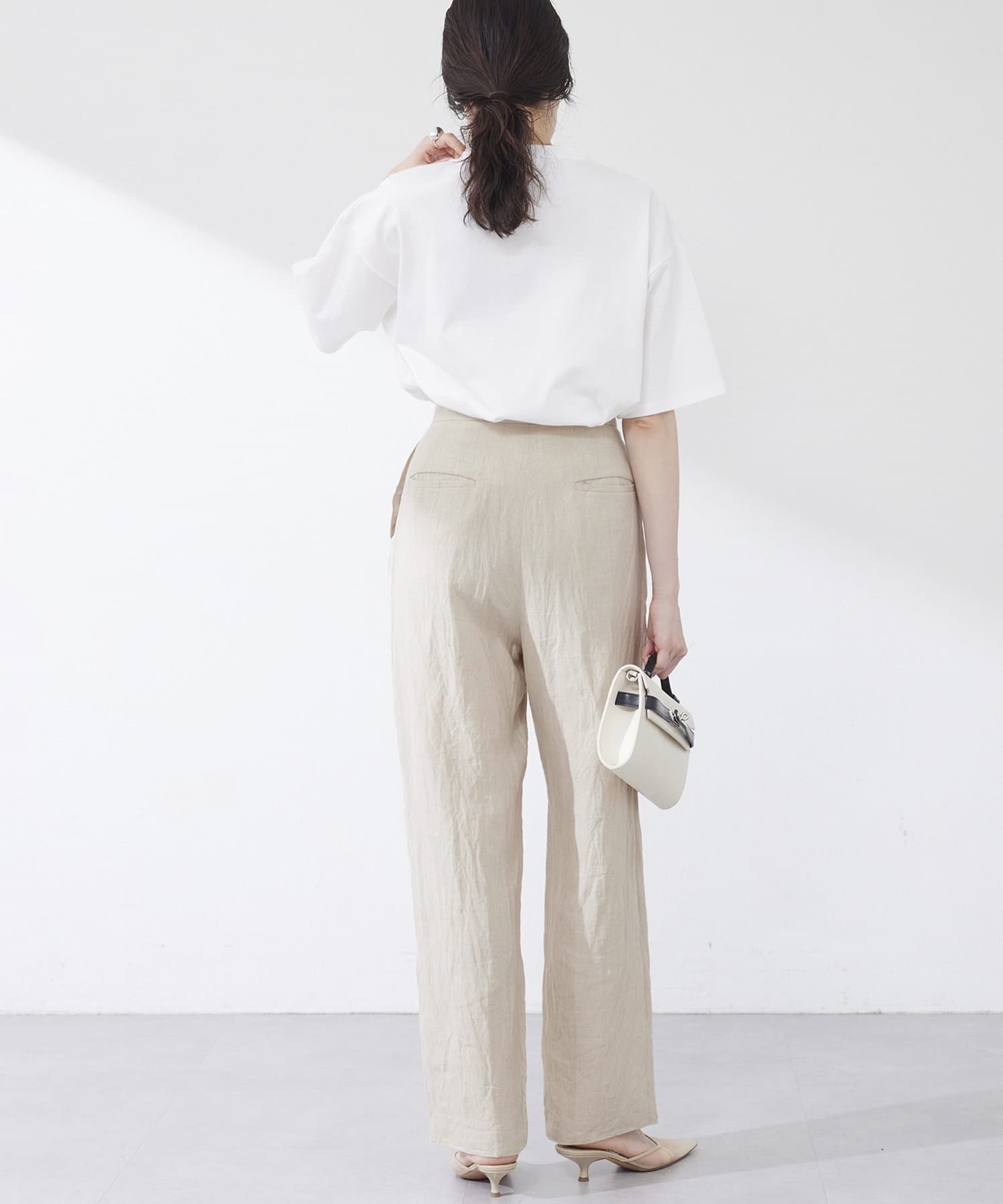 ■品質にこだわった上質なリネンを使用したワイドタックパンツ。