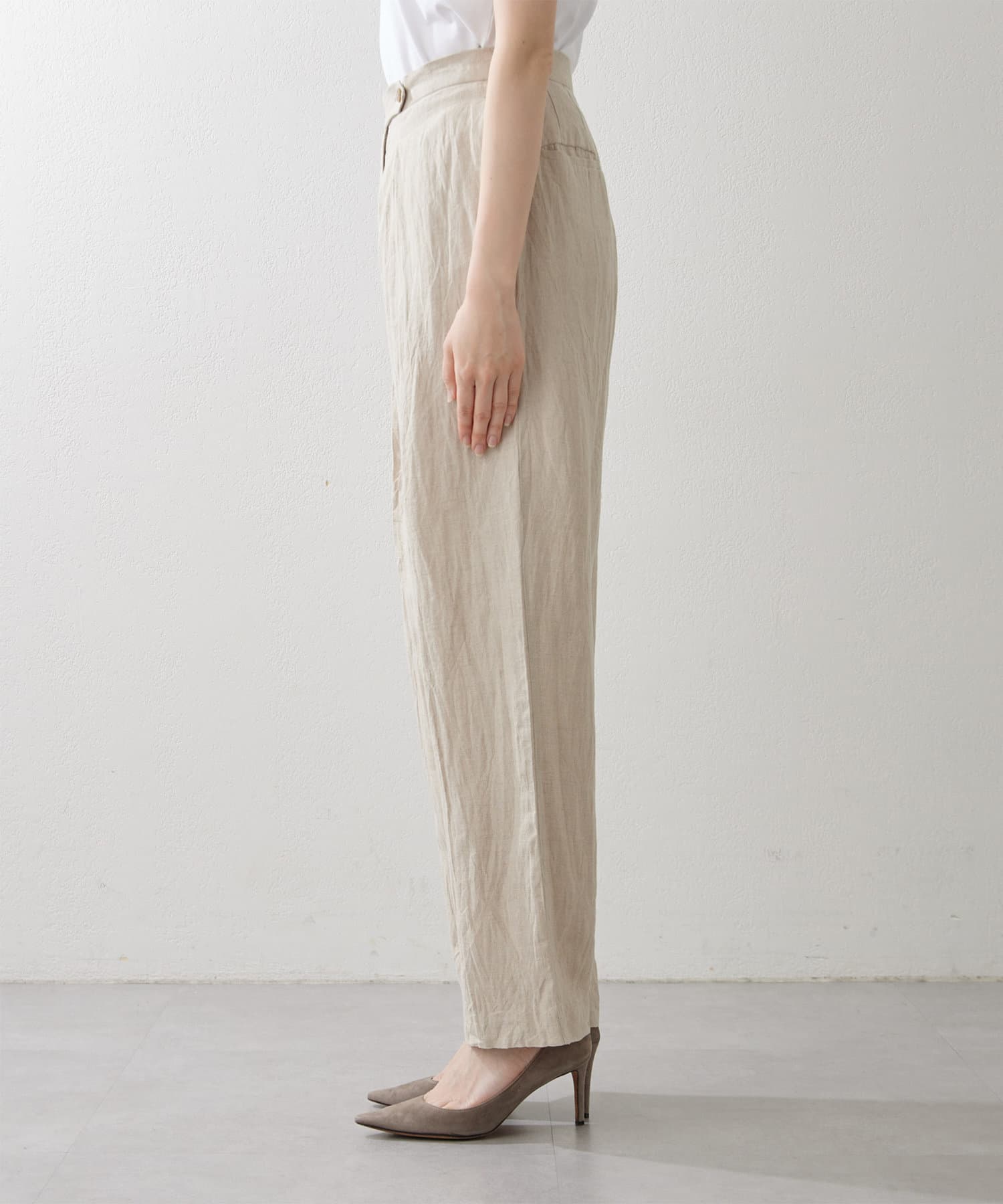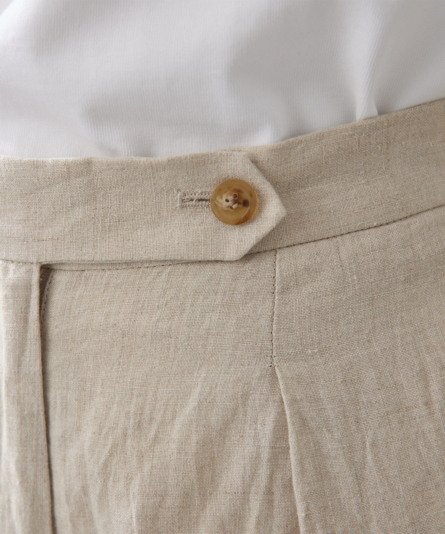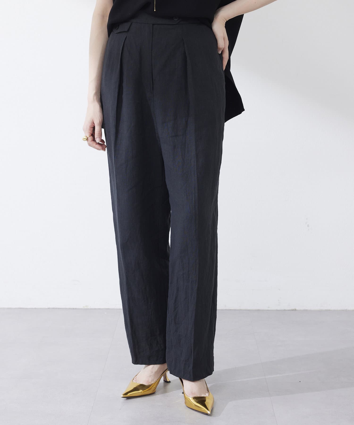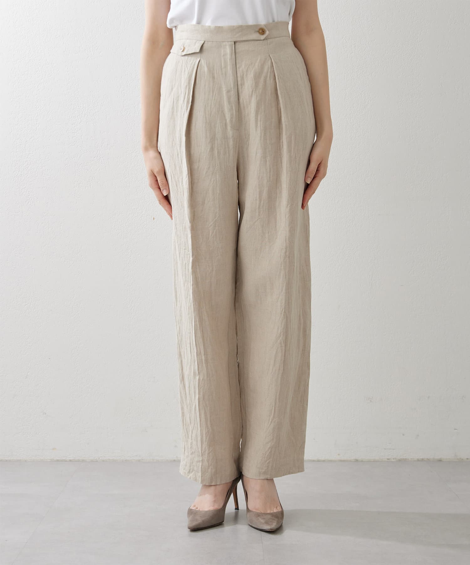 ■品質にこだわった上質なリネンを使用したワイドタックパンツ。