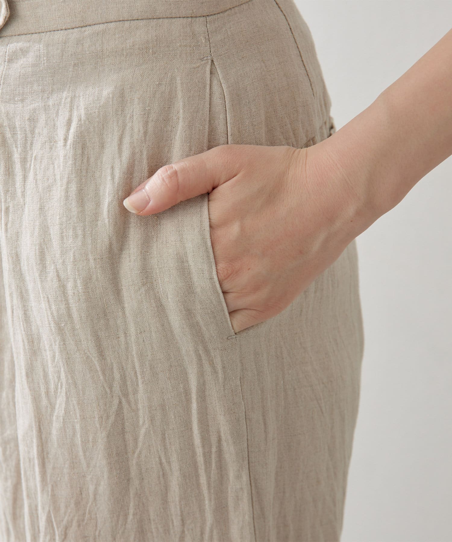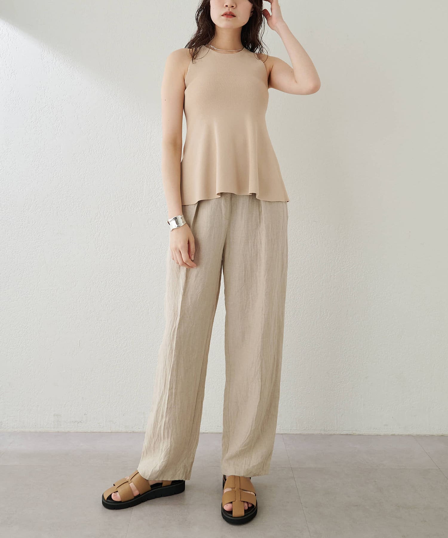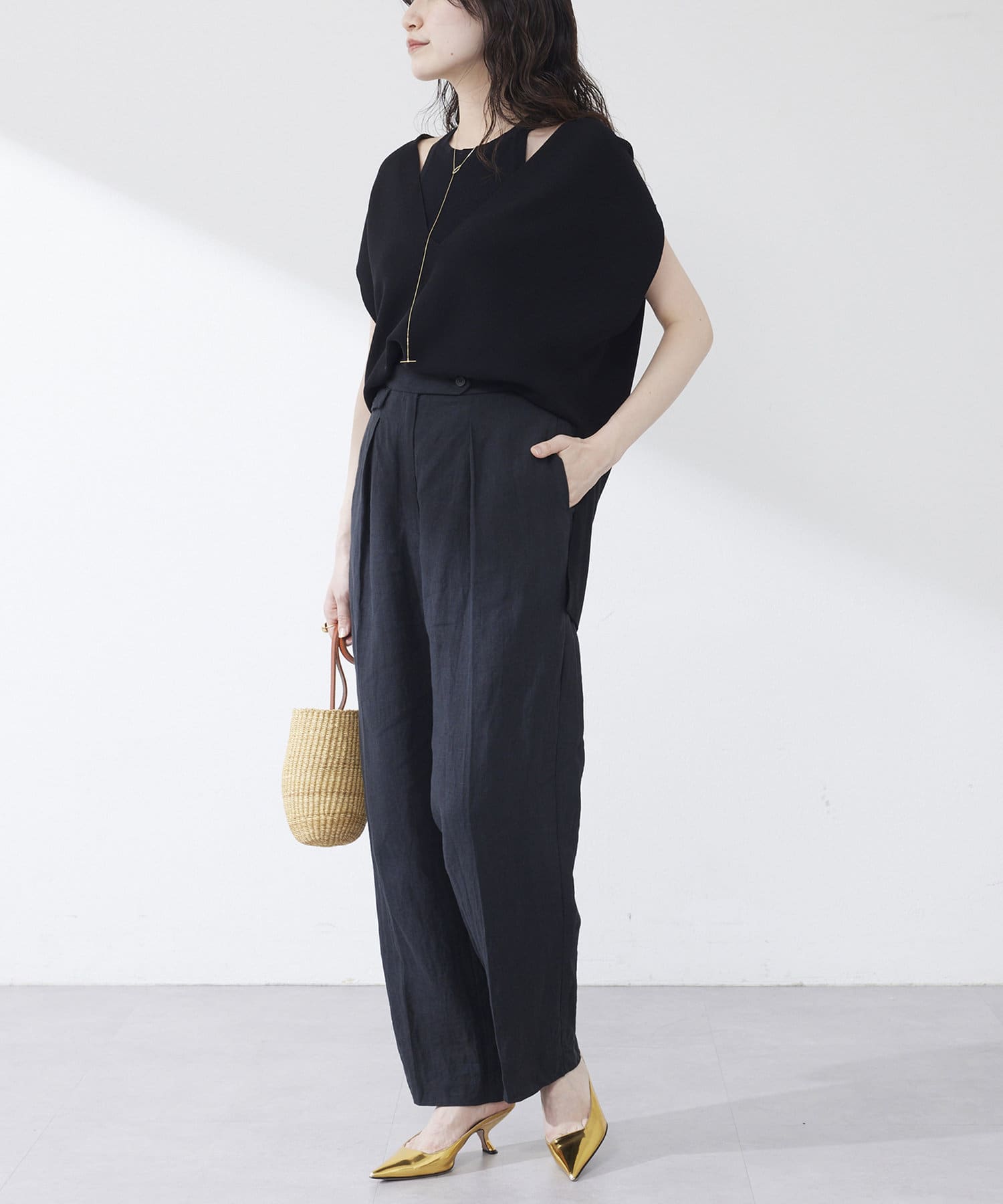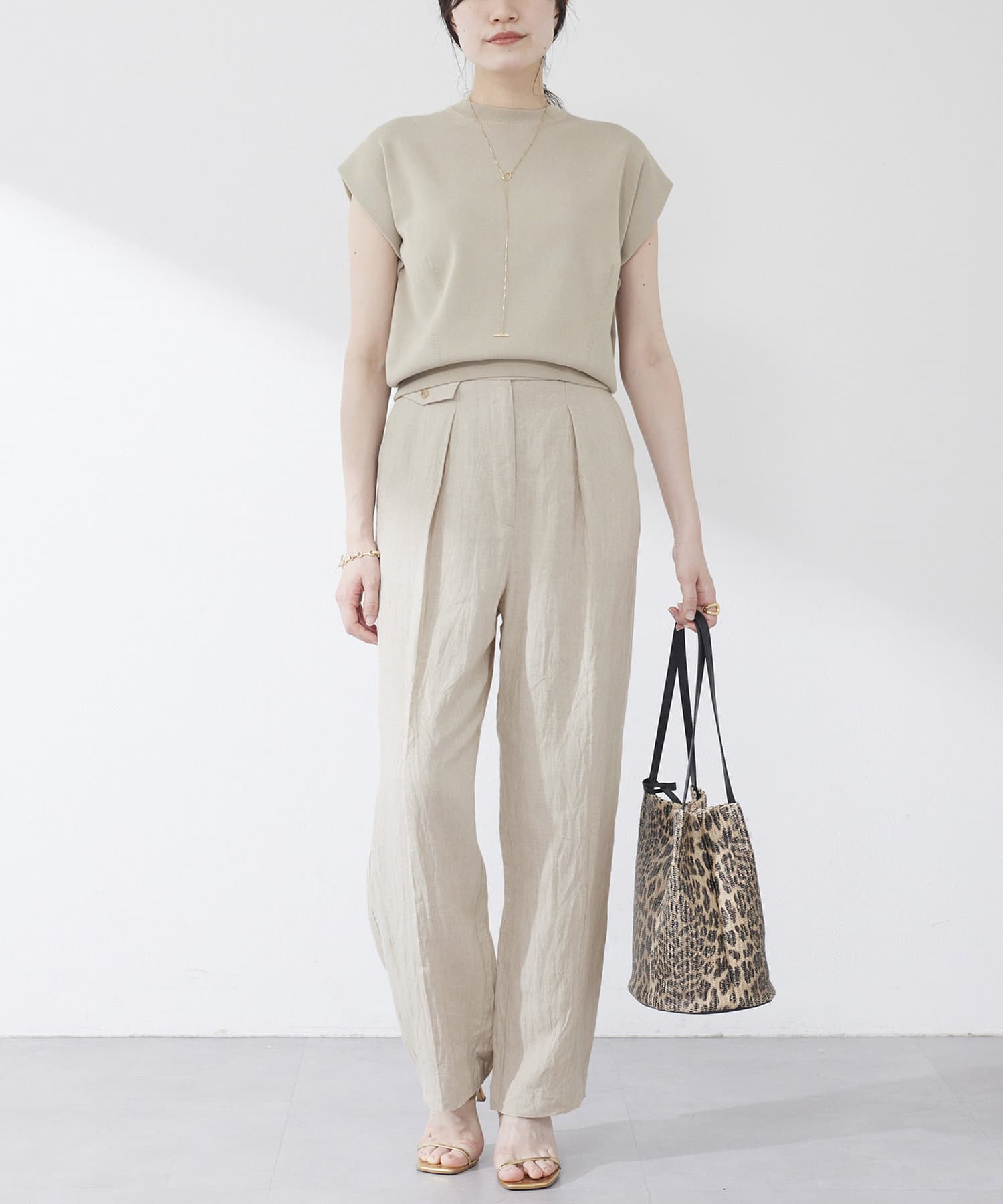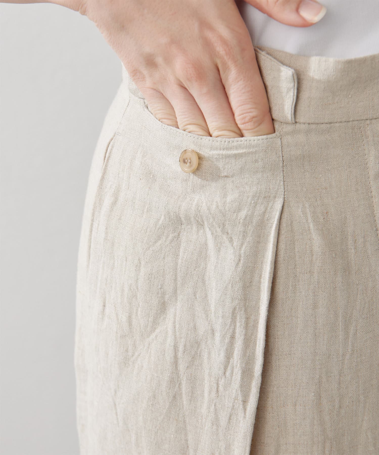 ■品質にこだわった上質なリネンを使用したワイドタックパンツ。