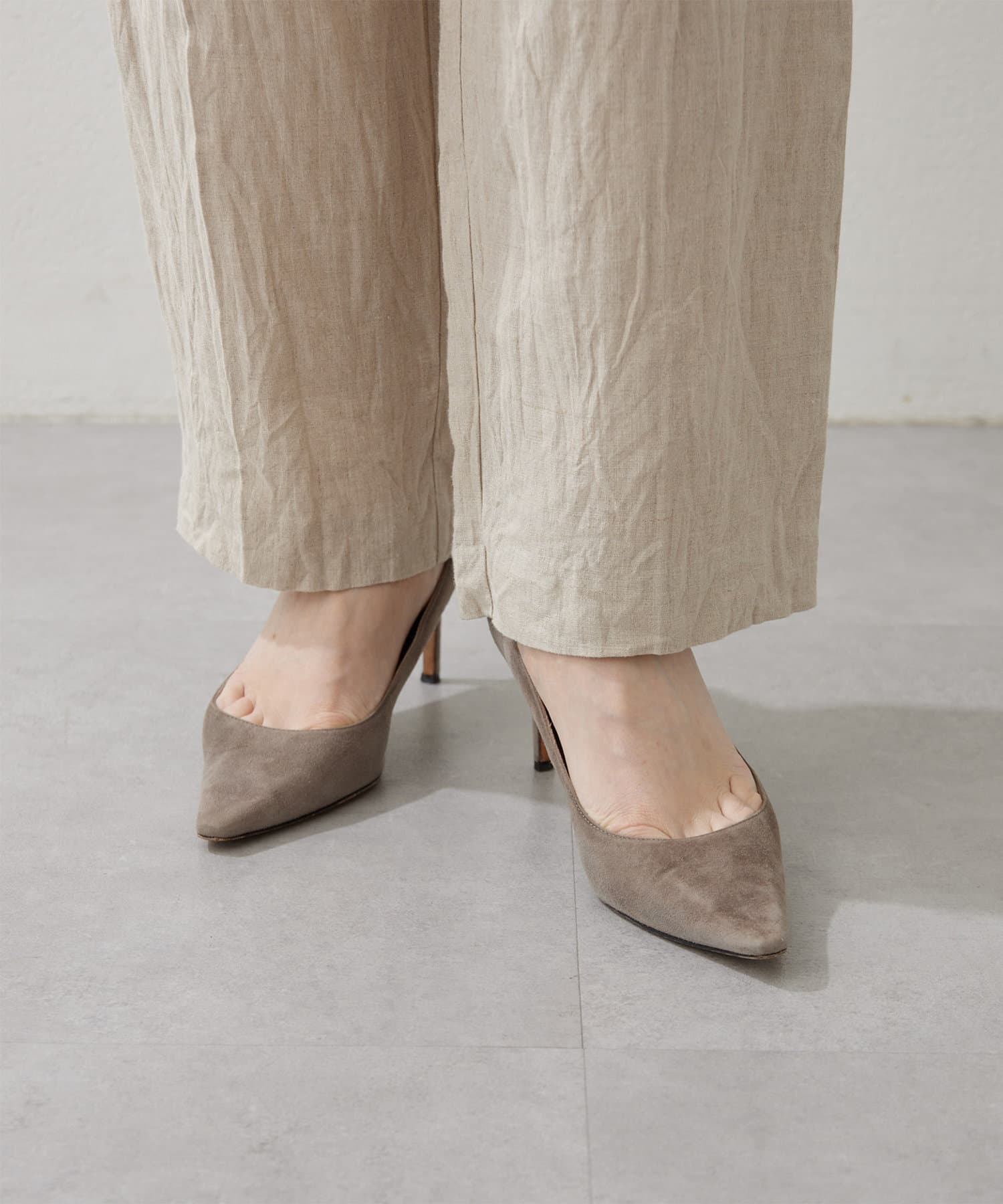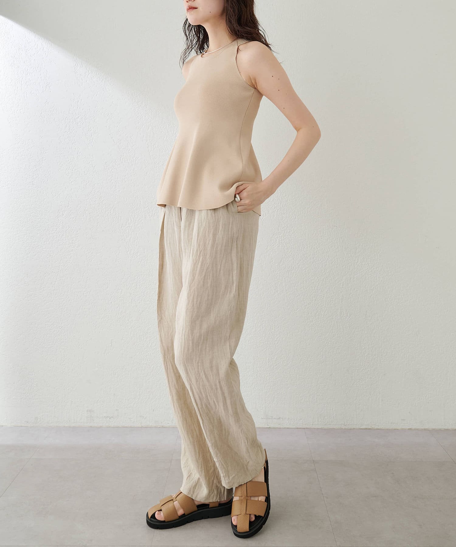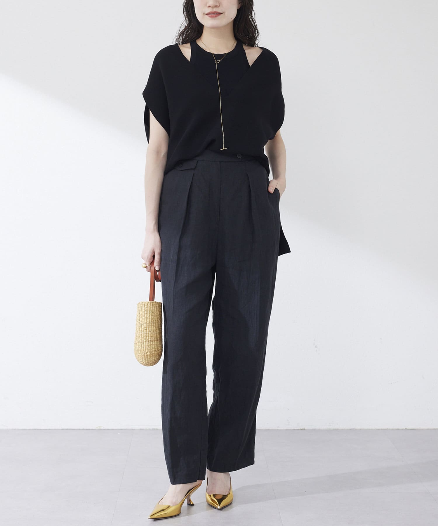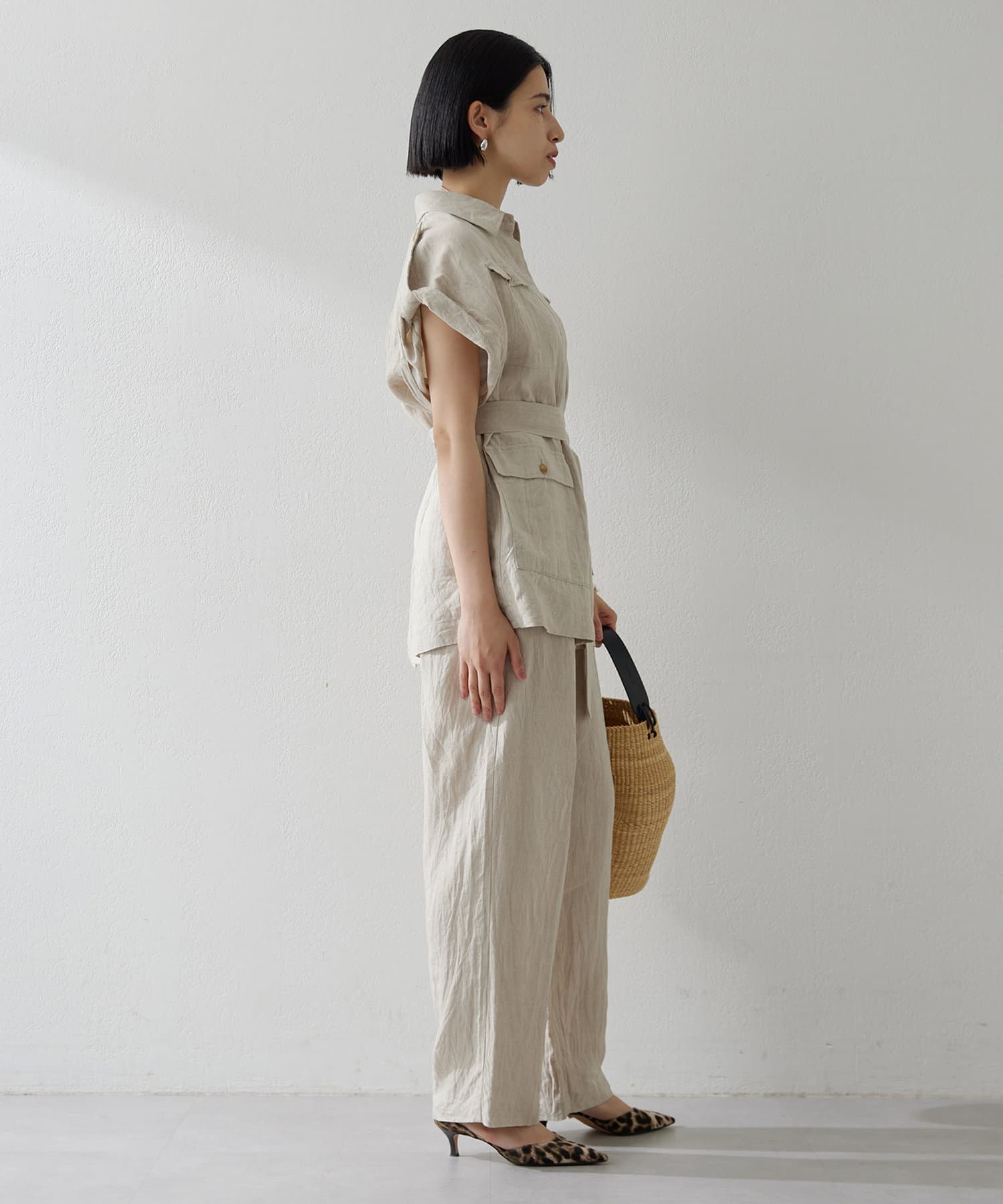 ■品質にこだわった上質なリネンを使用したワイドタックパンツ。