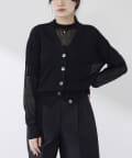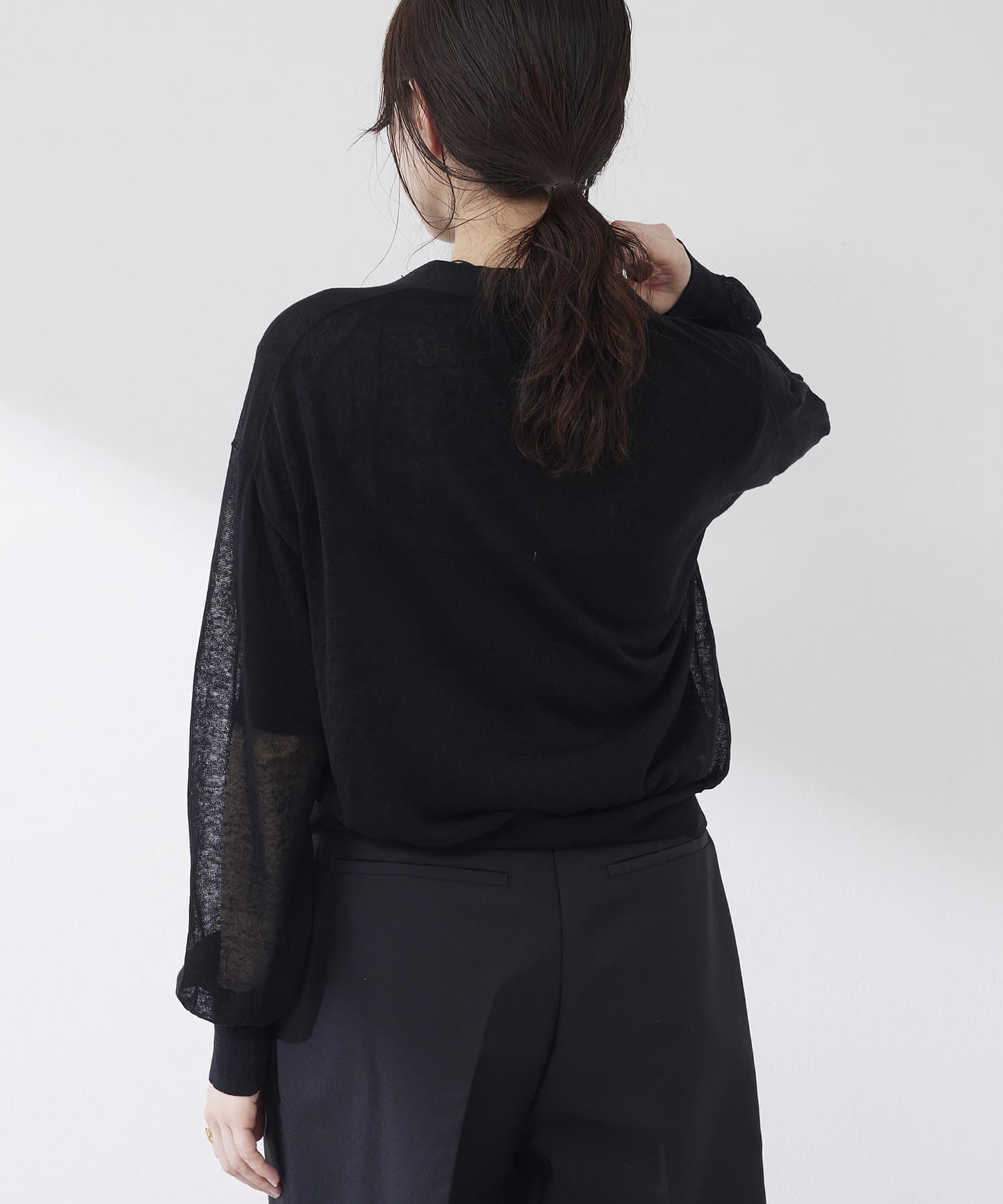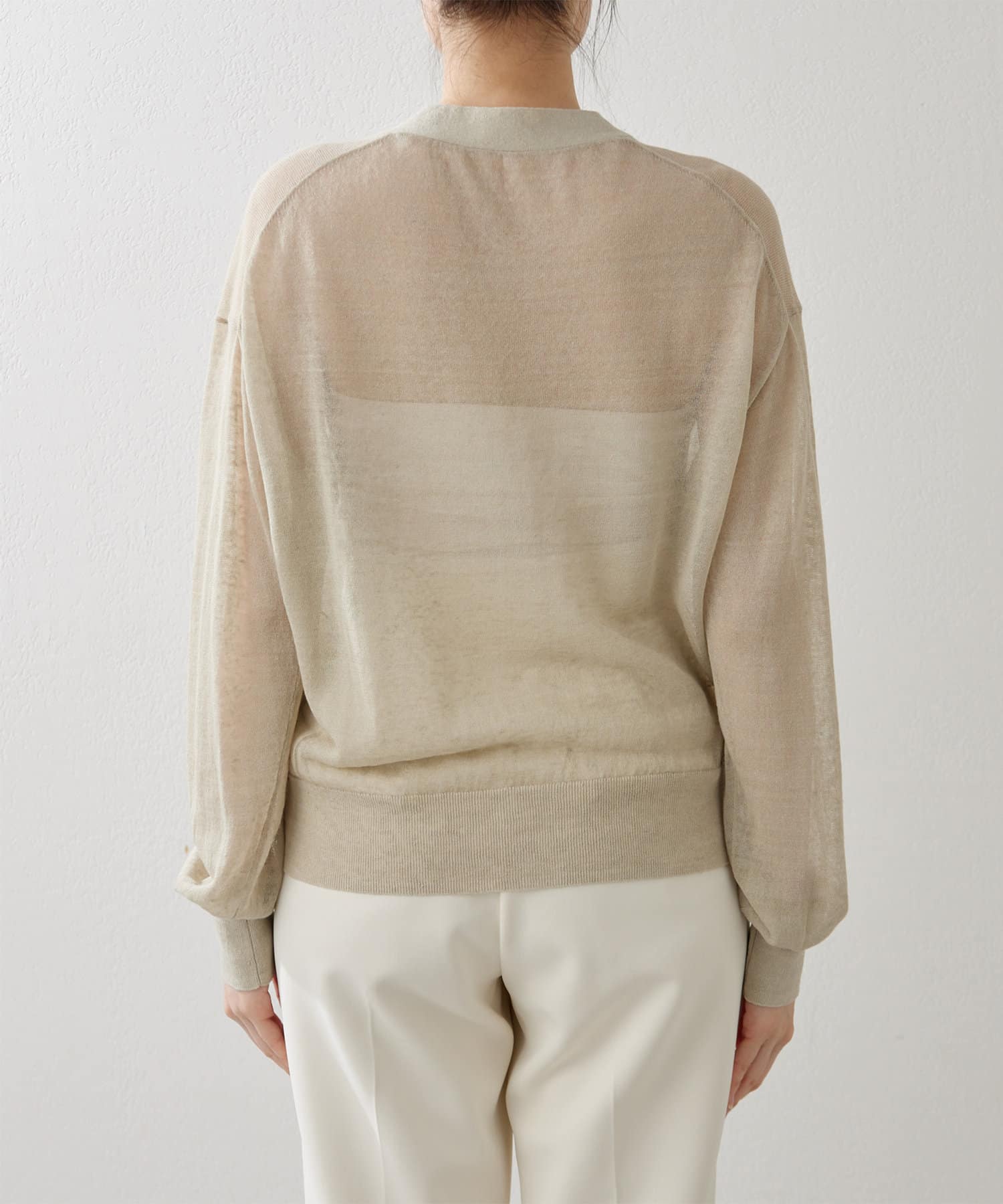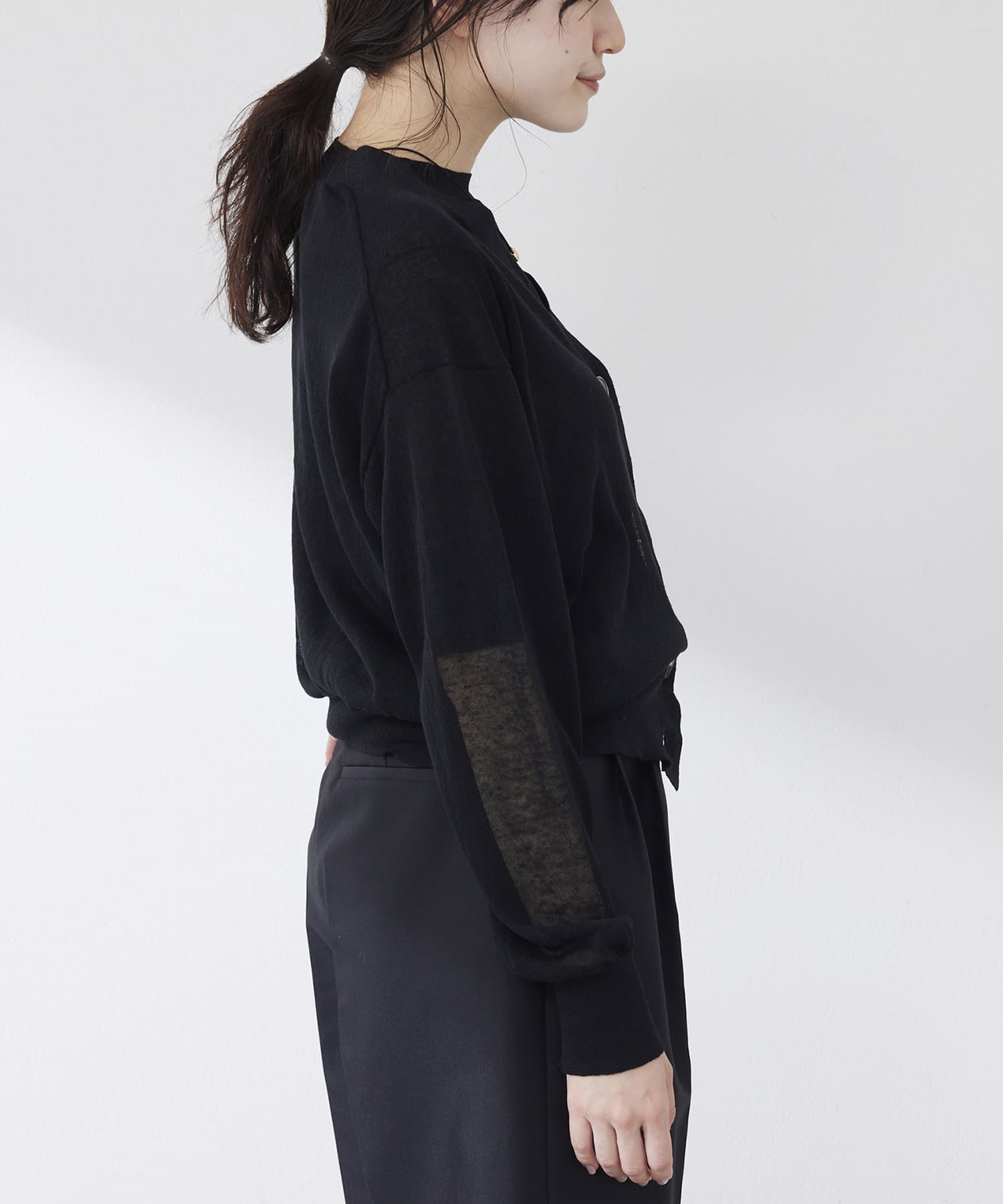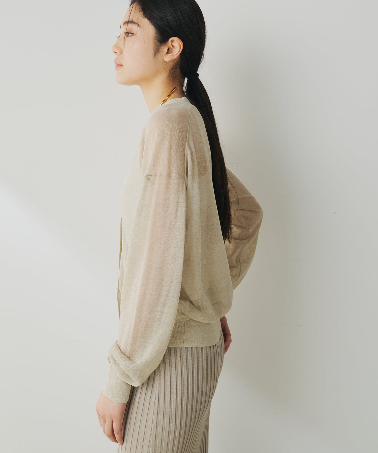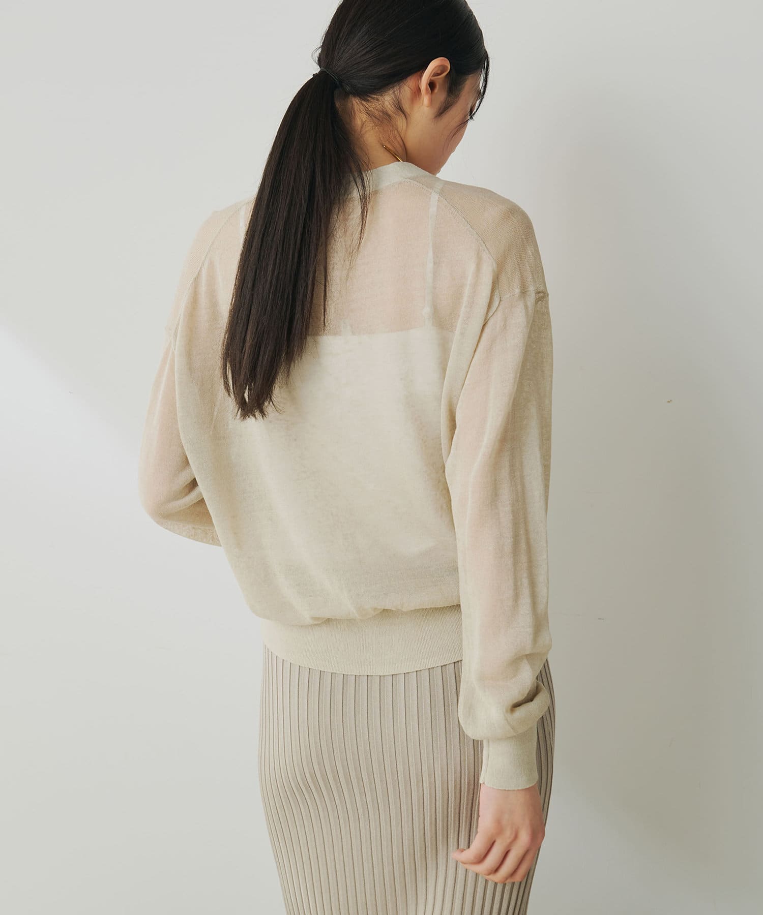 ■程よい透け感が女性らしさを引き立てるシアーニットカーディガン。