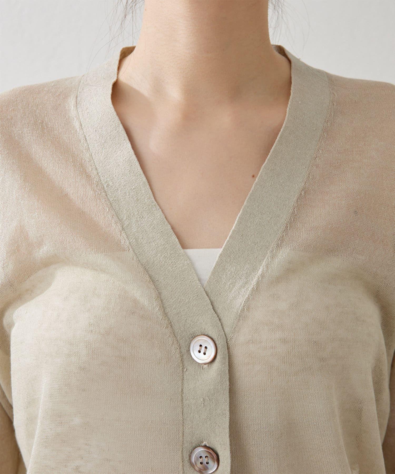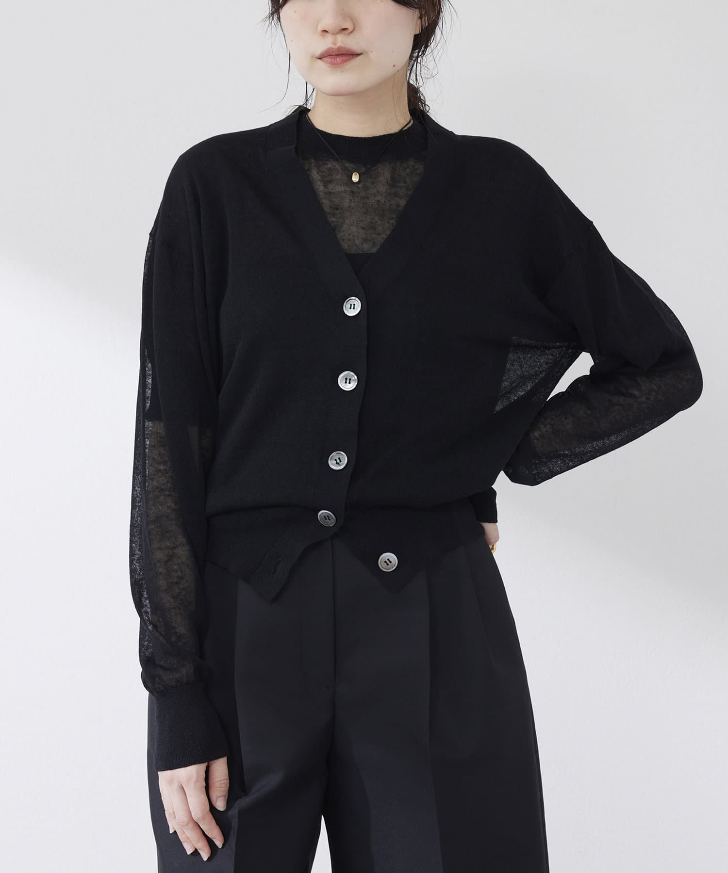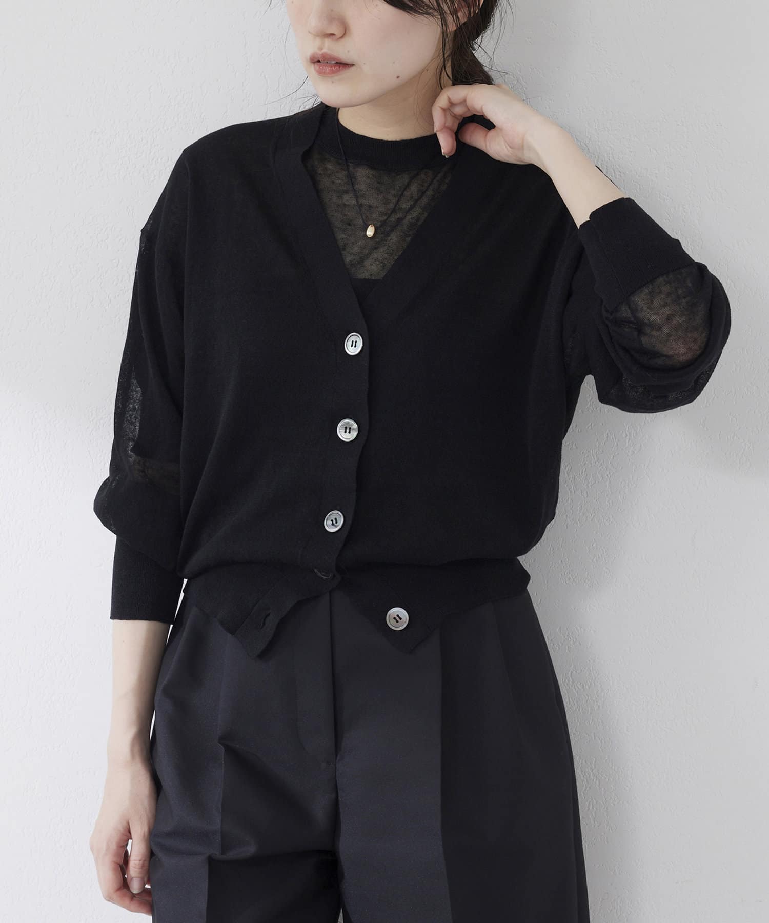 幅広いスタイルにマッチする、シンプルなシアーカーディガン
