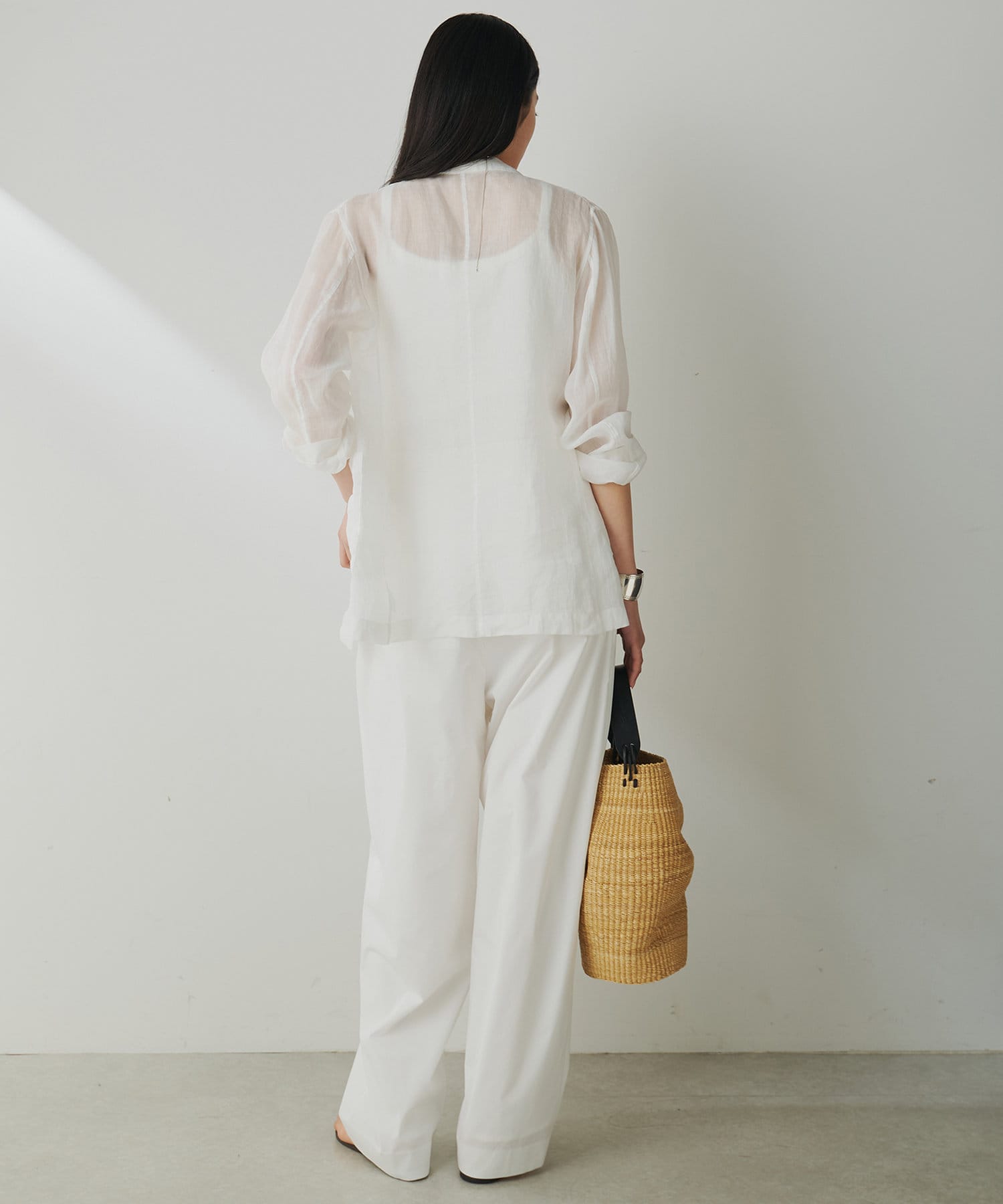 ■暑いシーズンには、一枚でデニムやワークパンツと合わせるカジュアルなスタイルもおすすめ。