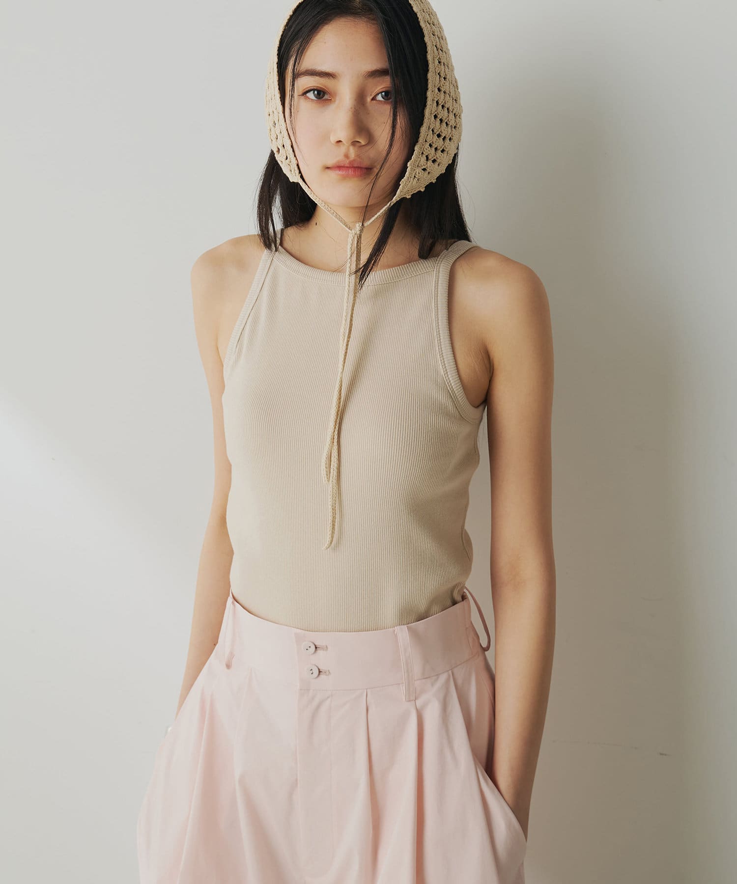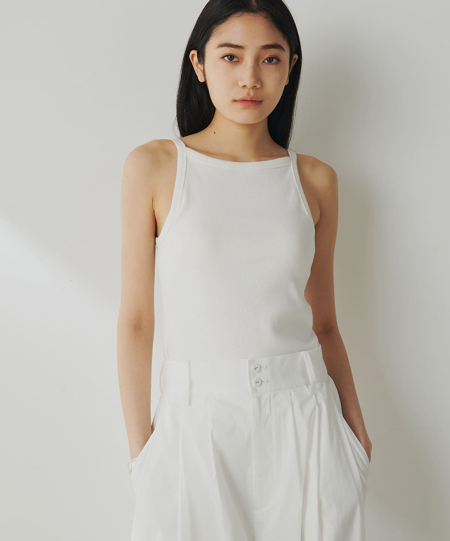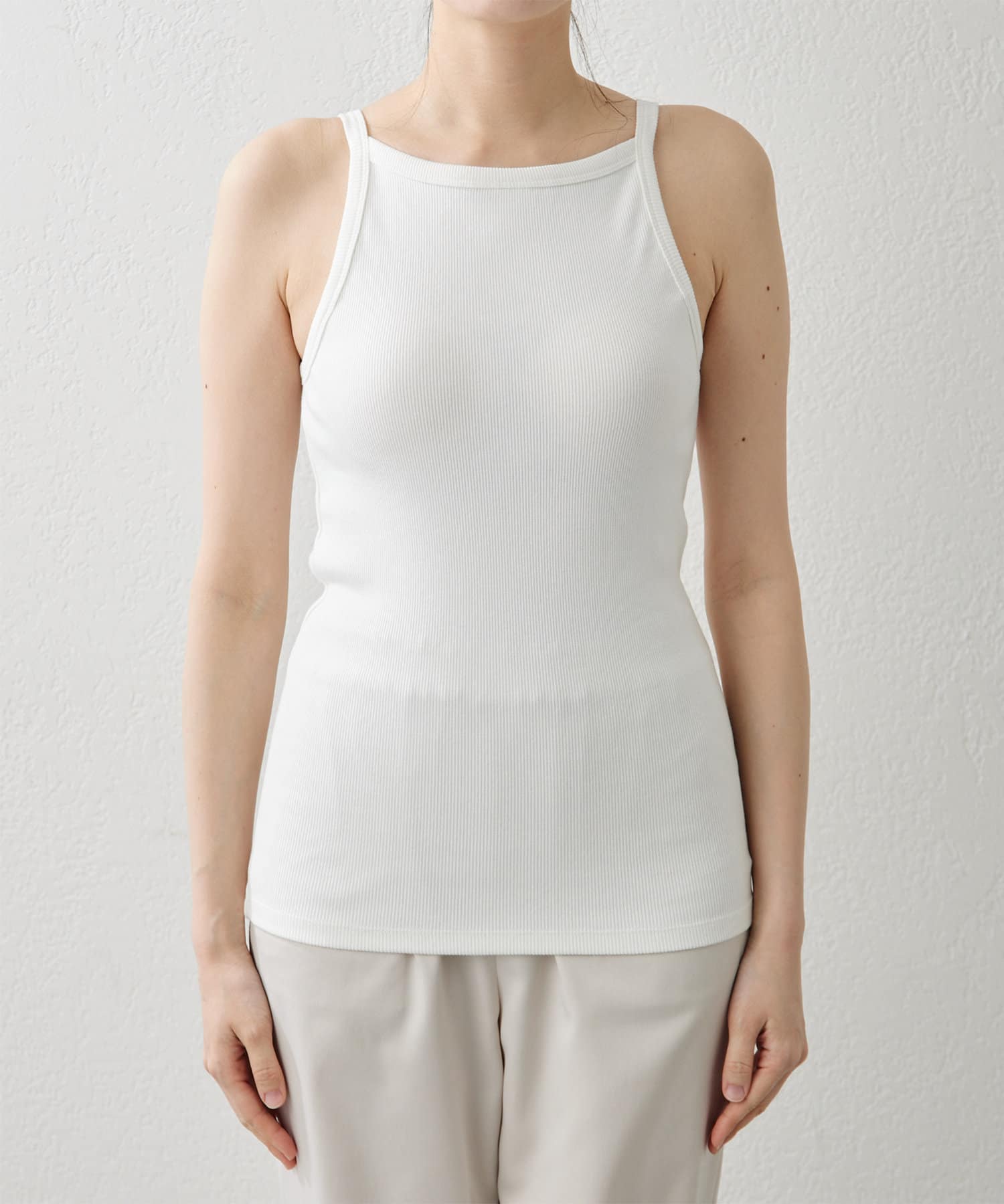 ■すっきりとしたアメリカンスリーブがヘルシーなキャミソール。