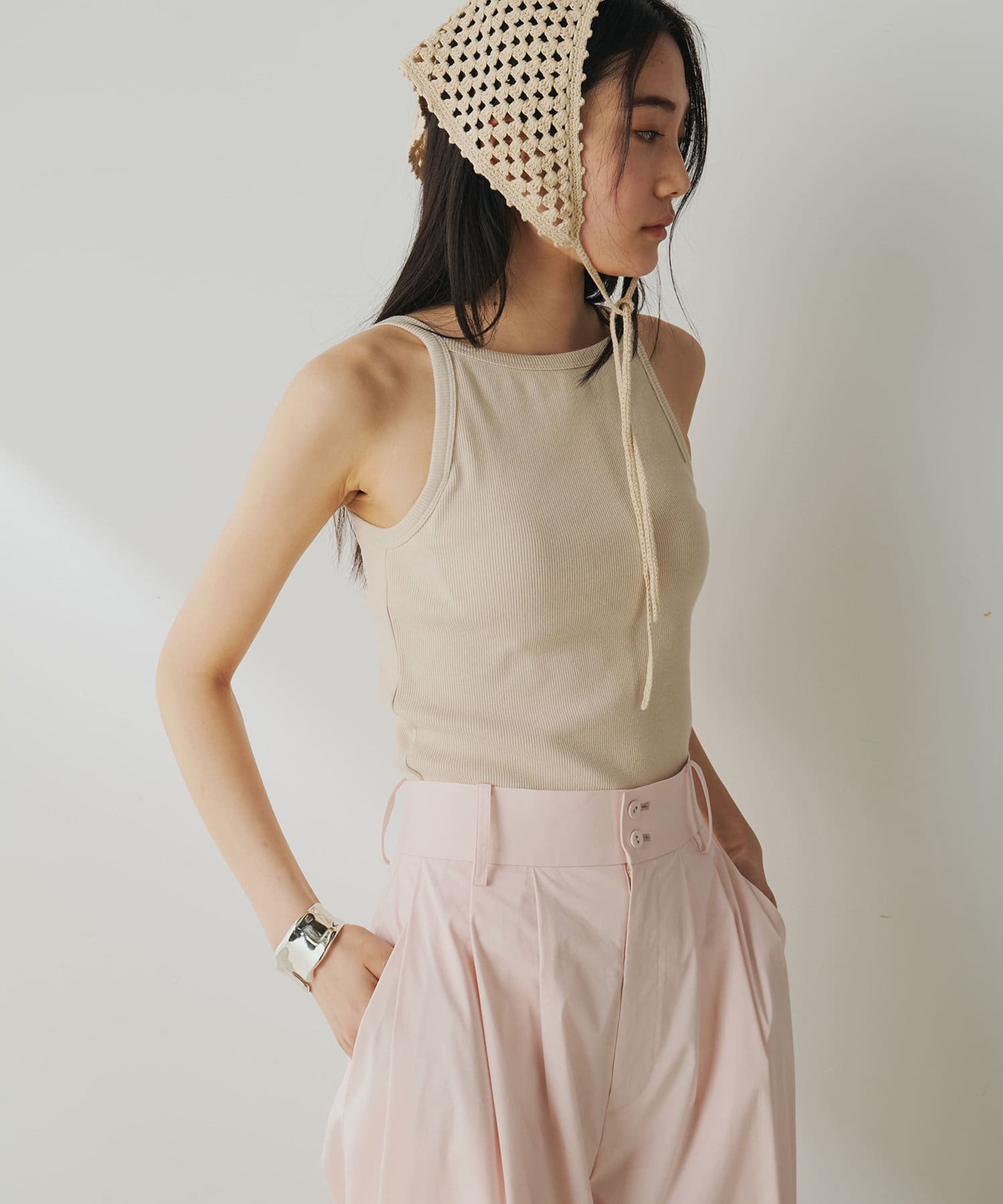 ■程よい肌見せはヘルシーで抜け感があり、大人のスタイリングに取り入れやすいのも◎。