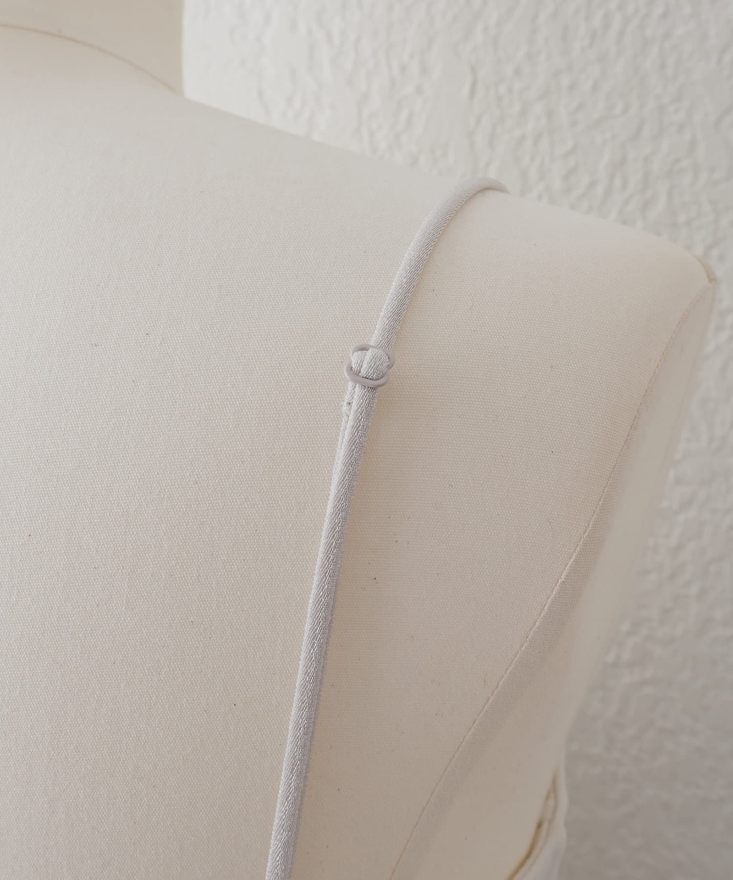 ■肩紐には見えても下着感の出ない細いストレッチコードを使用し、アジャスターで長さ調整可能。