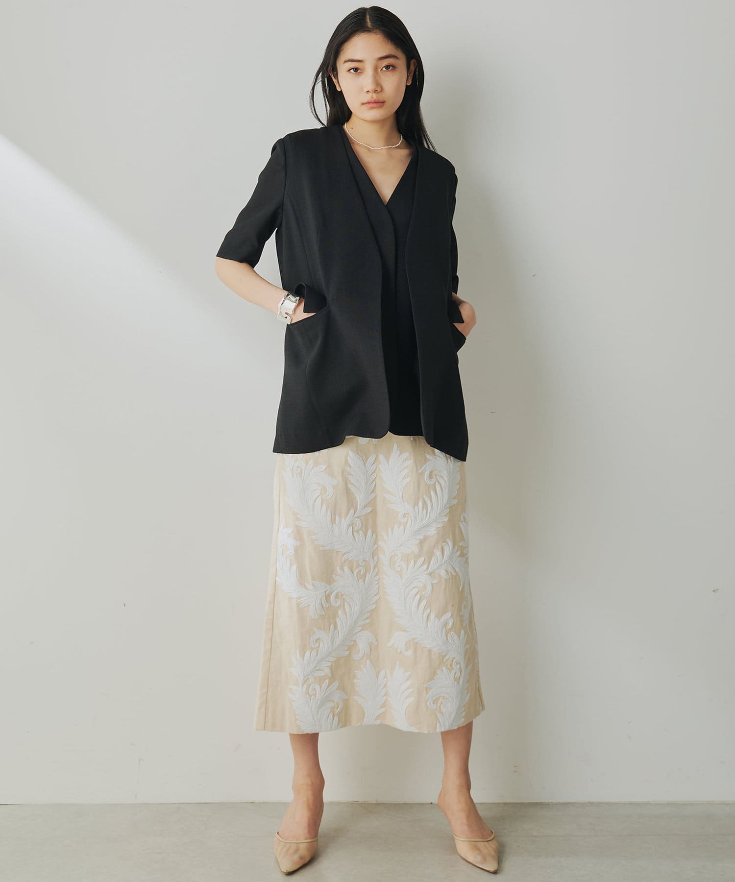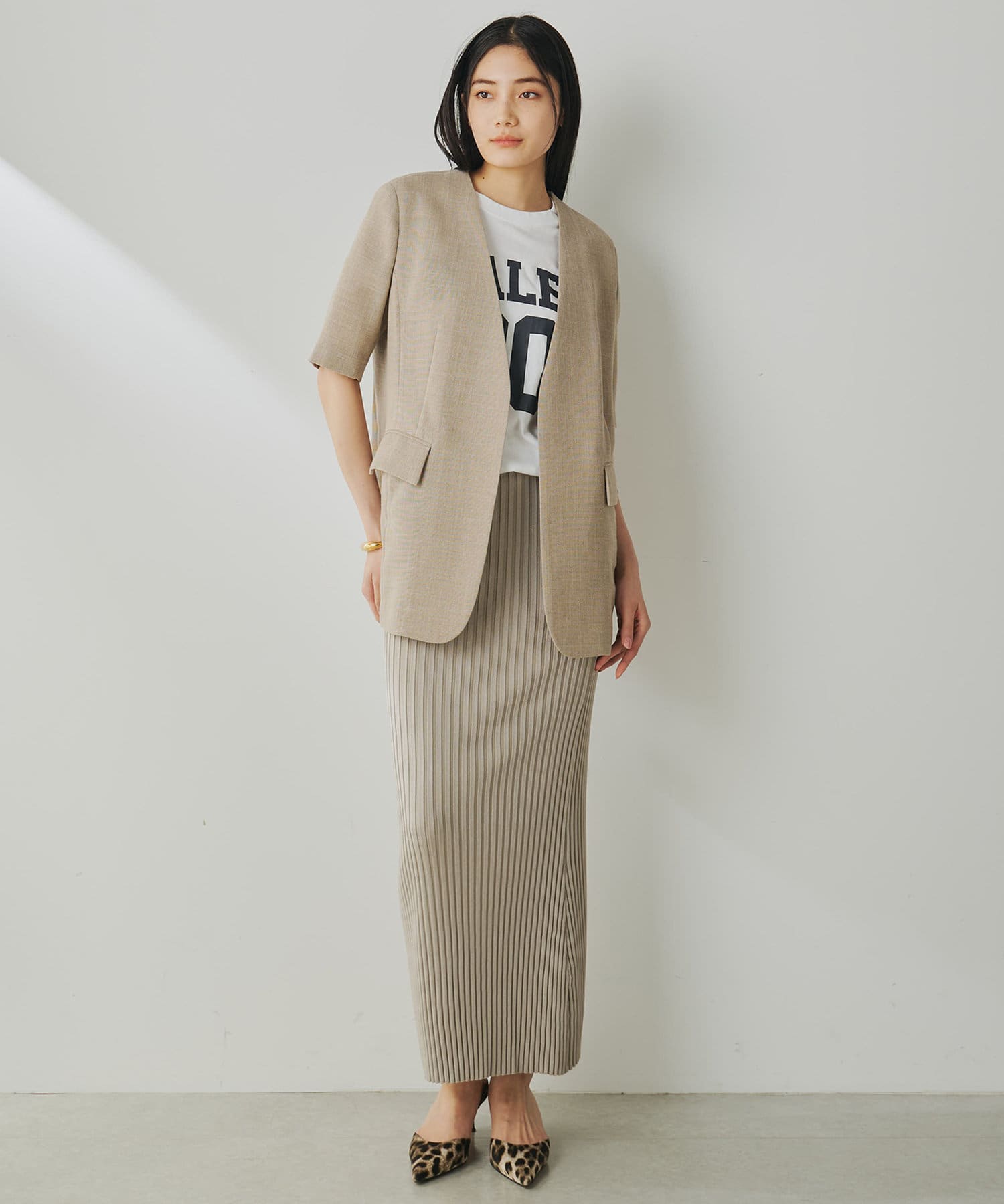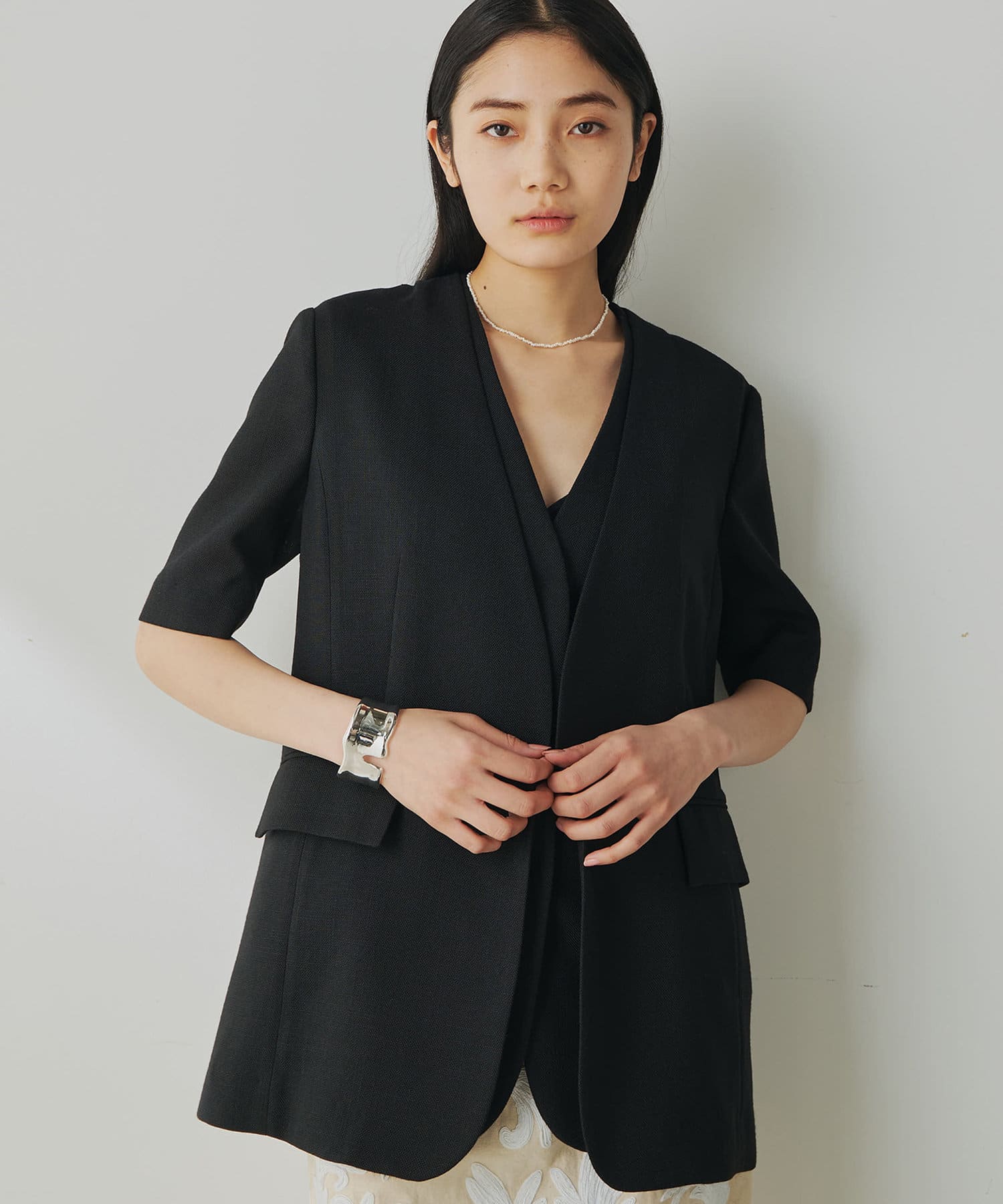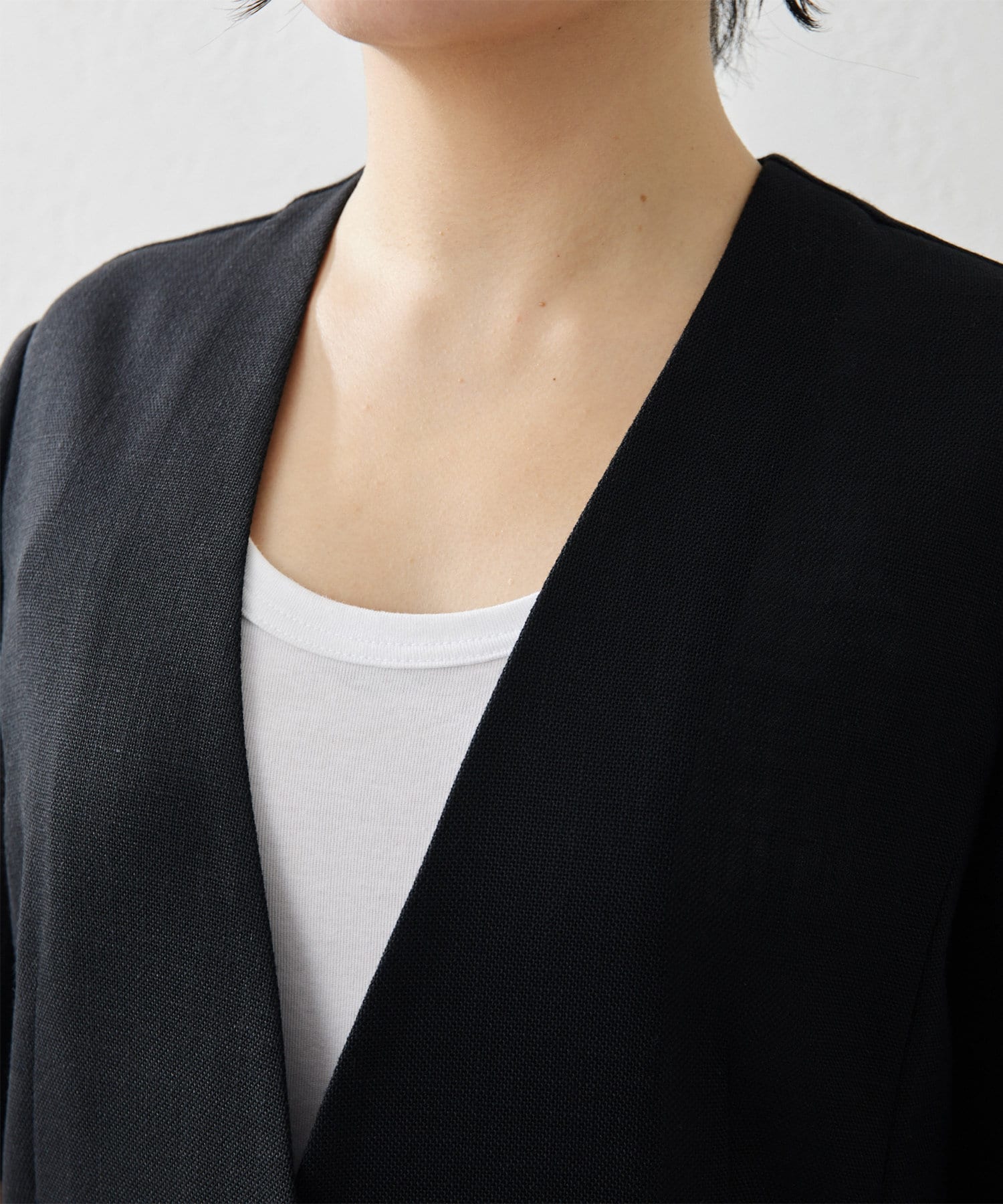 ■ノーカラーデザインでかっちりしすぎず気兼ねなく羽織れるラフさもポイント。