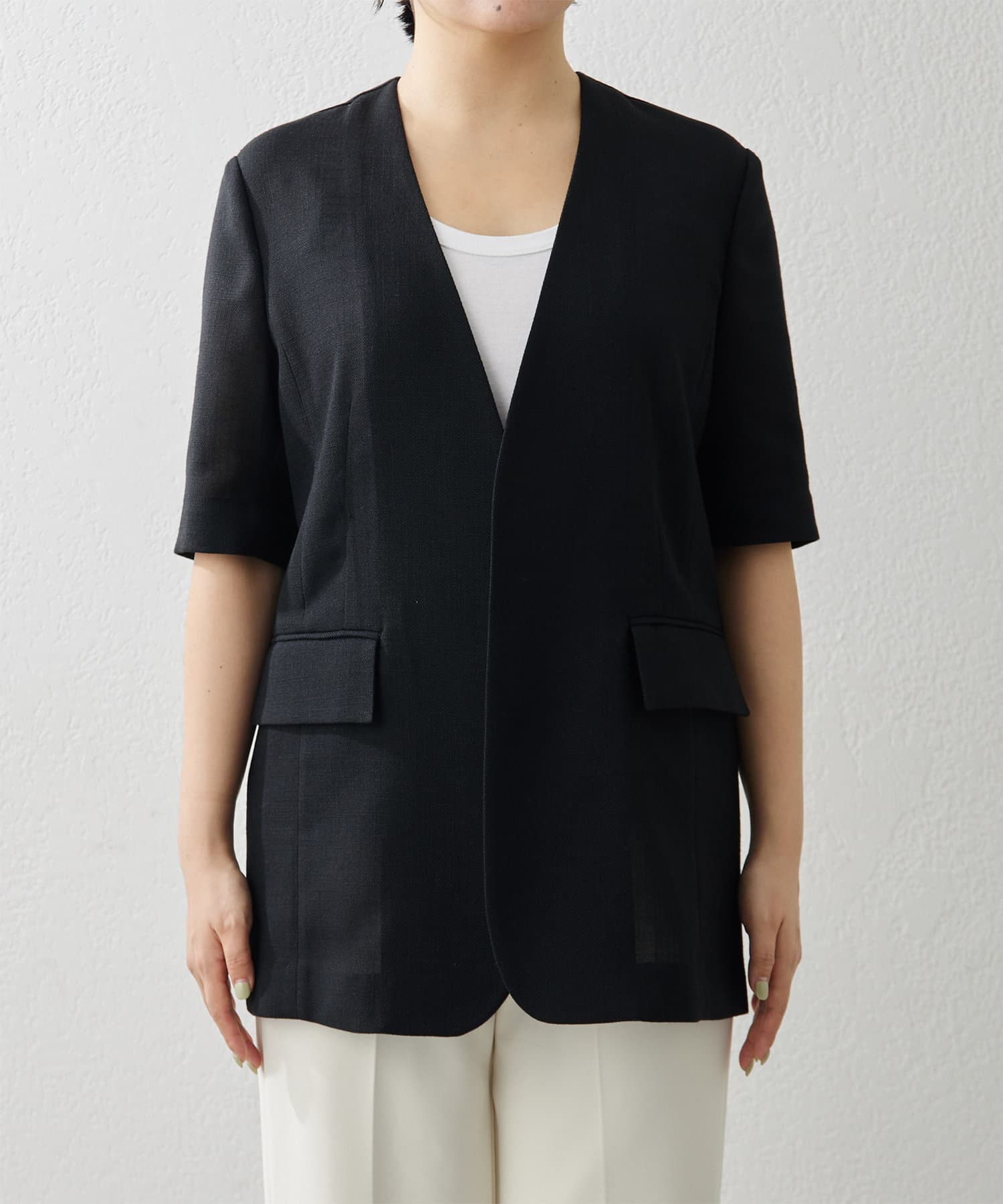 リネンライク素材で軽やかに楽しめる、半袖仕様のジャケット