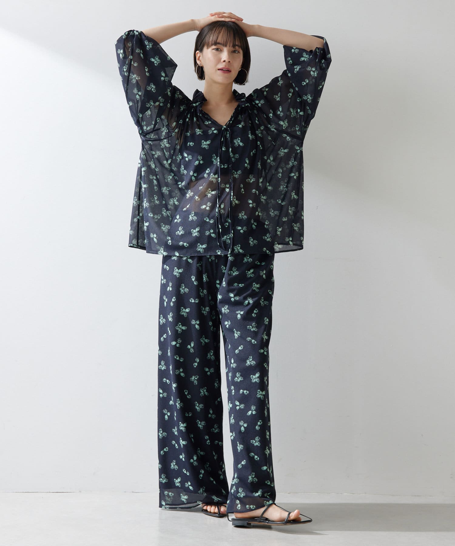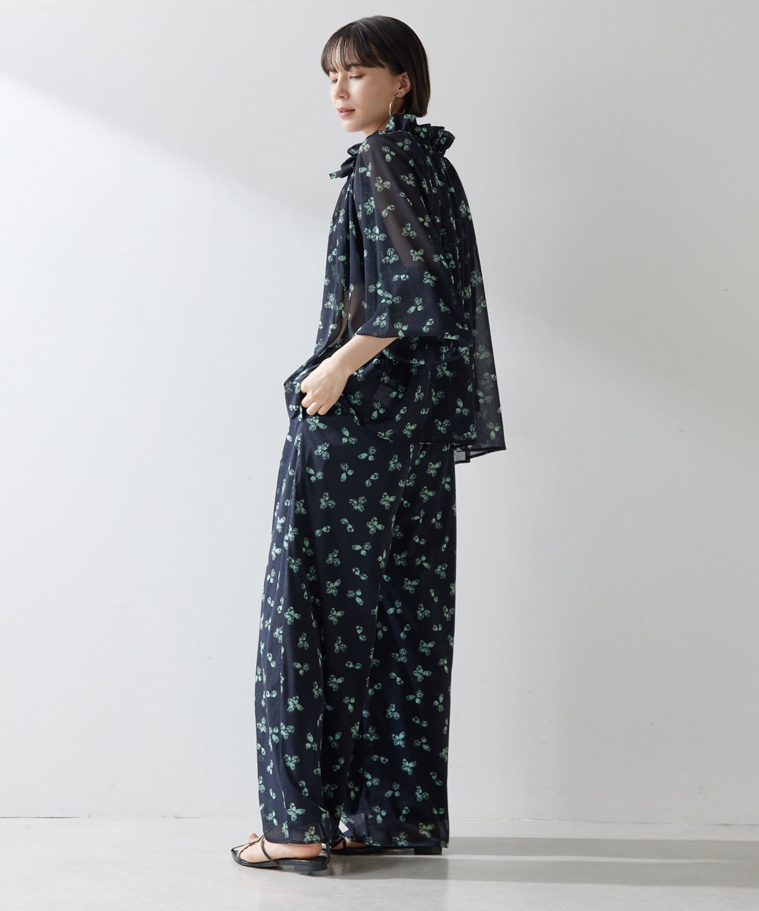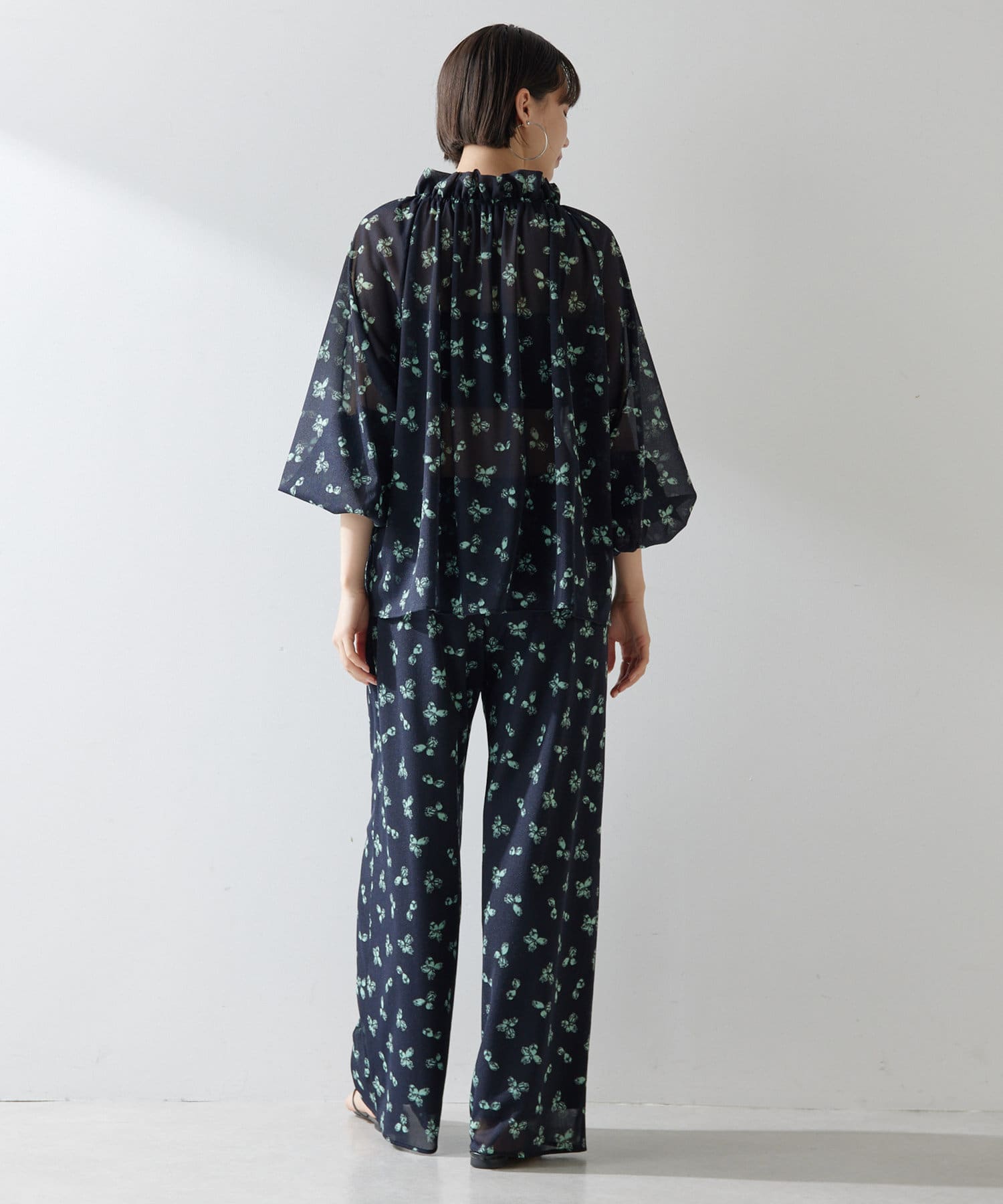 ■同素材のシアーフラワーギャザーブラウス(ブランド品番:WGZ1051504A0004) とのセットアップもおすすめ。