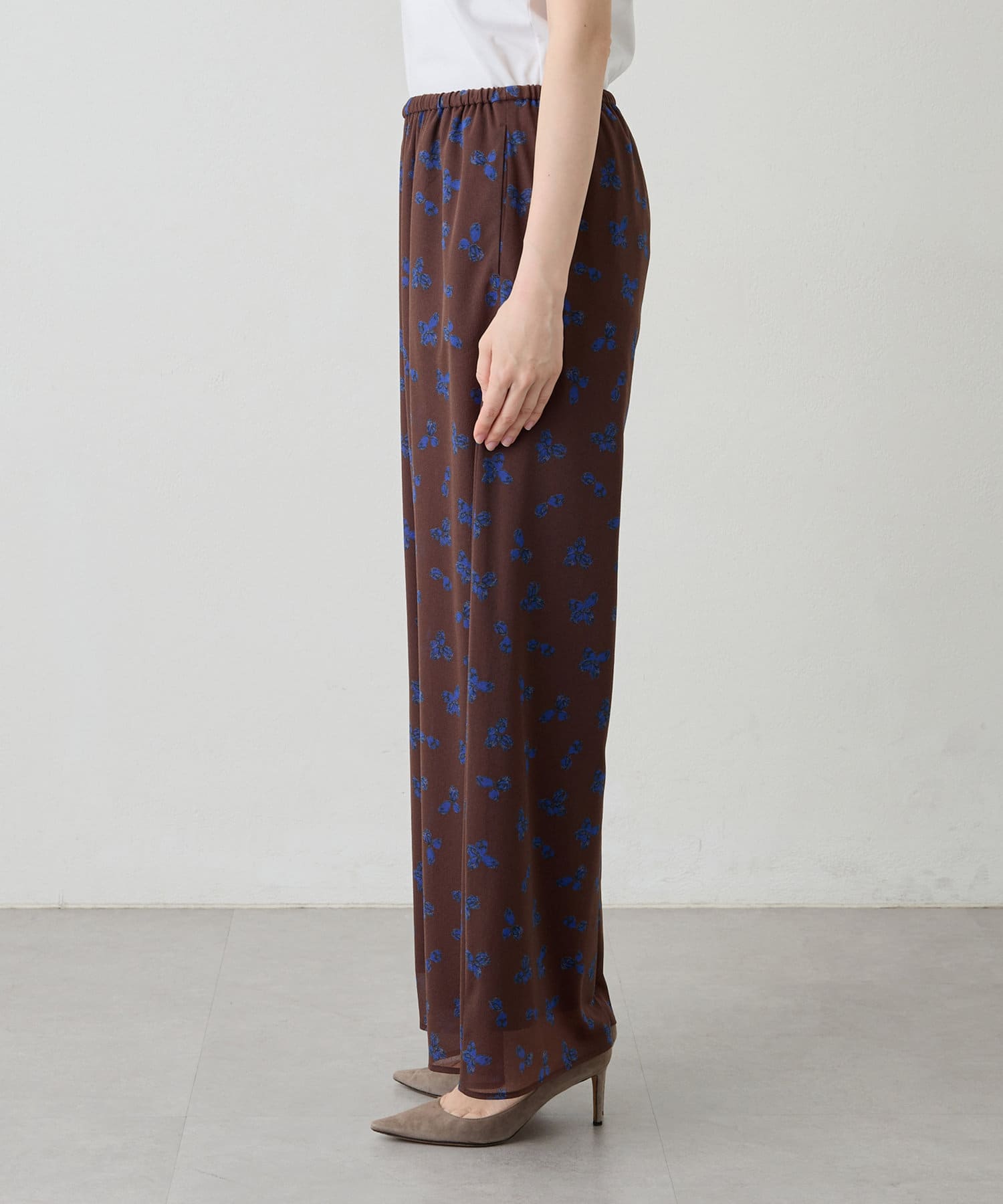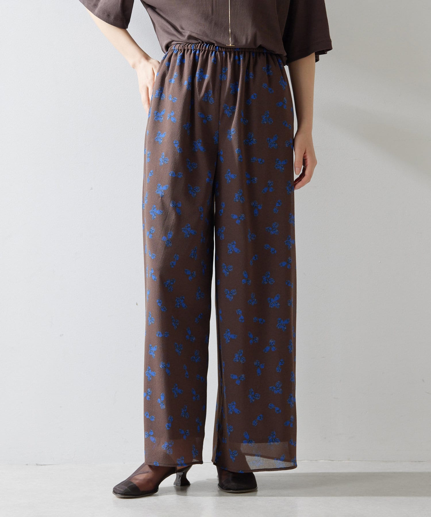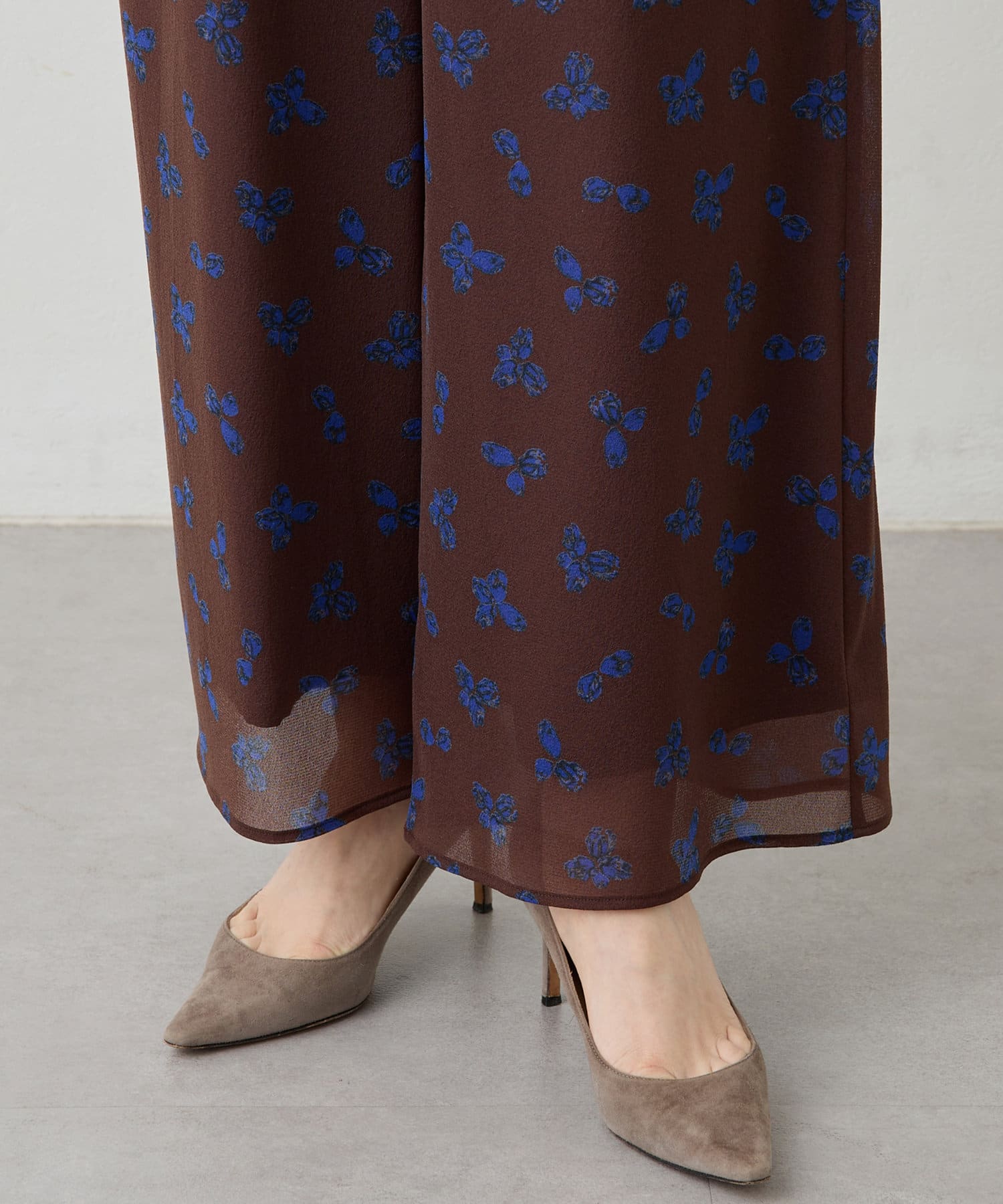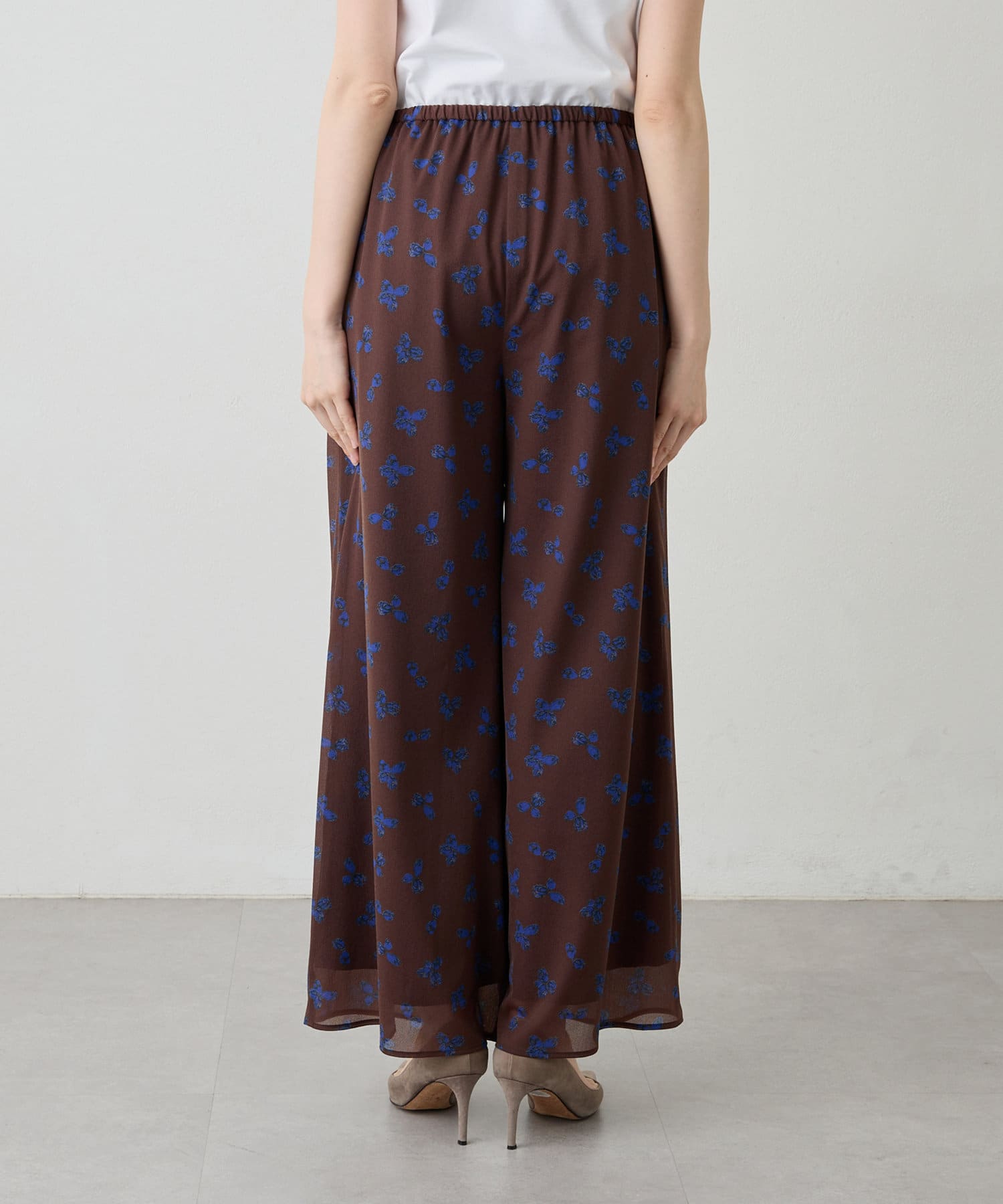 ■フラワーモチーフプリントがポイントになるワイドパンツ。