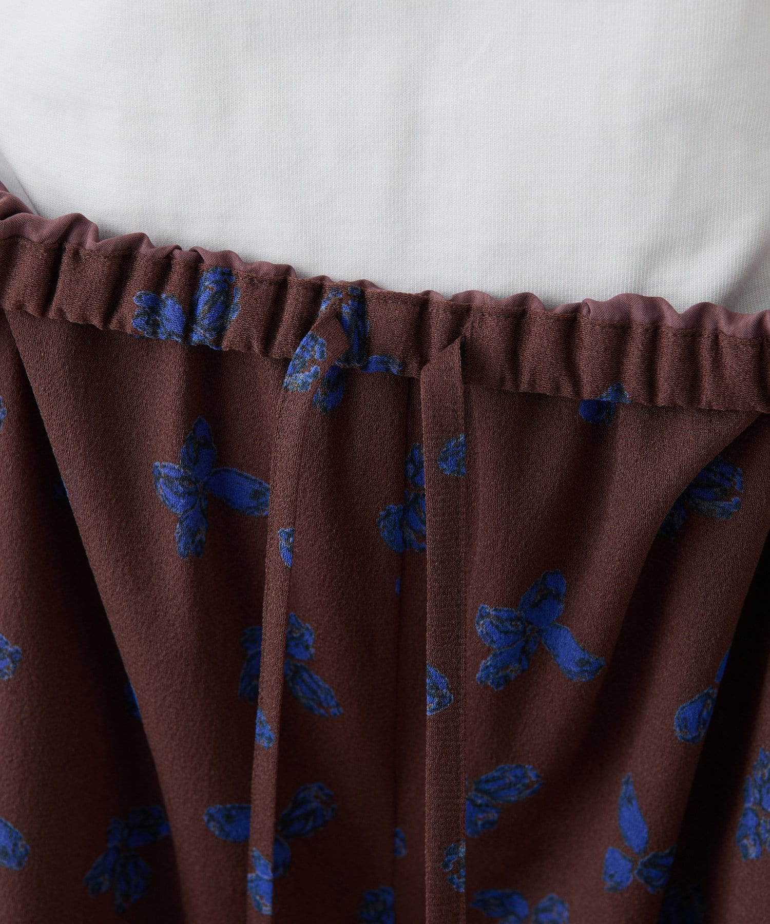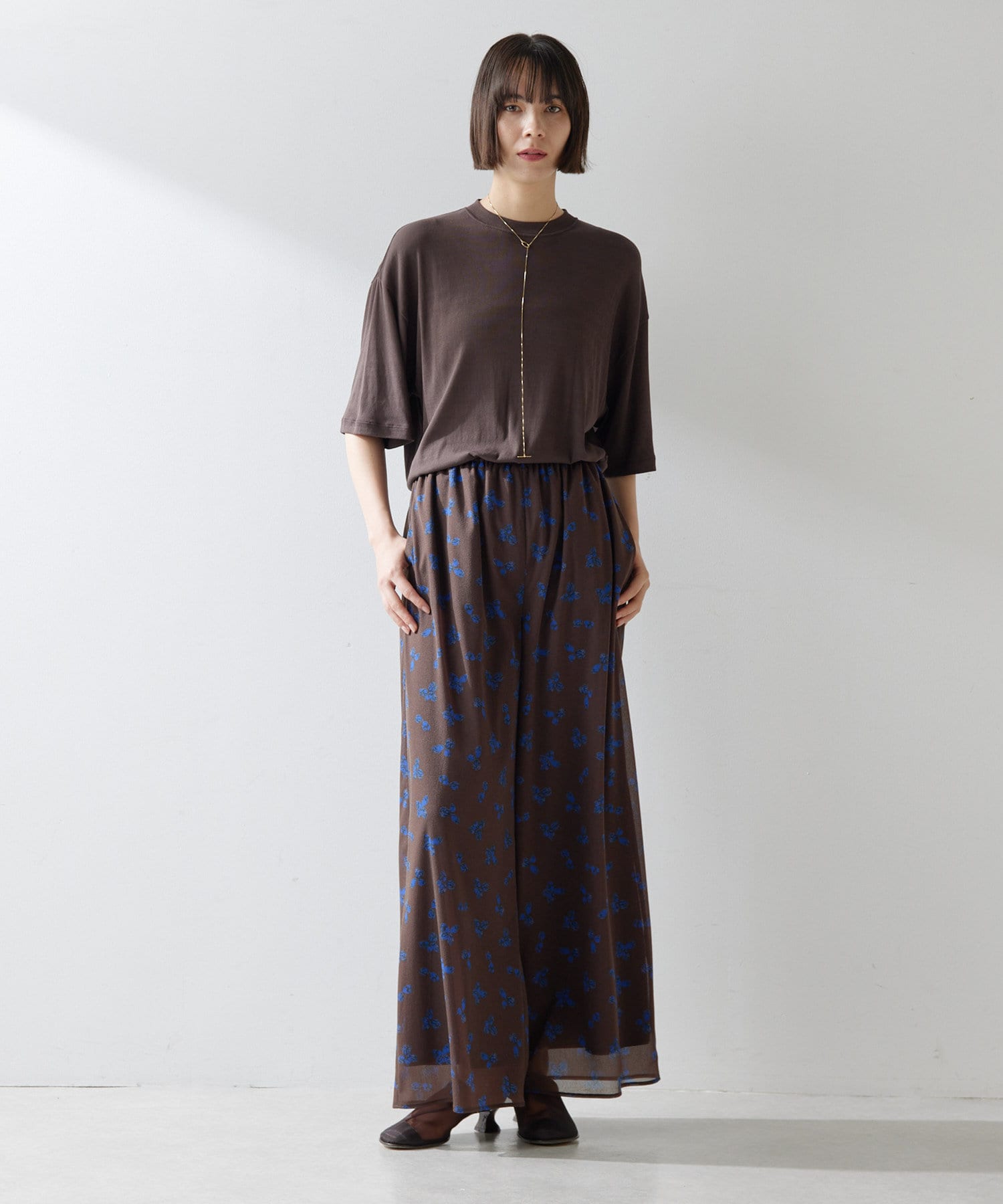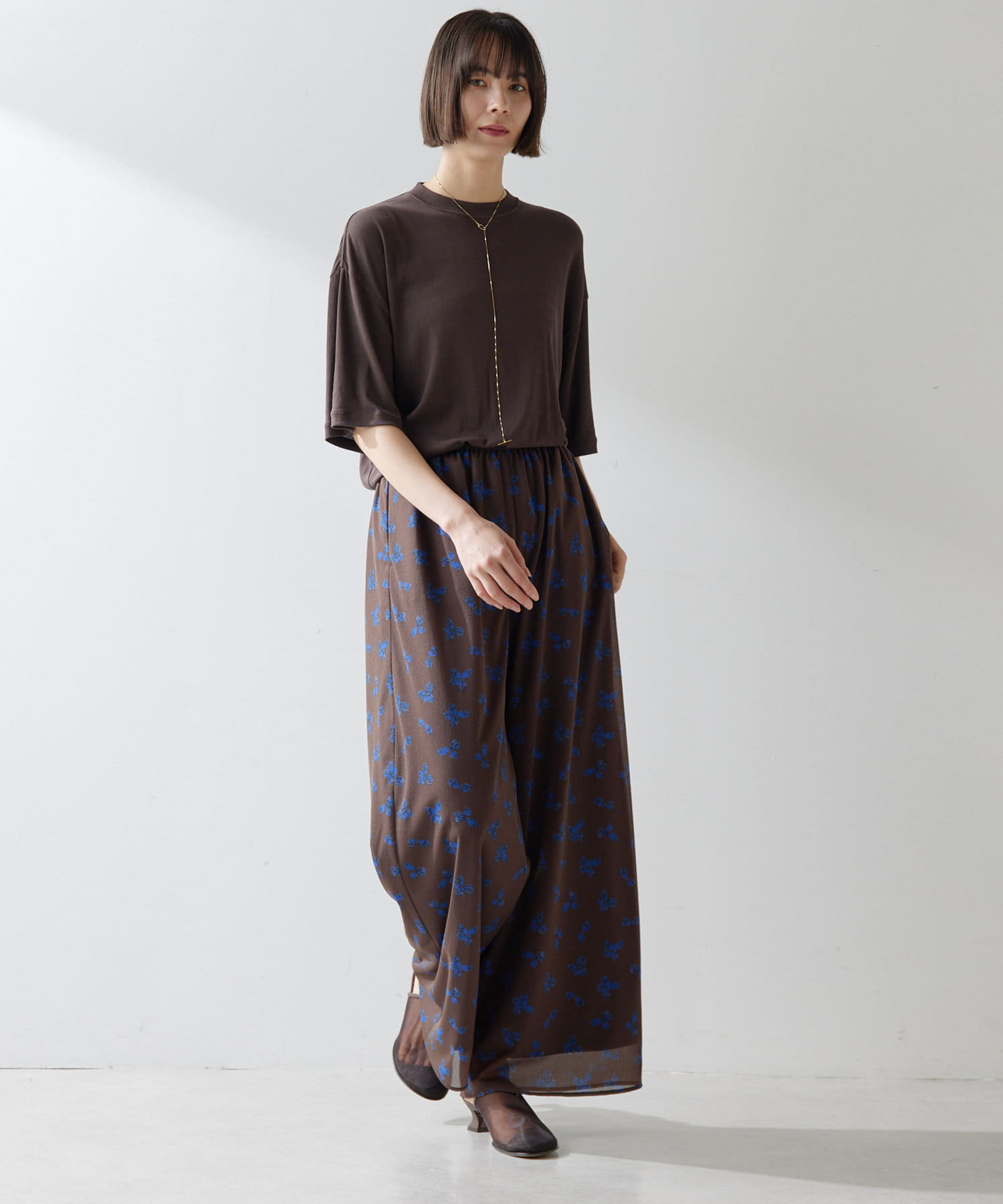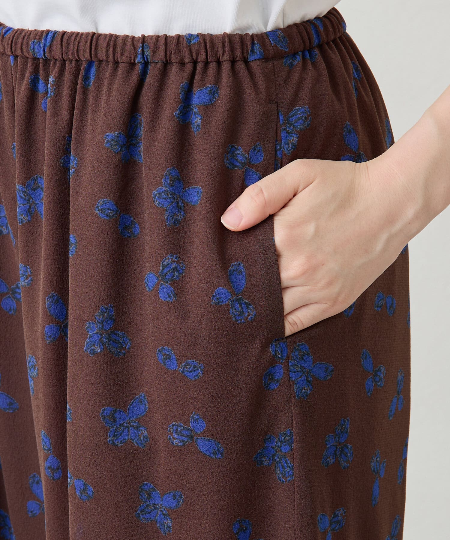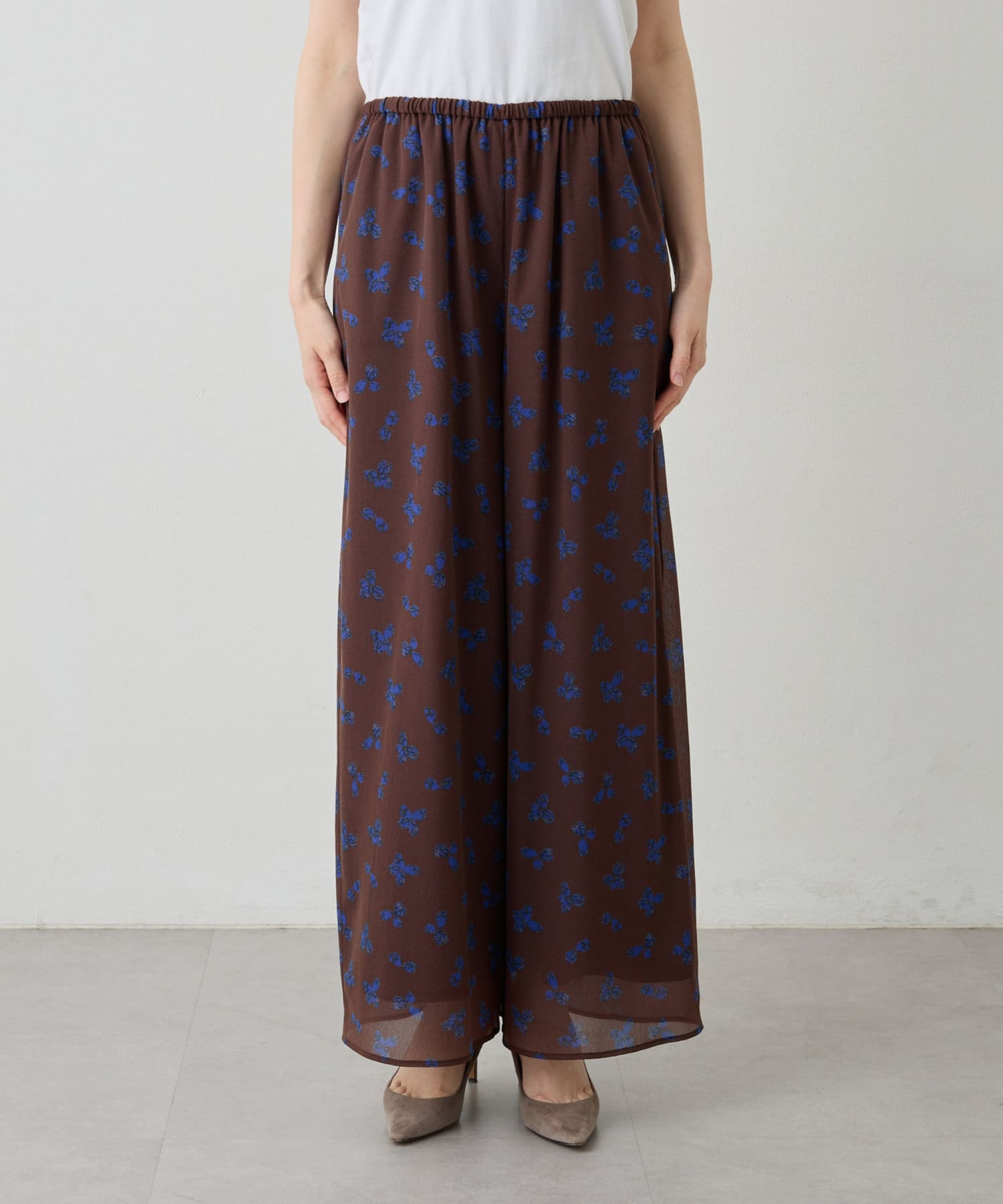 ■フラワーモチーフプリントがポイントになるワイドパンツ。