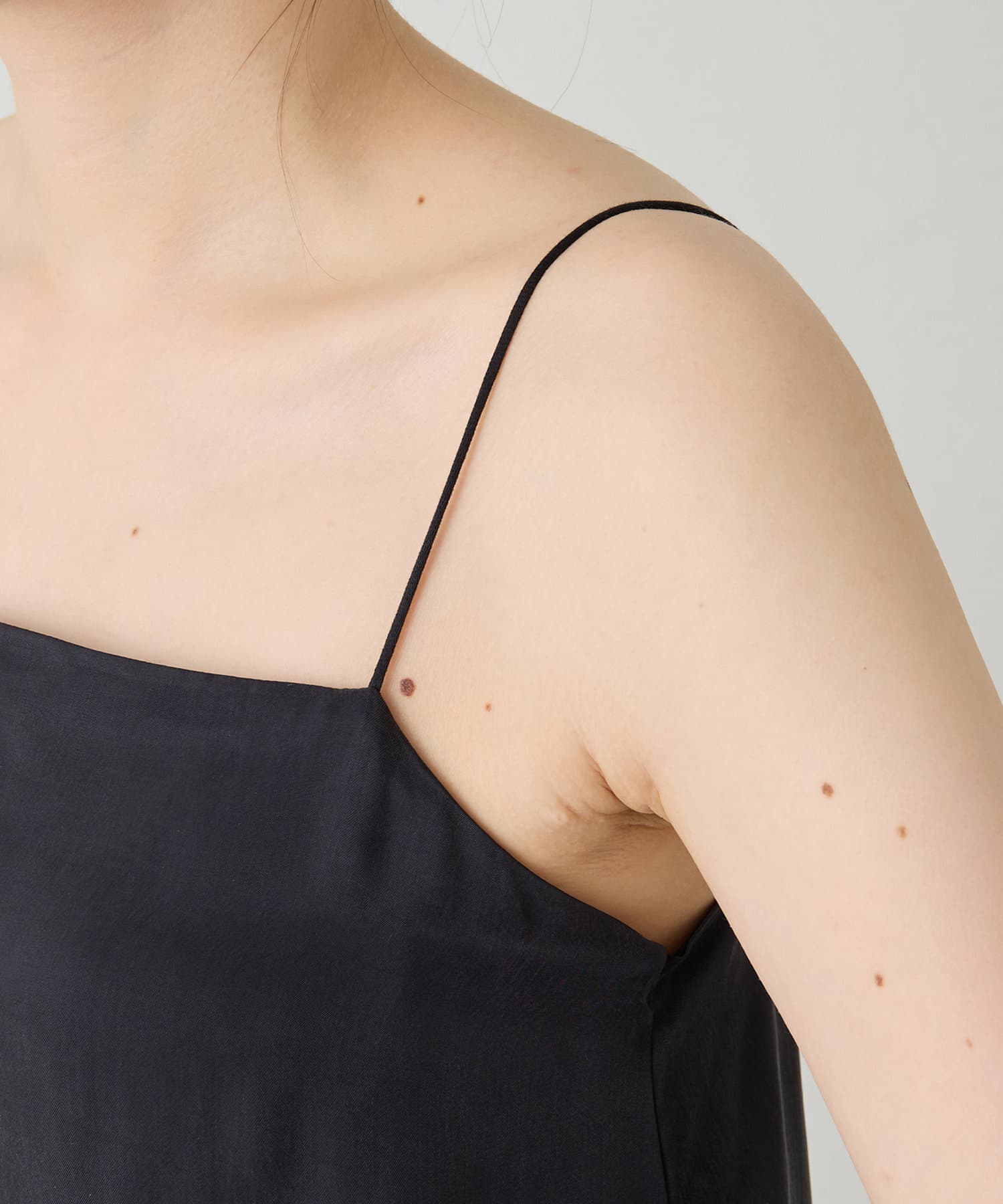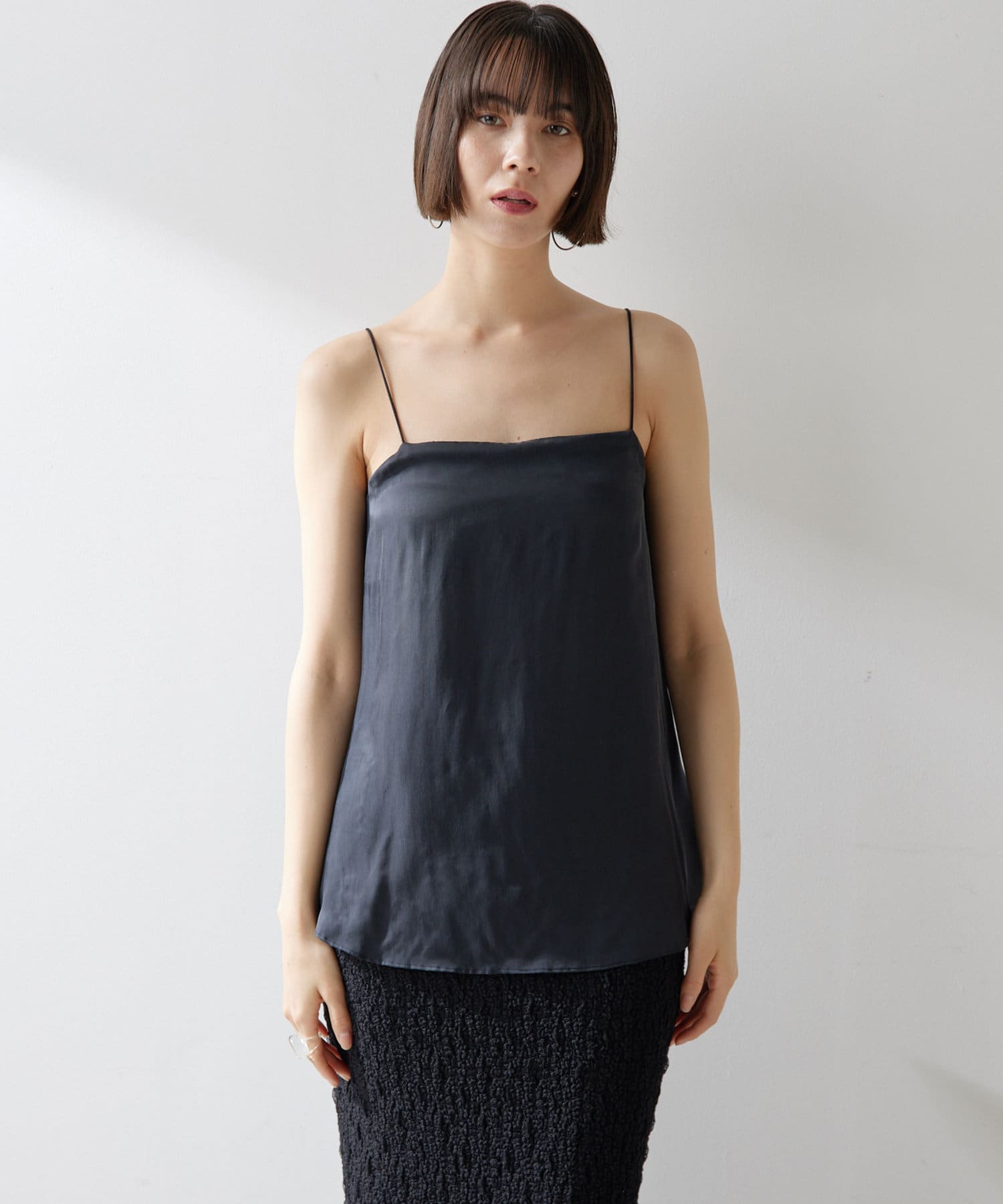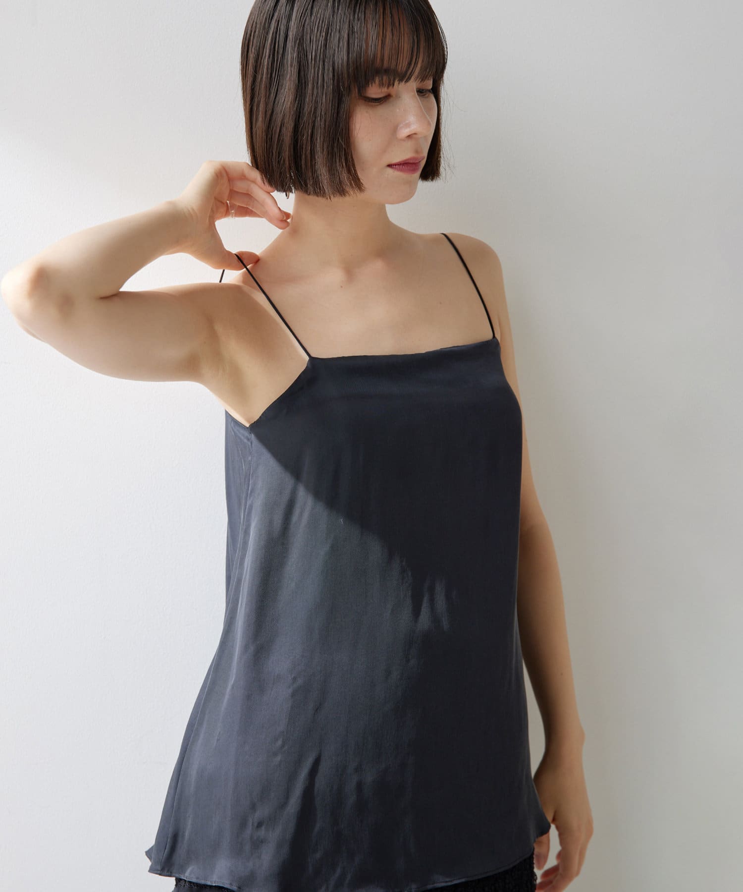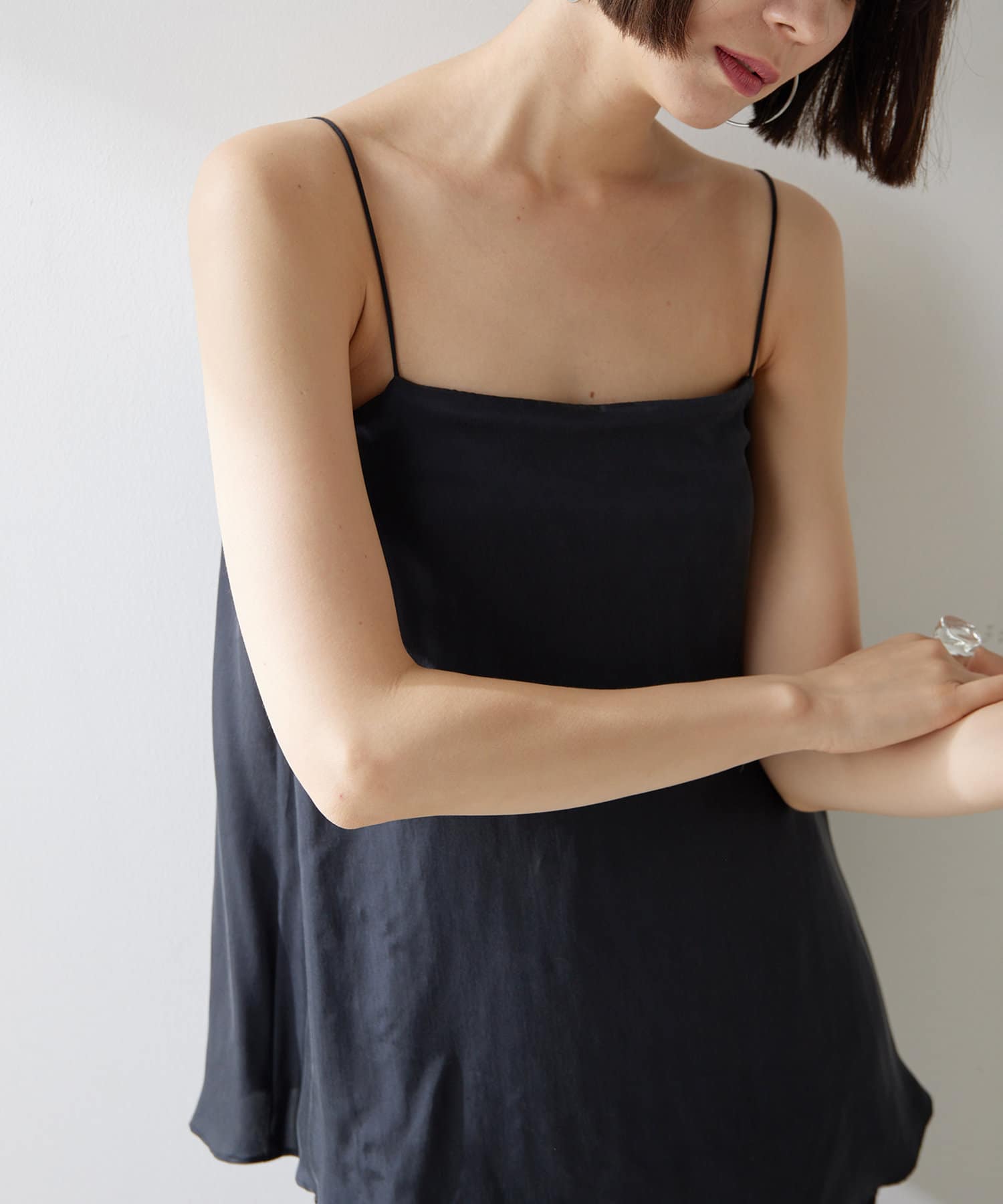 一枚でもさらりと楽しめる、パッド付サテンキャミ