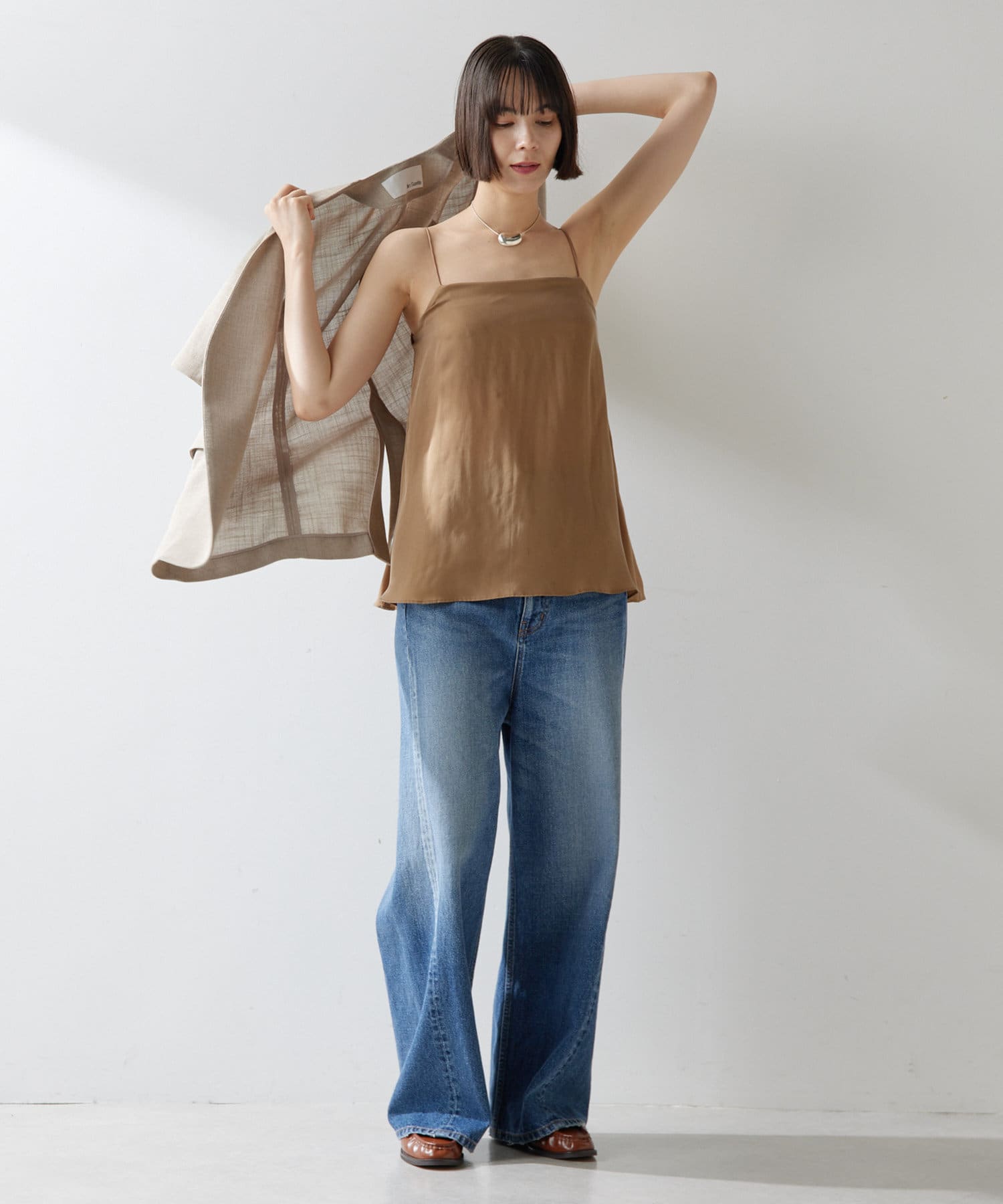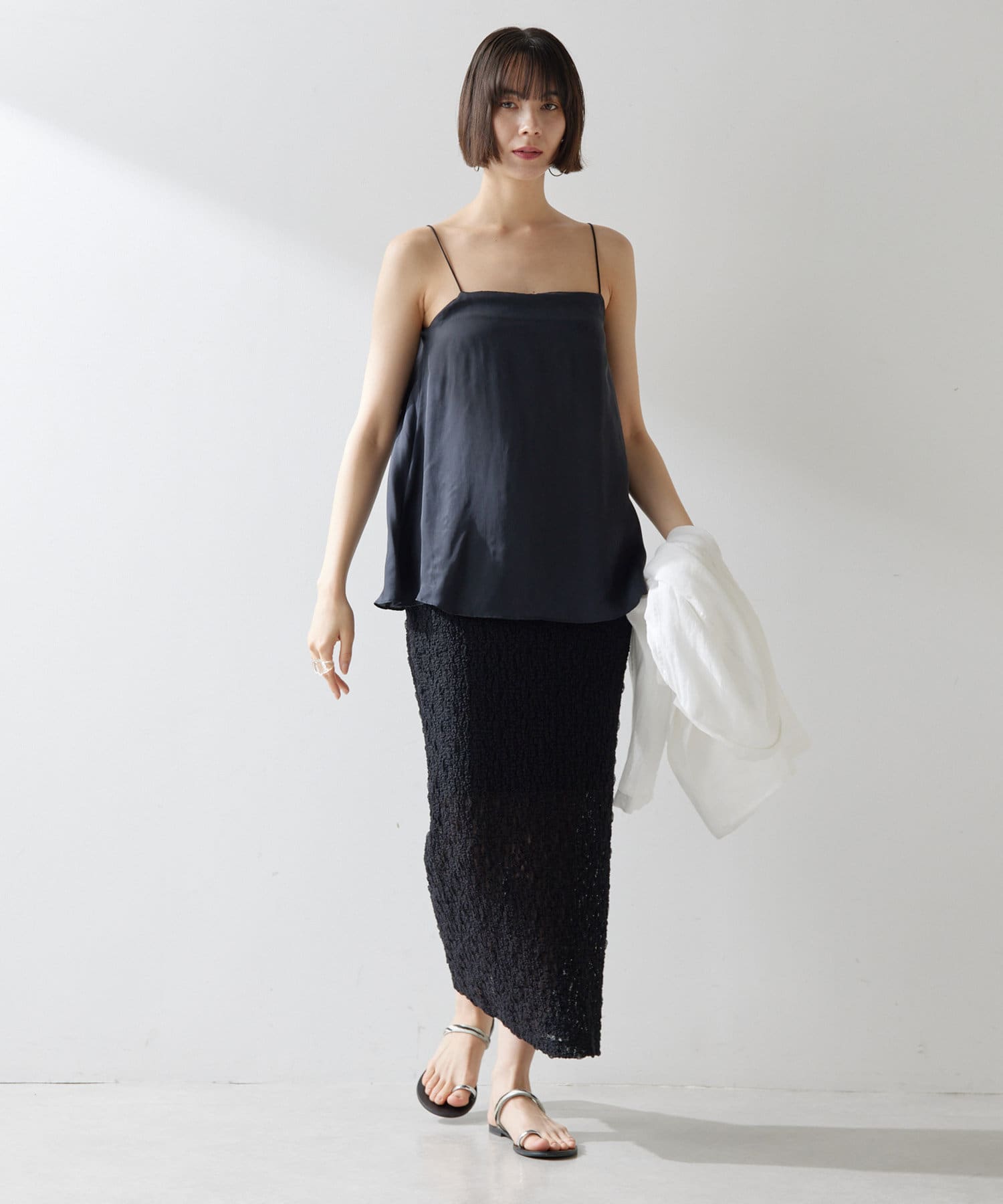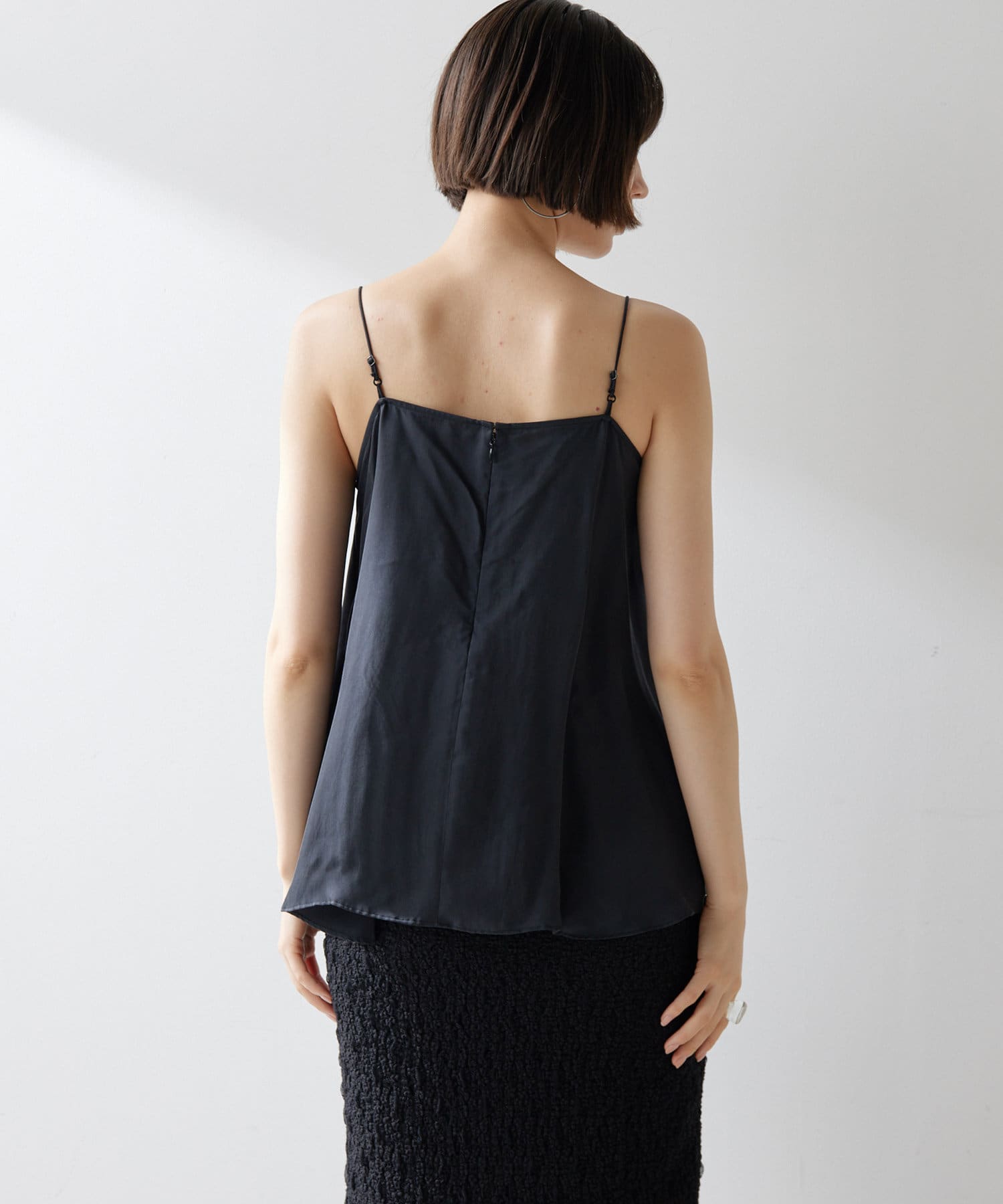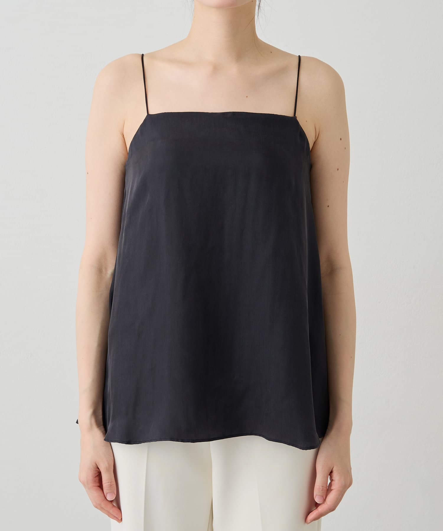 一枚でもさらりと楽しめる、パッド付サテンキャミ