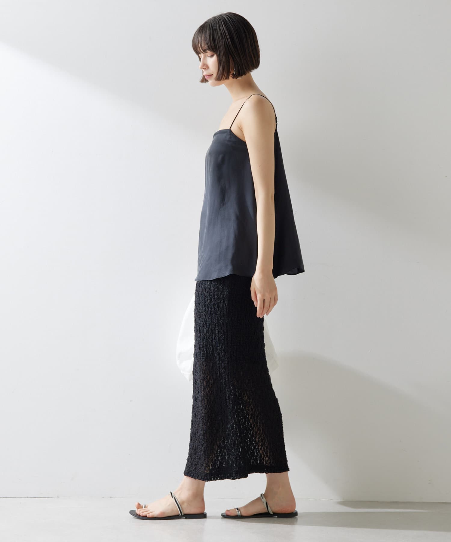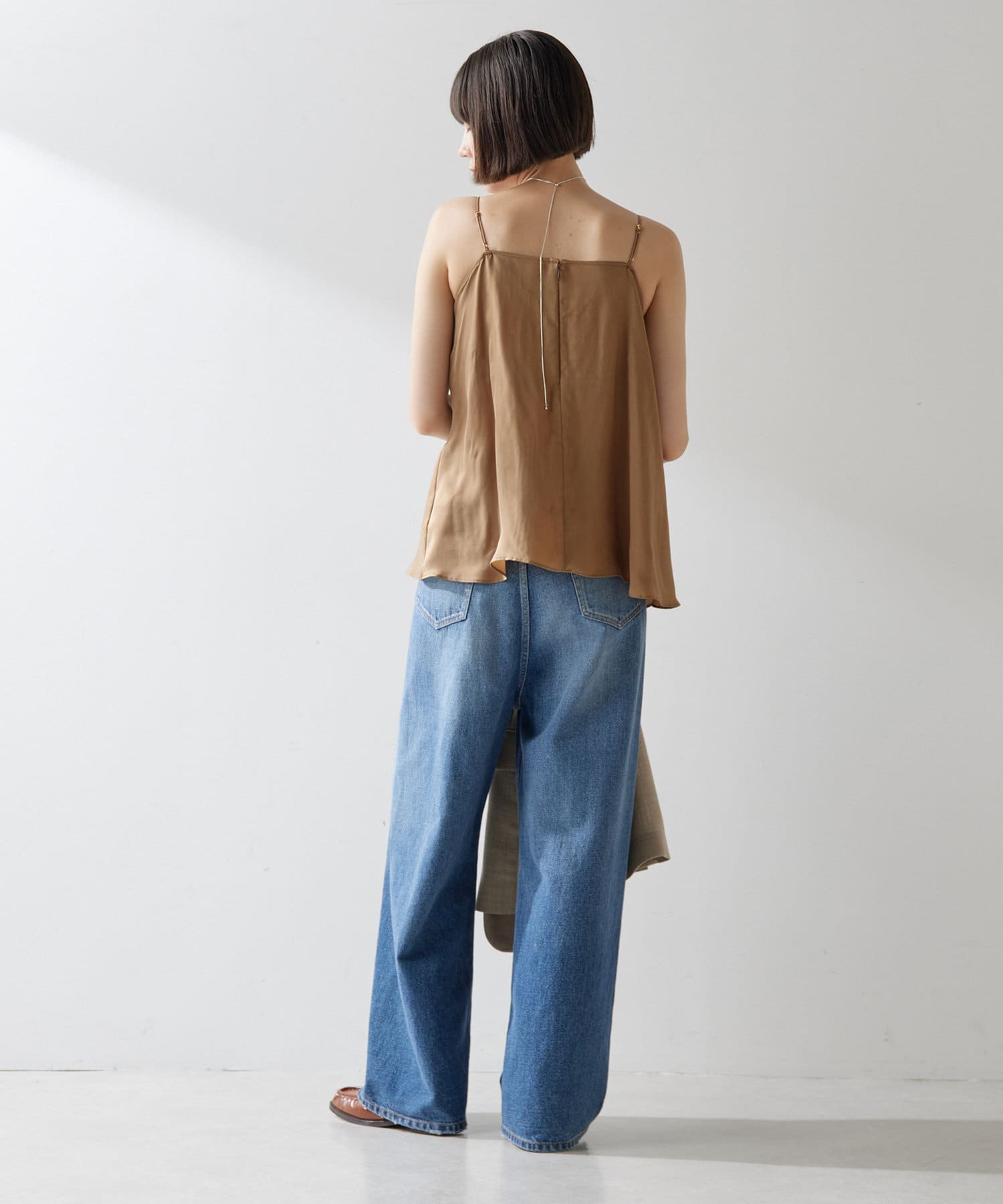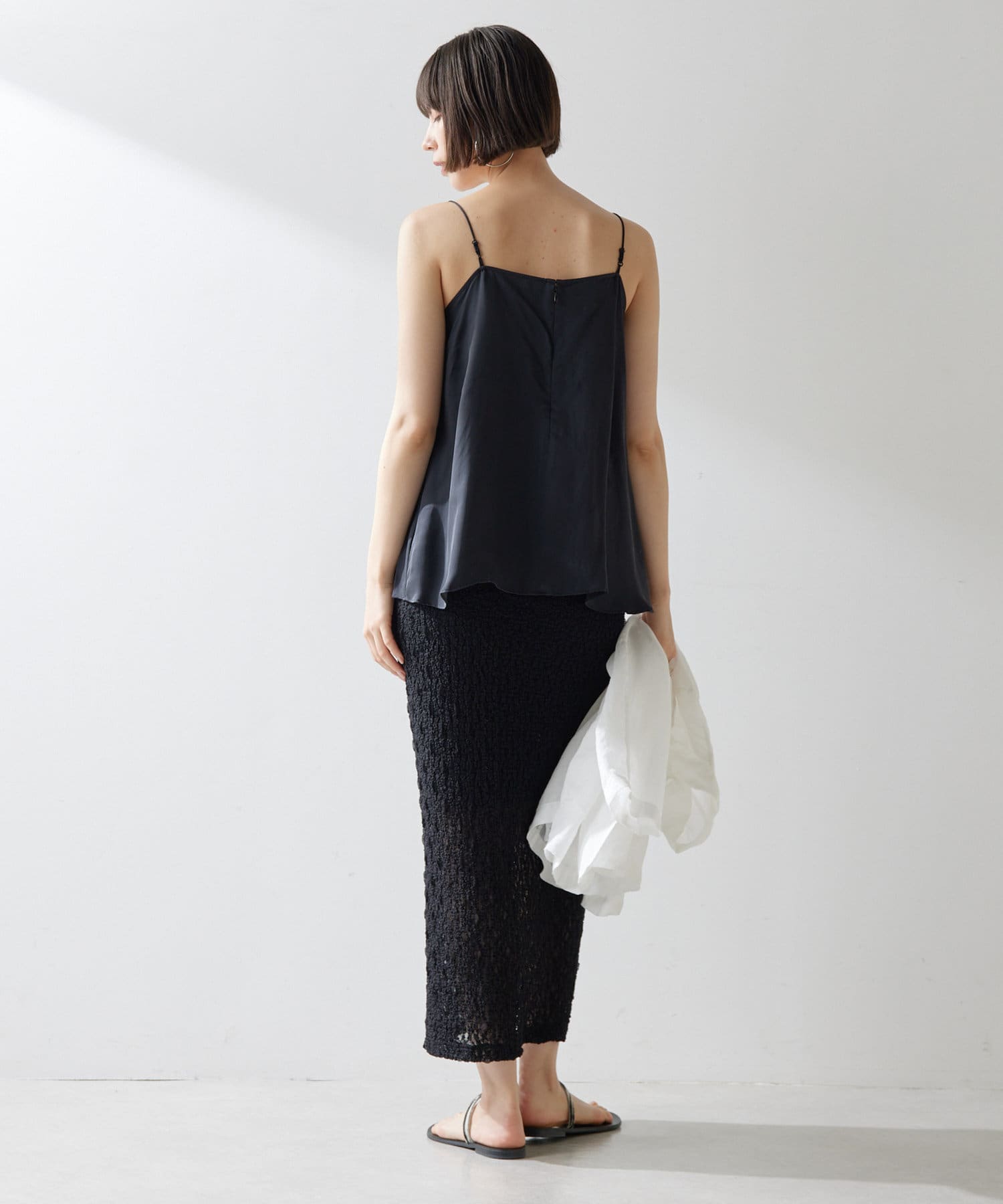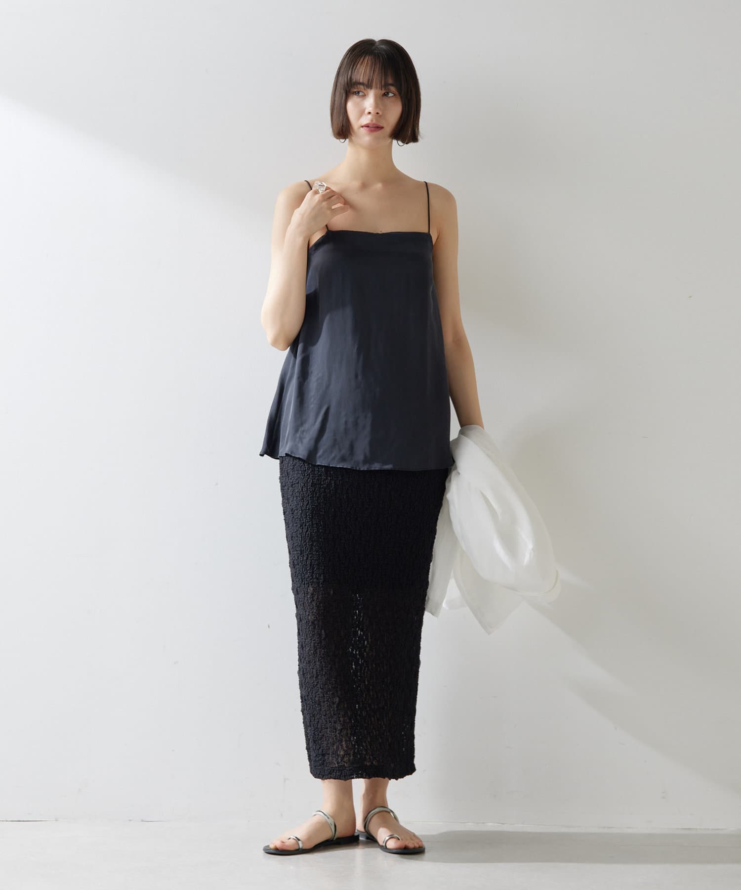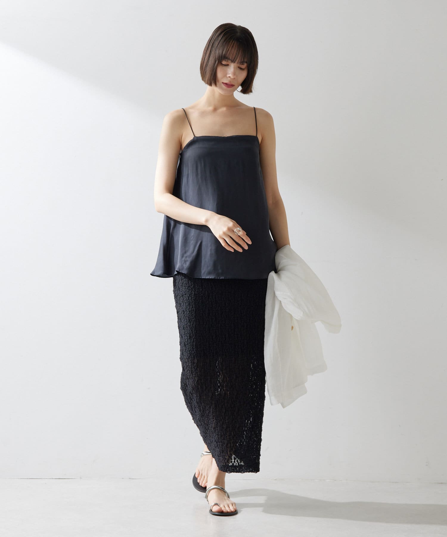 一枚でもさらりと楽しめる、パッド付サテンキャミ