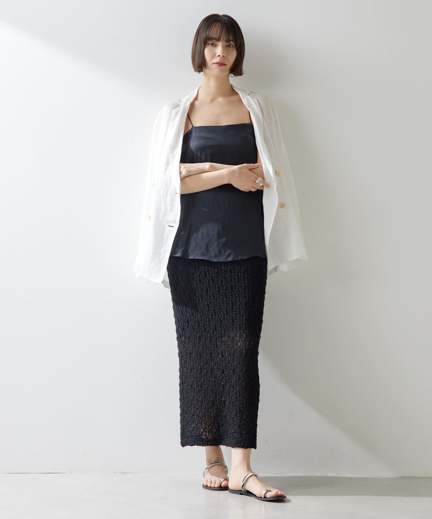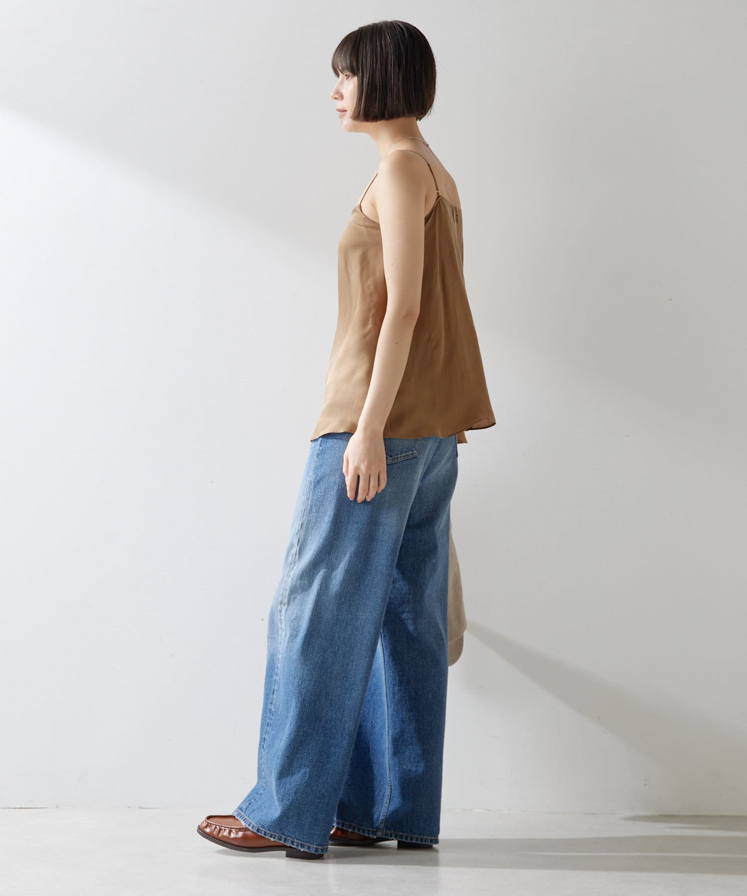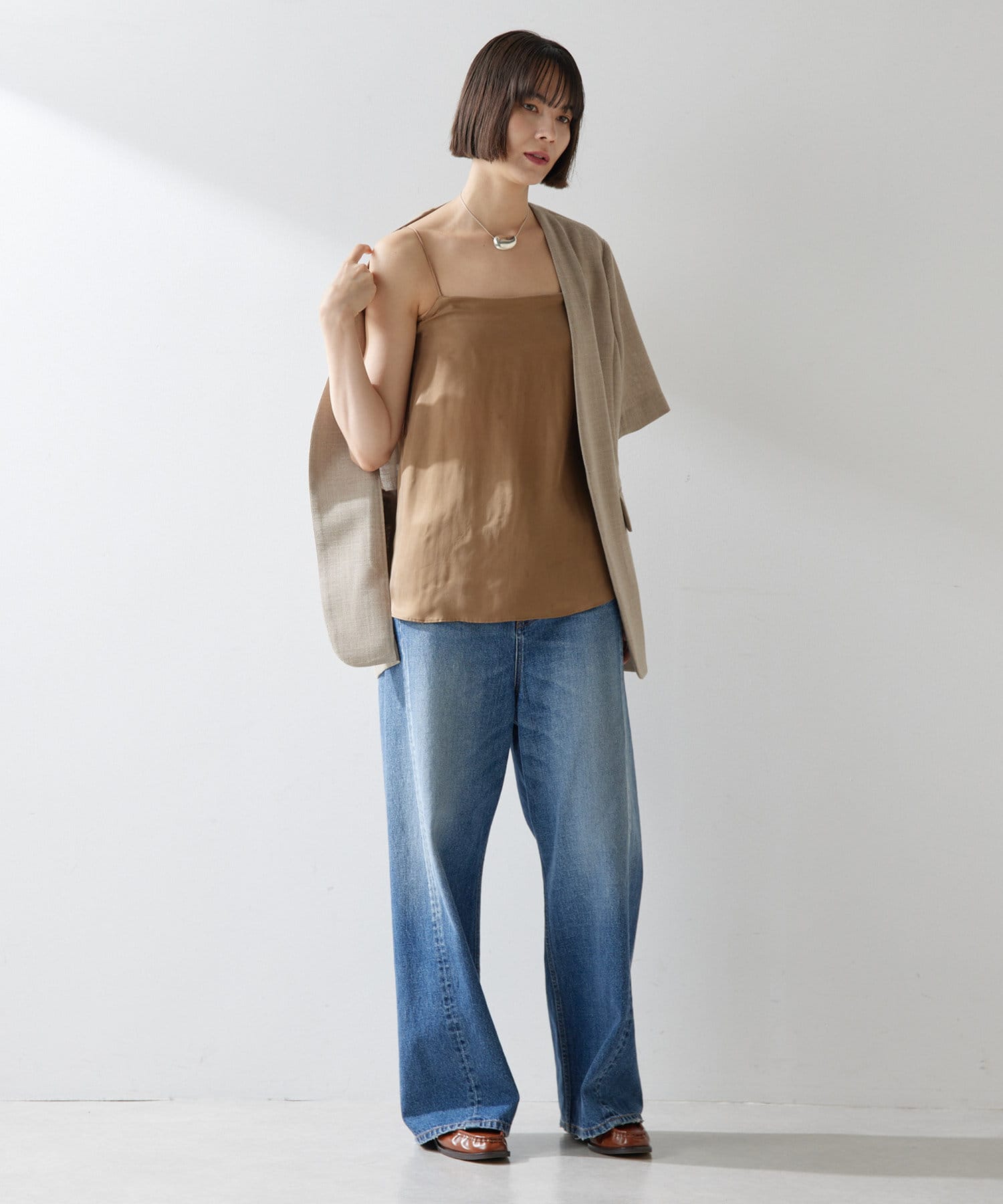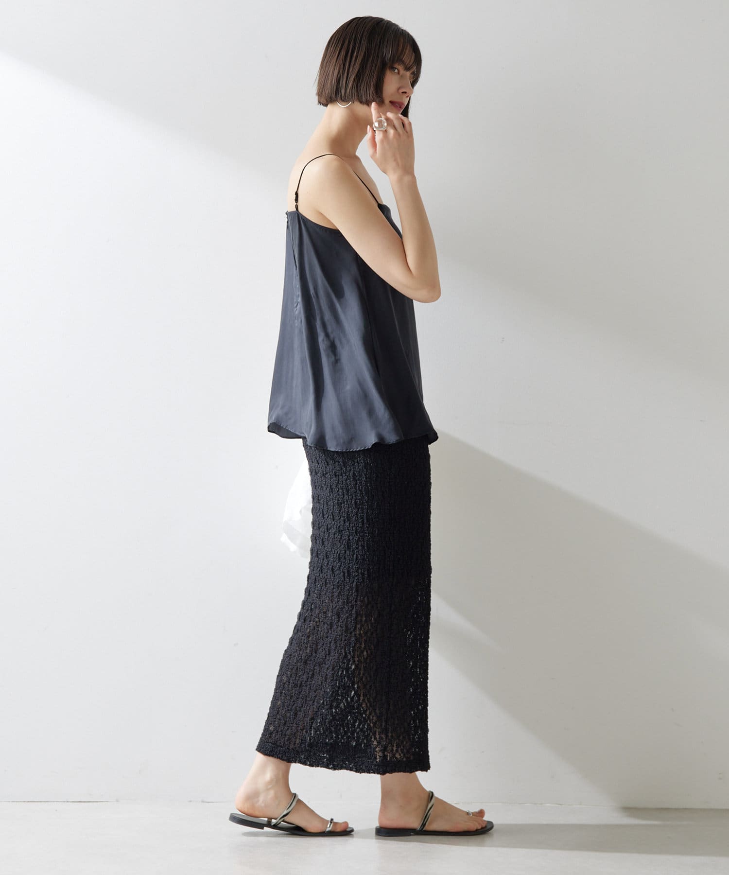 一枚でもさらりと楽しめる、パッド付サテンキャミ