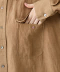 あえて綺麗めなヴィスコースリネンを顔料染めし、そこに製品加工を入れることにより綺麗めなのにヴィンテージな風合いを楽しめる素材。
