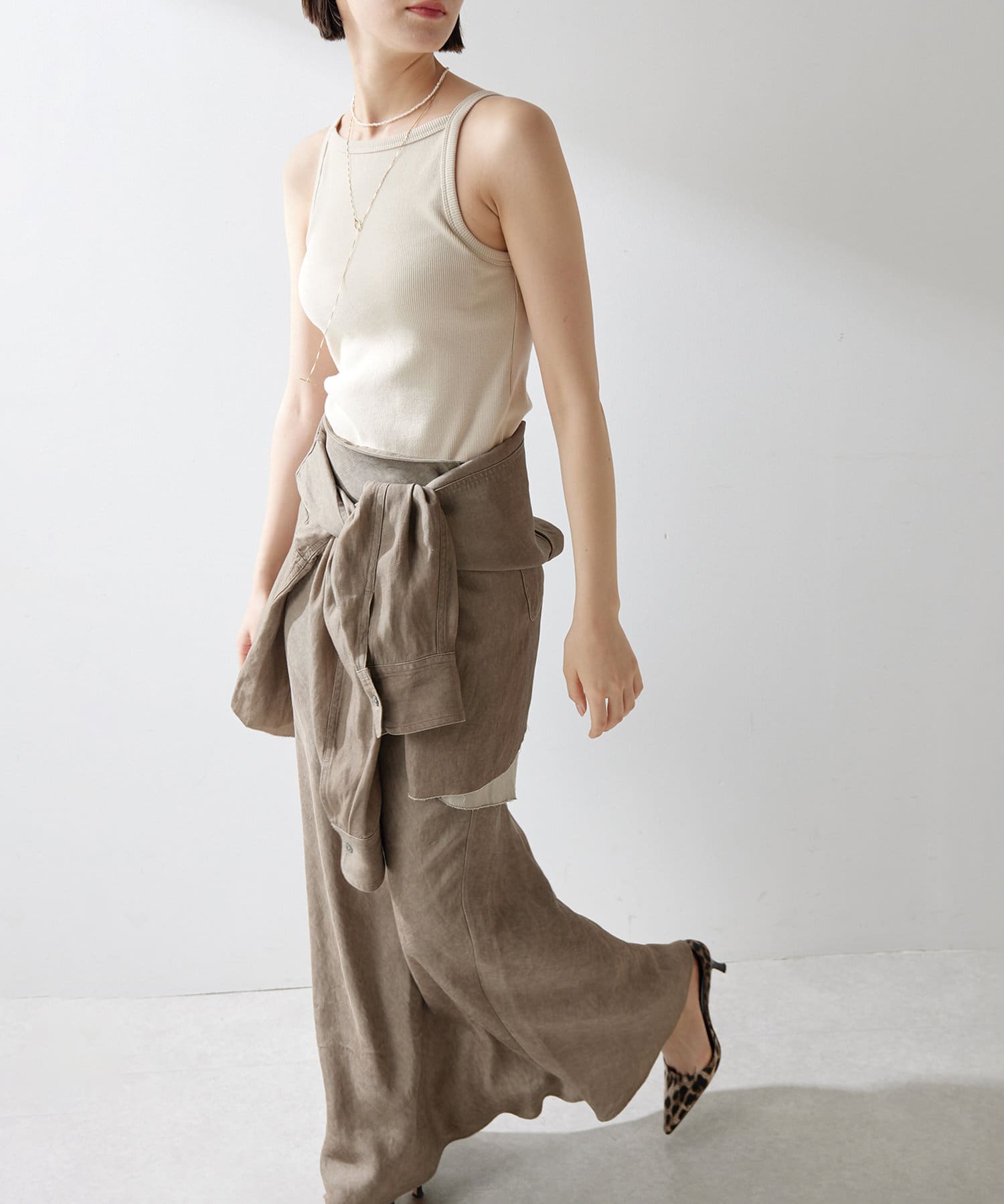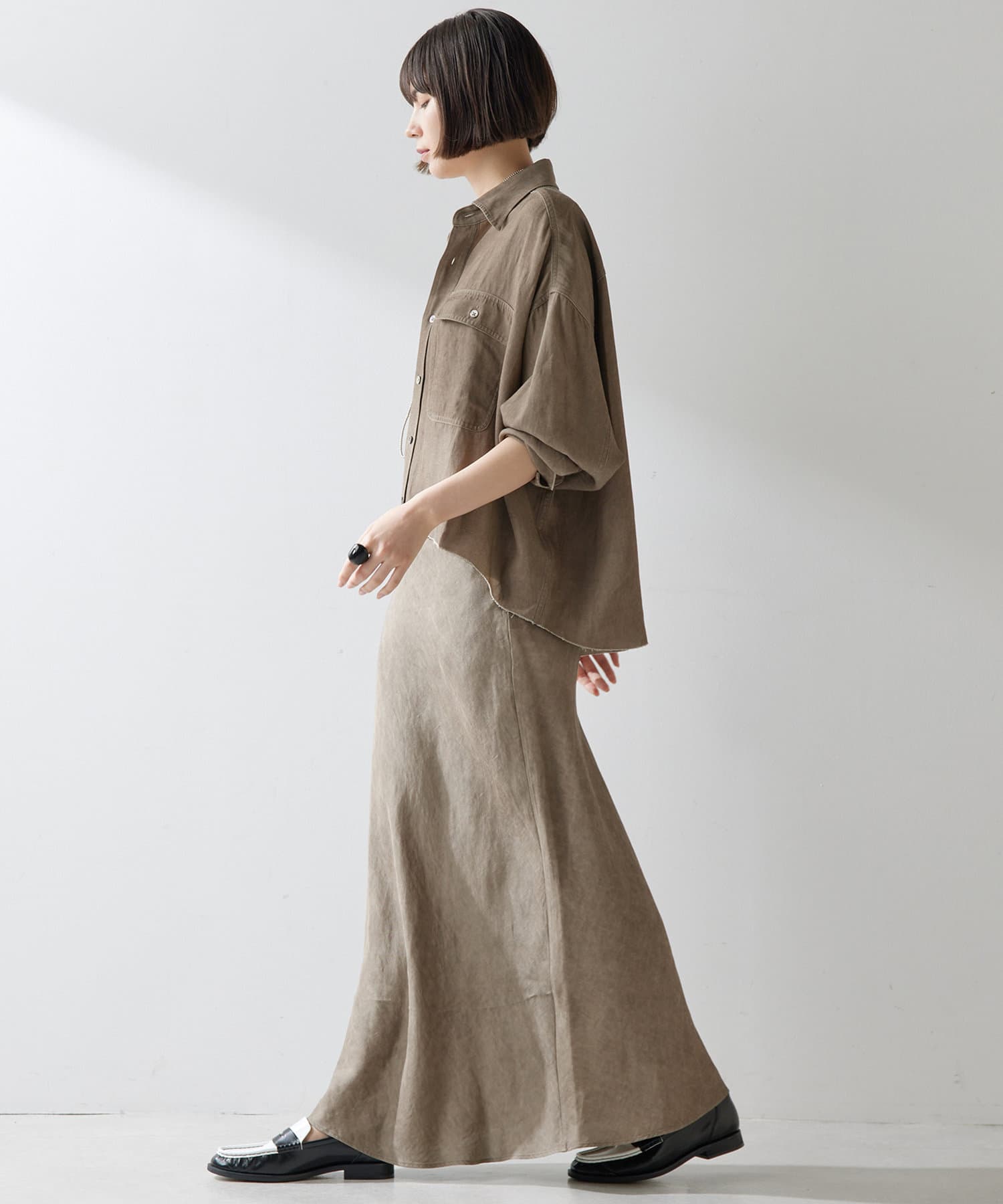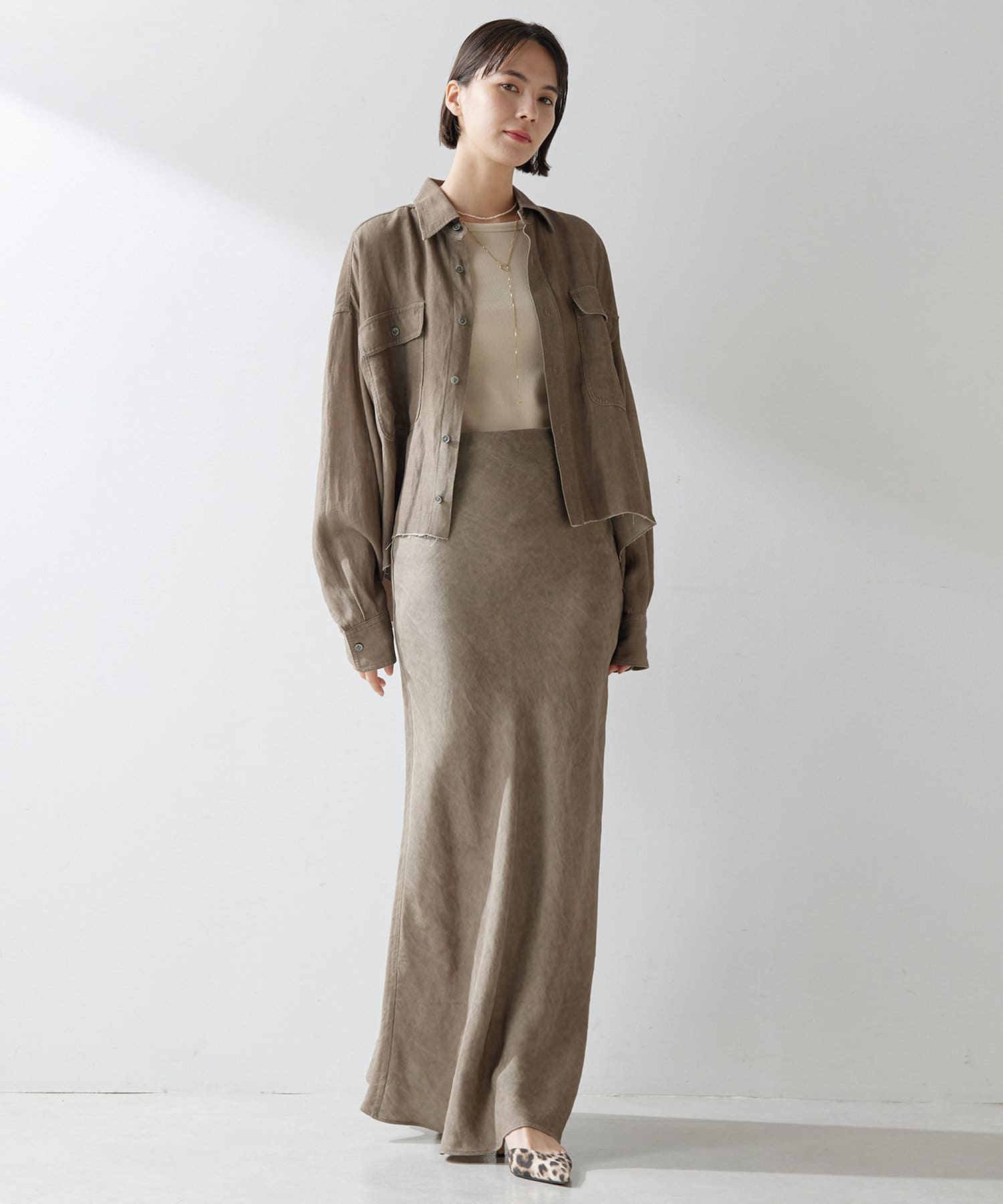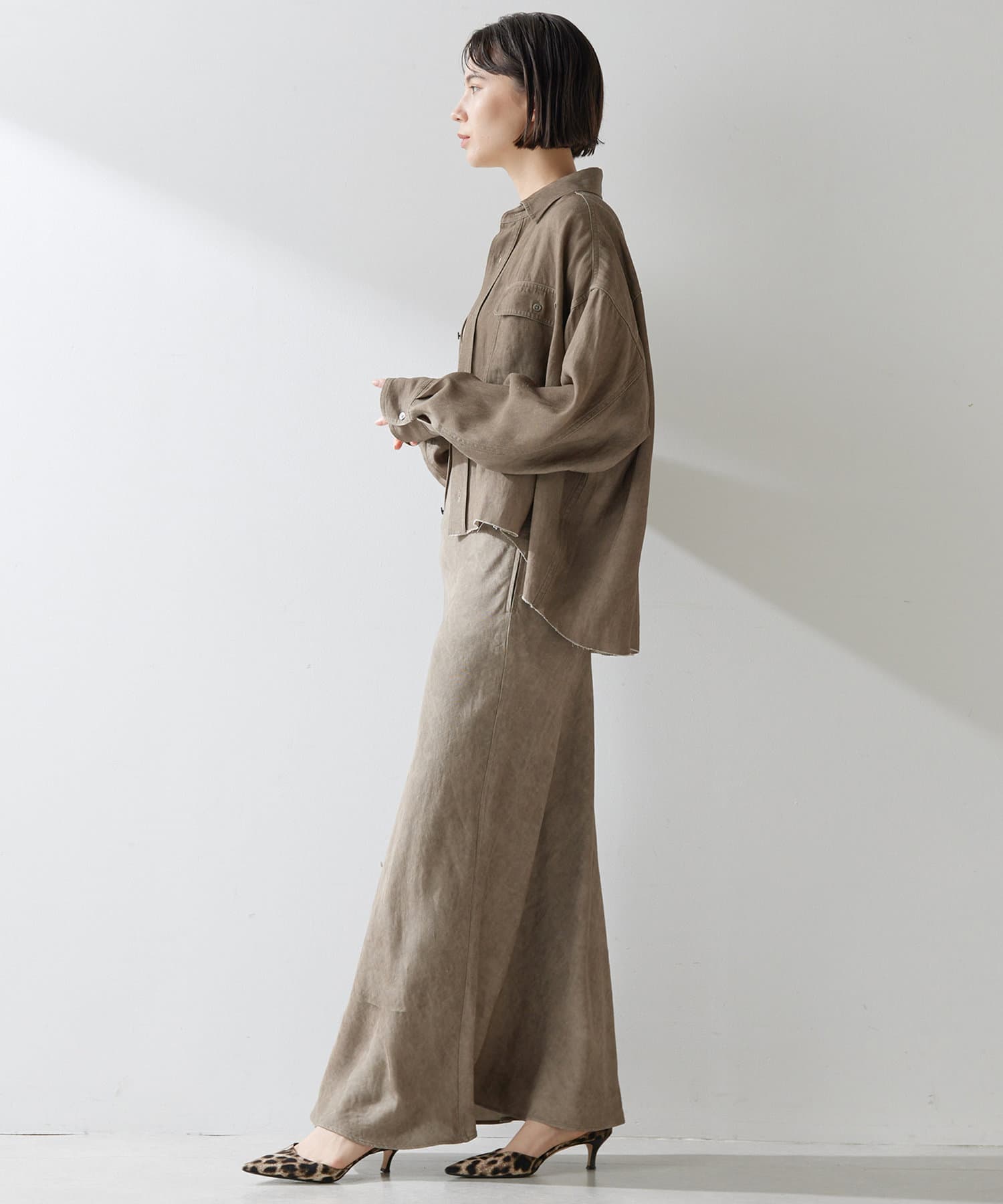 ■落ち感のある生地にあえて加工を加えることで、エレガントさの中にカジュアル感もある雰囲気が魅力。