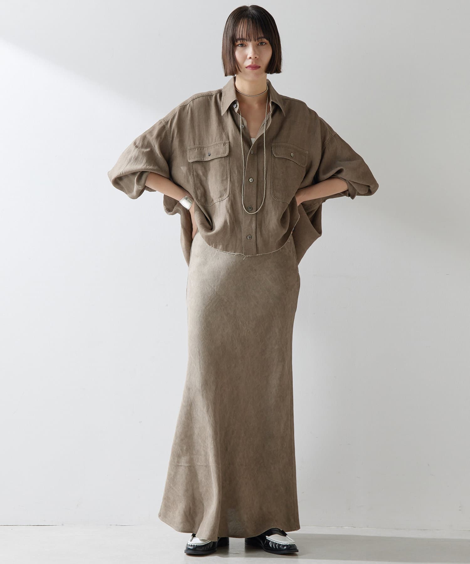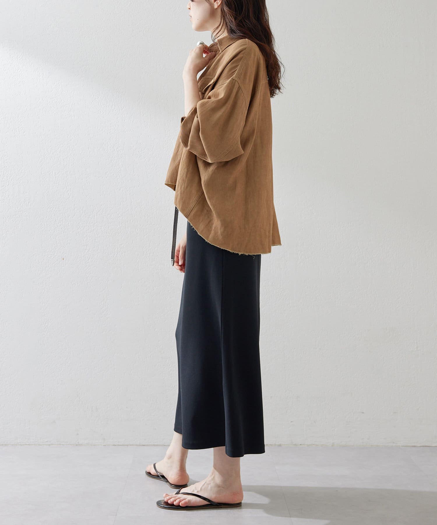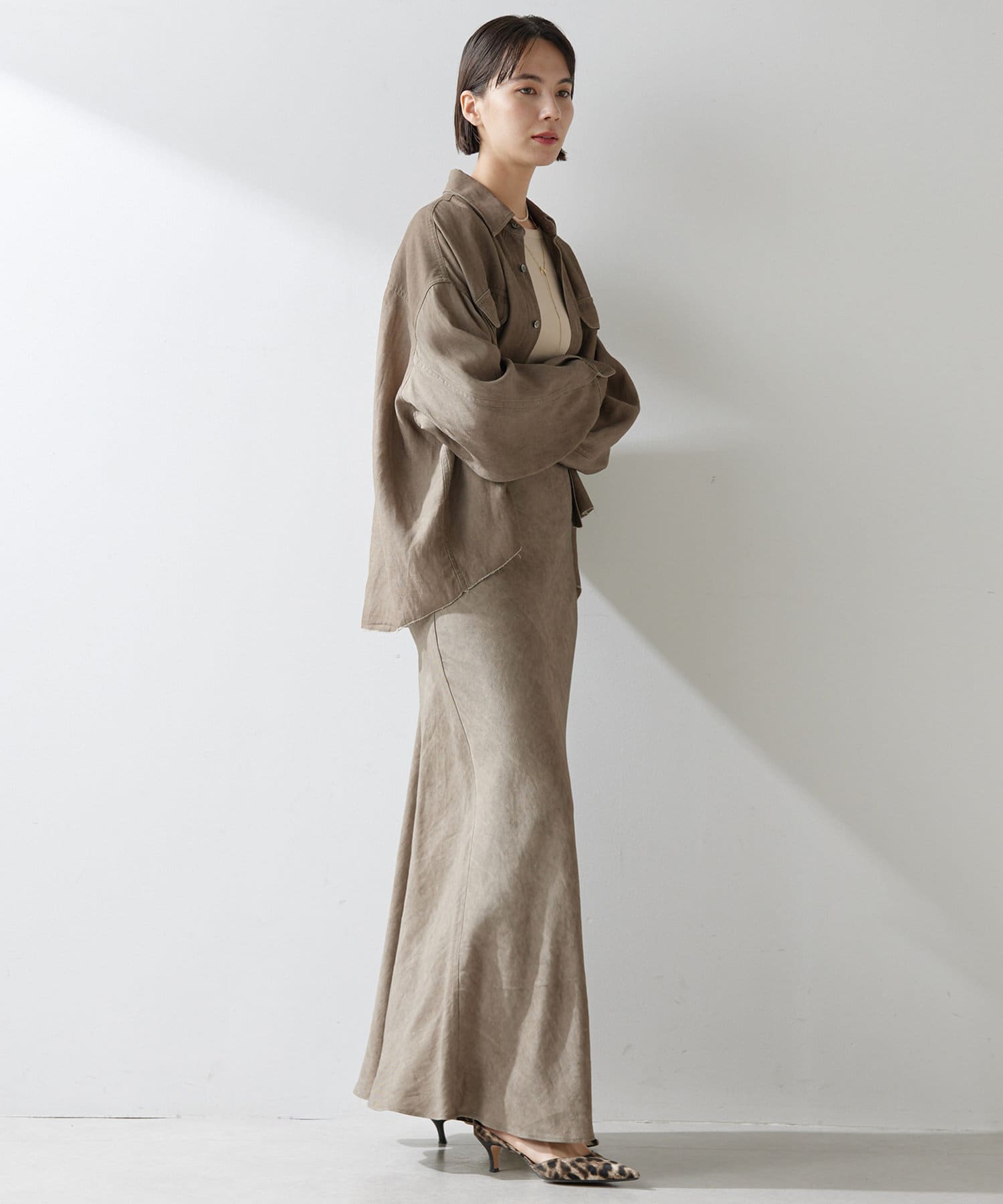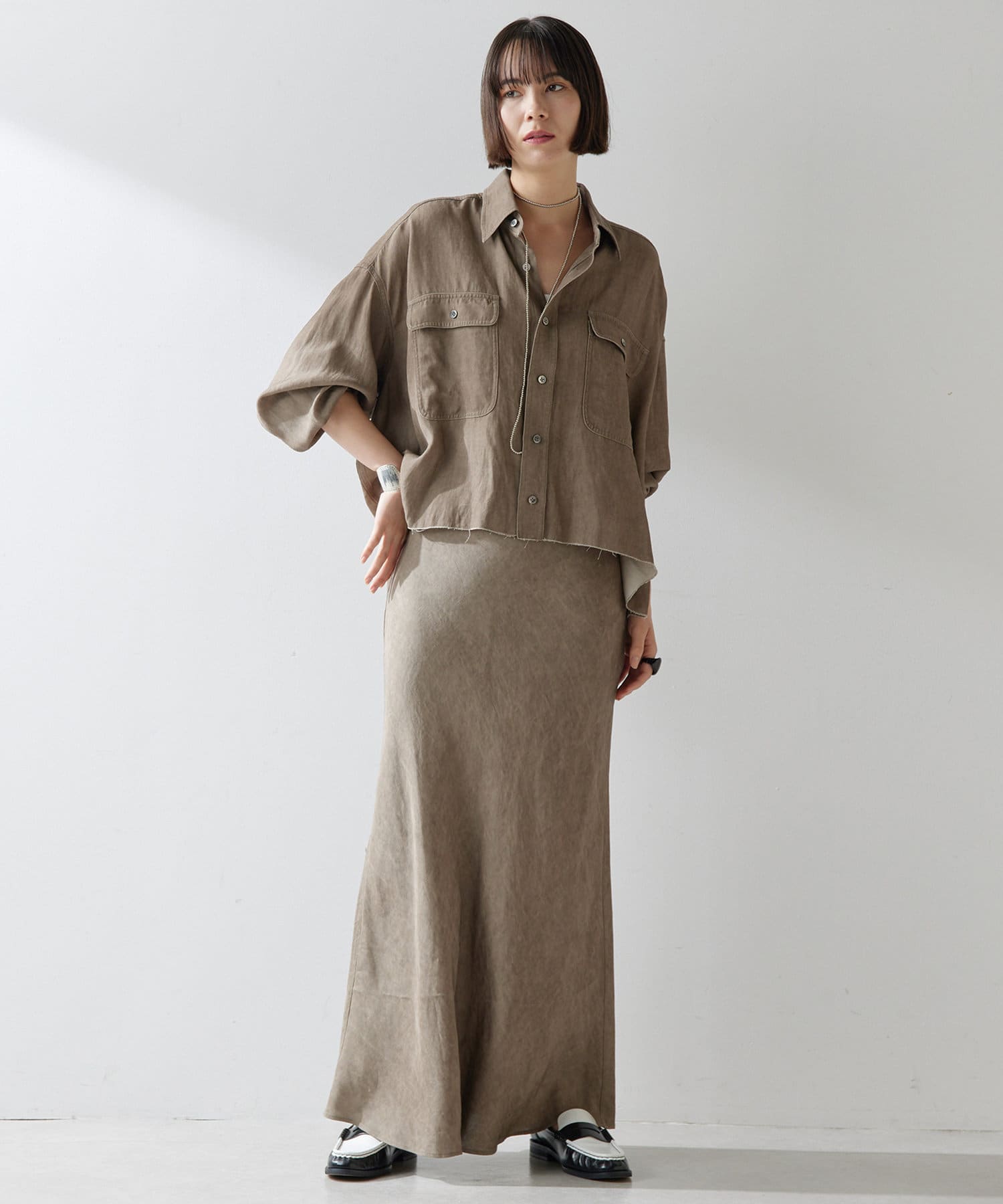 ■落ち感のある生地にあえて加工を加えることで、エレガントさの中にカジュアル感もある雰囲気が魅力。