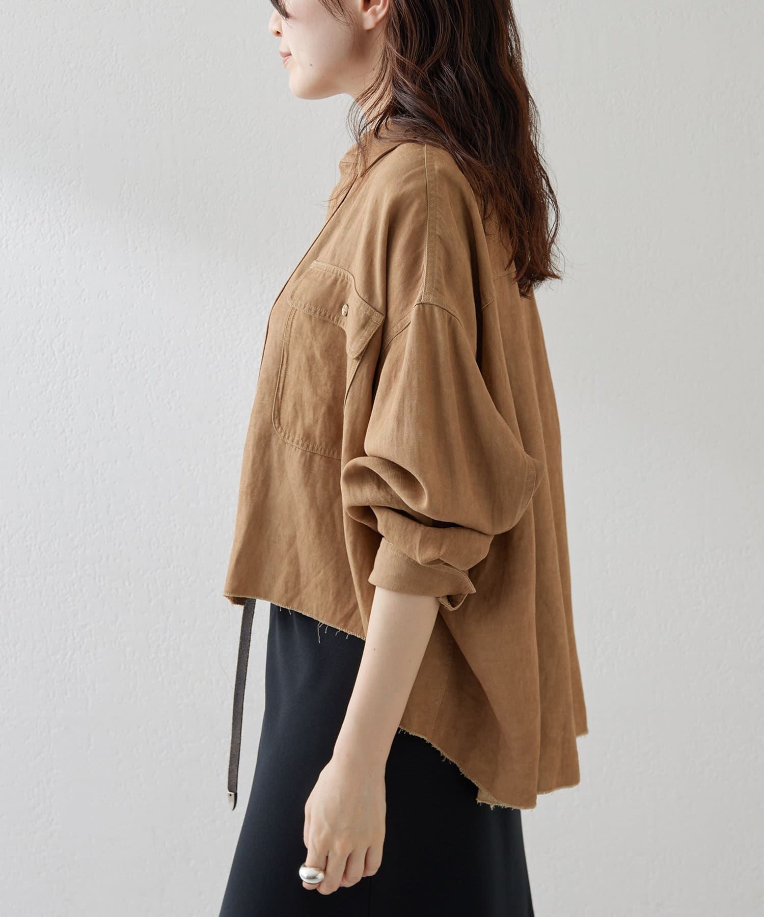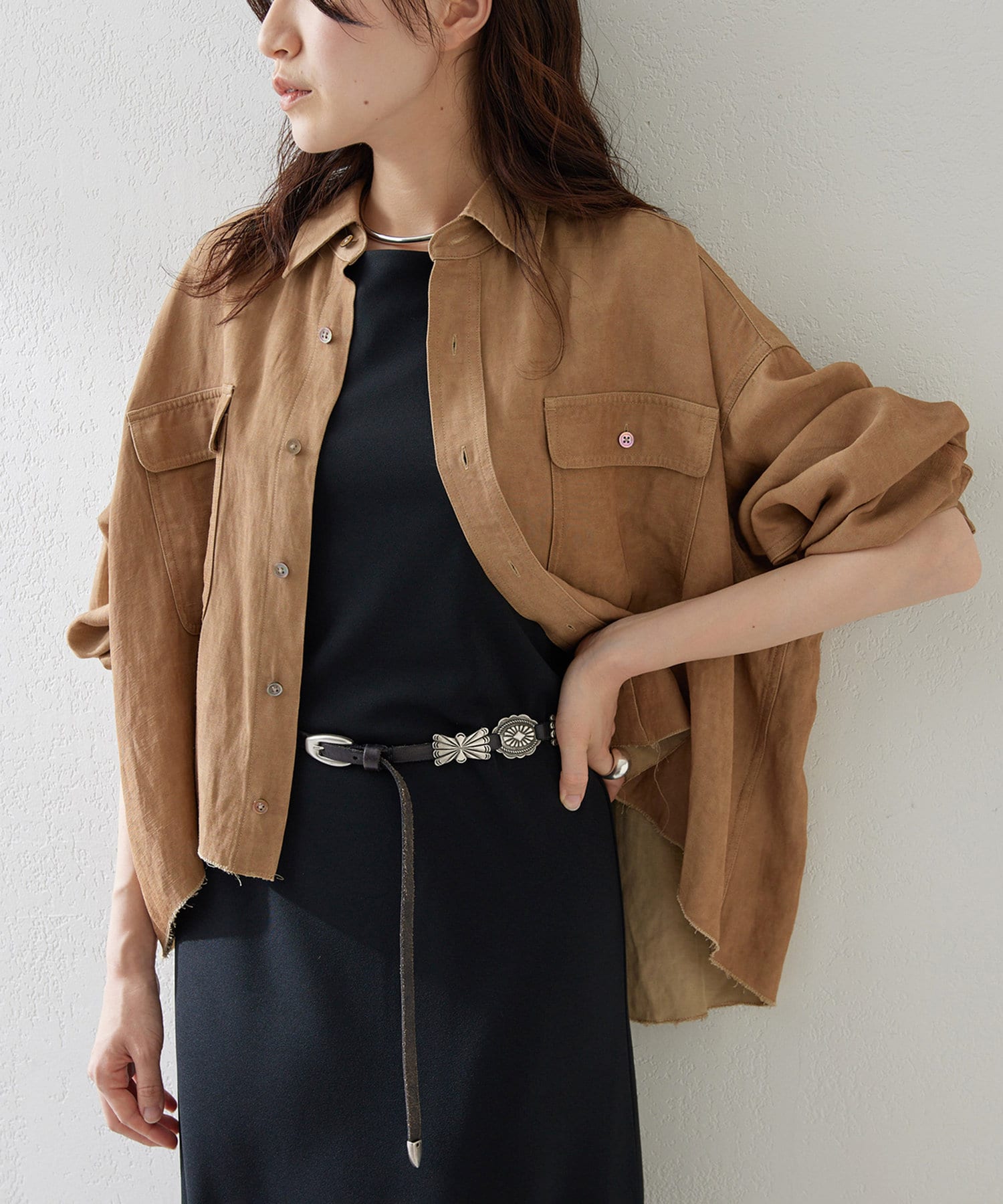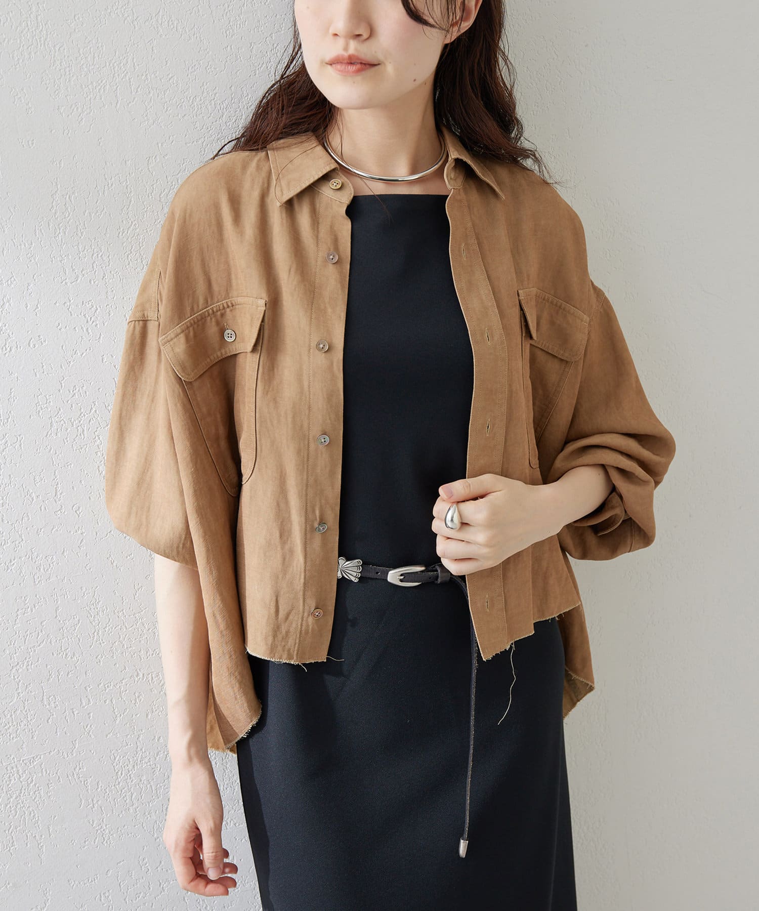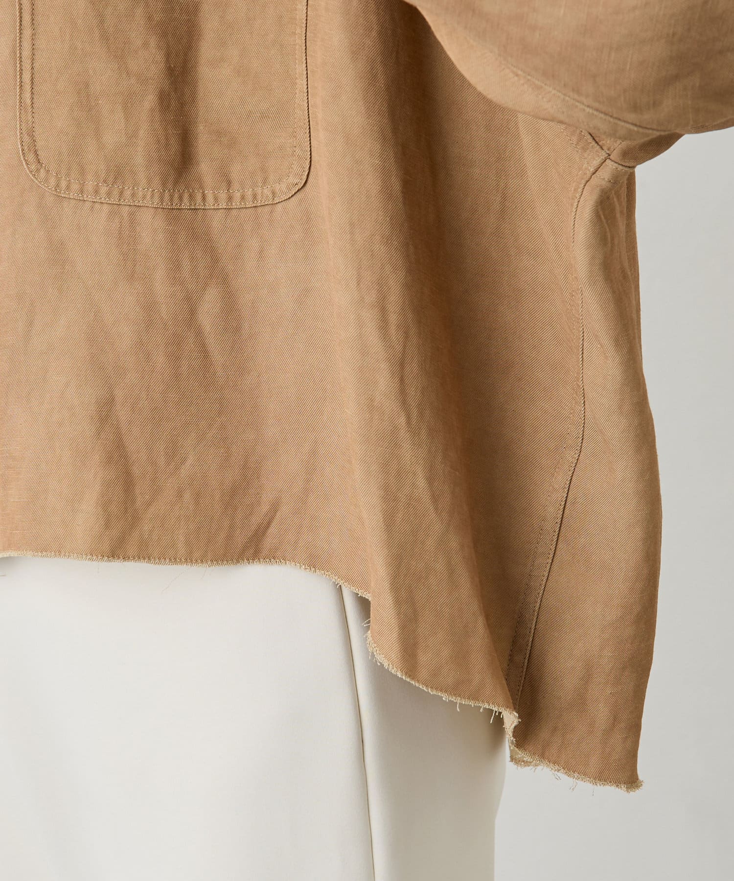 ■裾を断ち切りにする事によりヴィンテージな雰囲気を出し、後ろは着丈を少し長めにすることで好バランスに。
