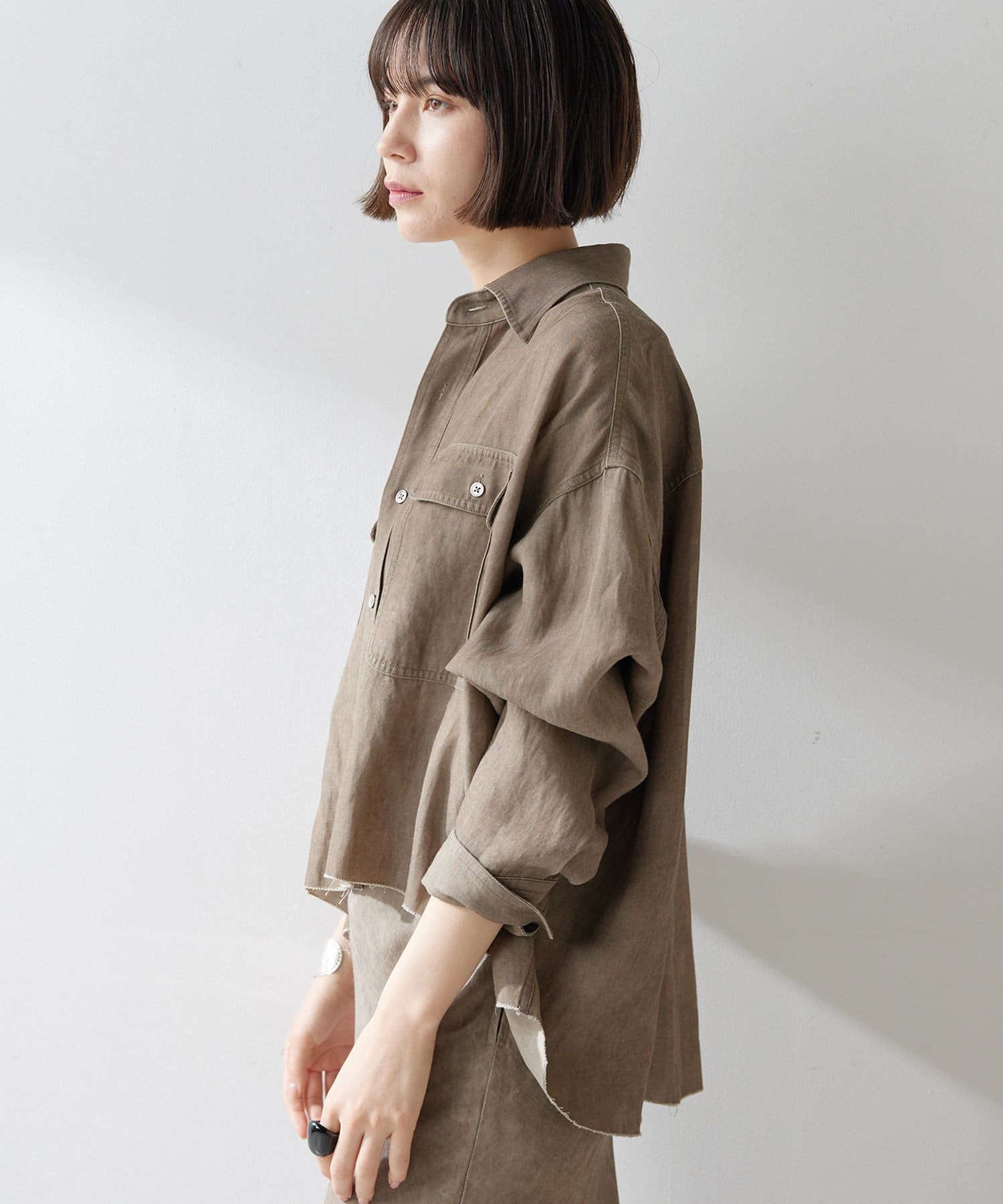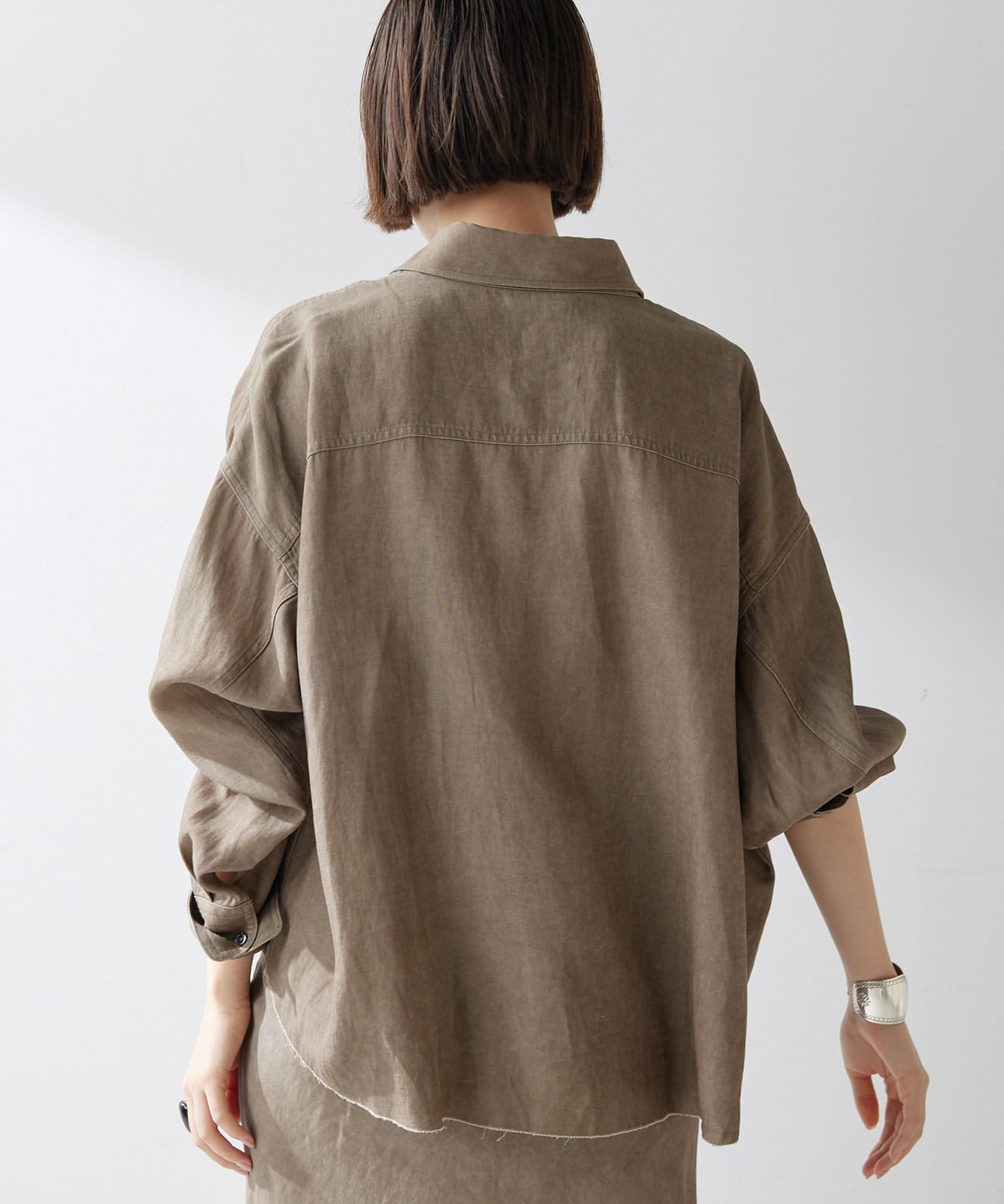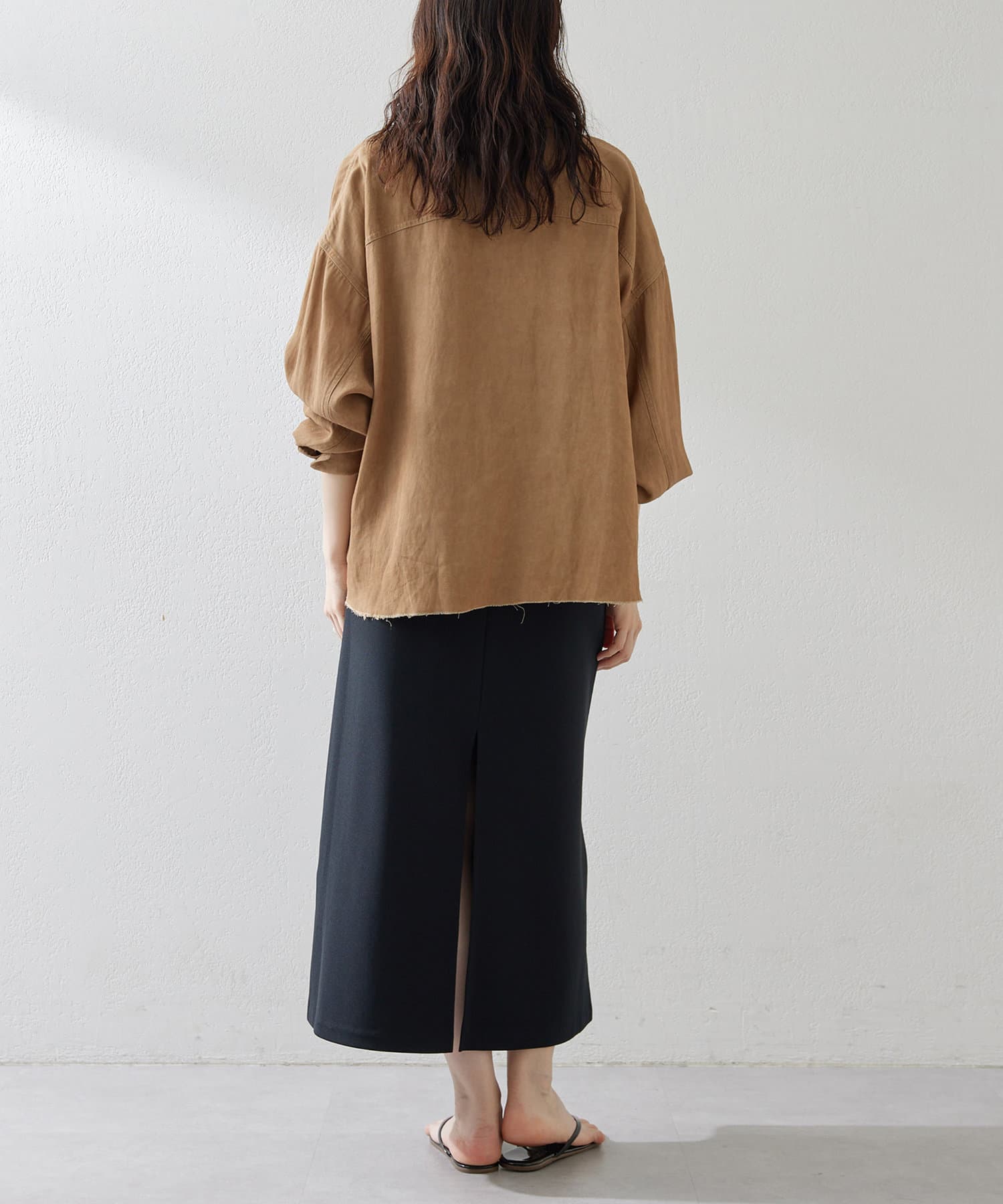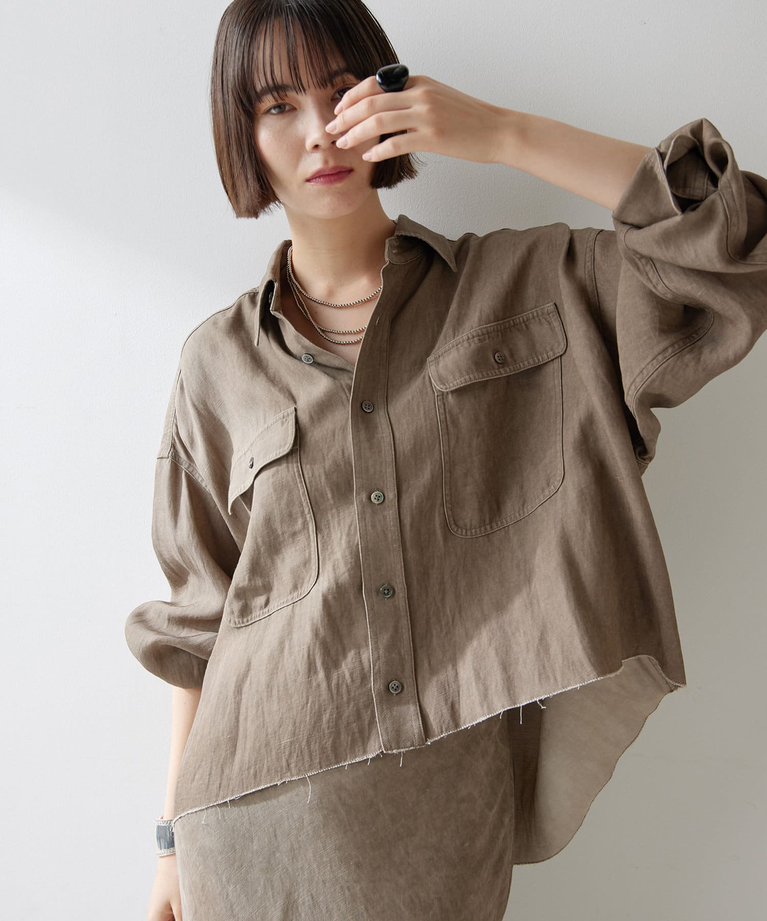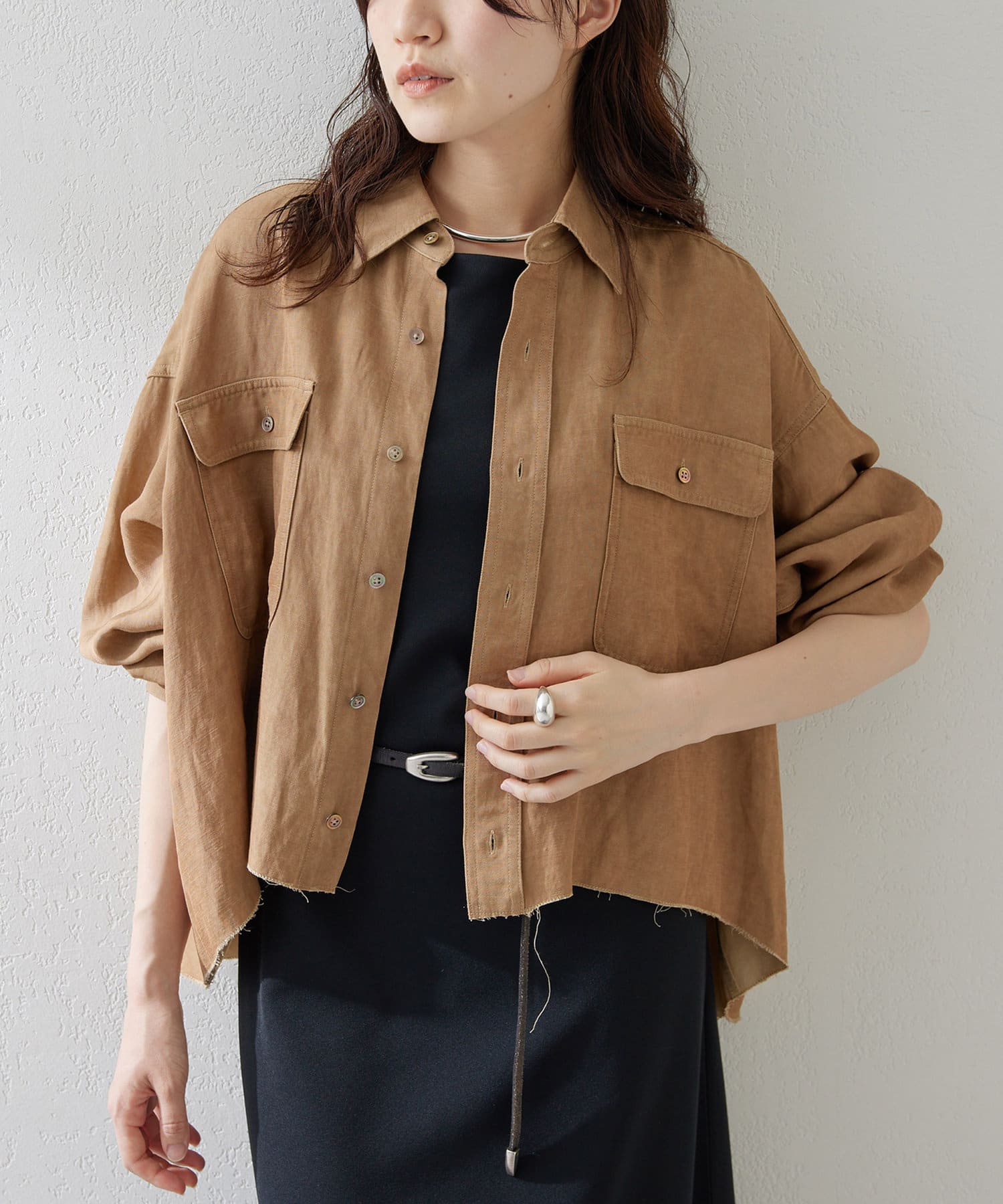 ■裾を断ち切りにする事によりヴィンテージな雰囲気を出し、後ろは着丈を少し長めにすることで好バランスに。