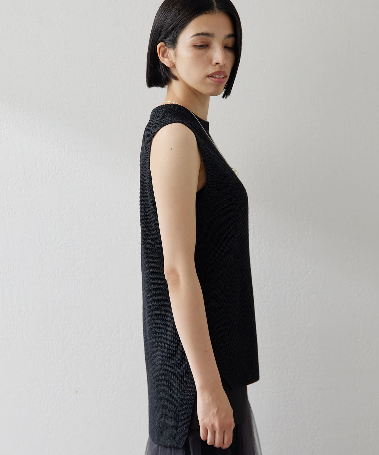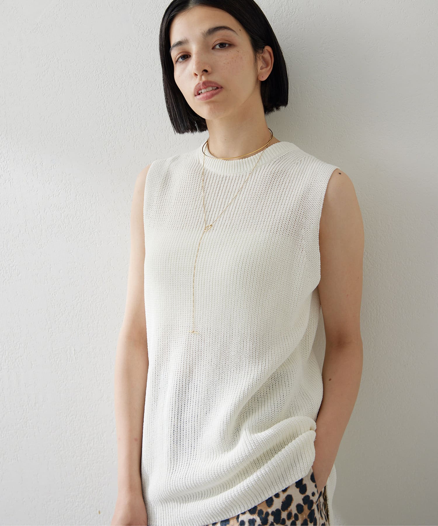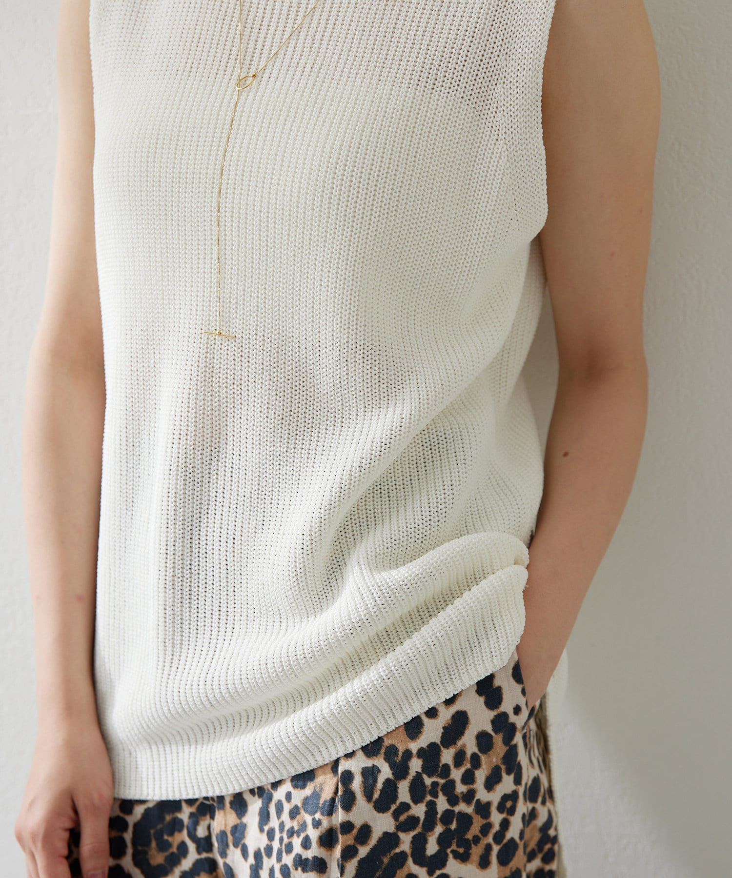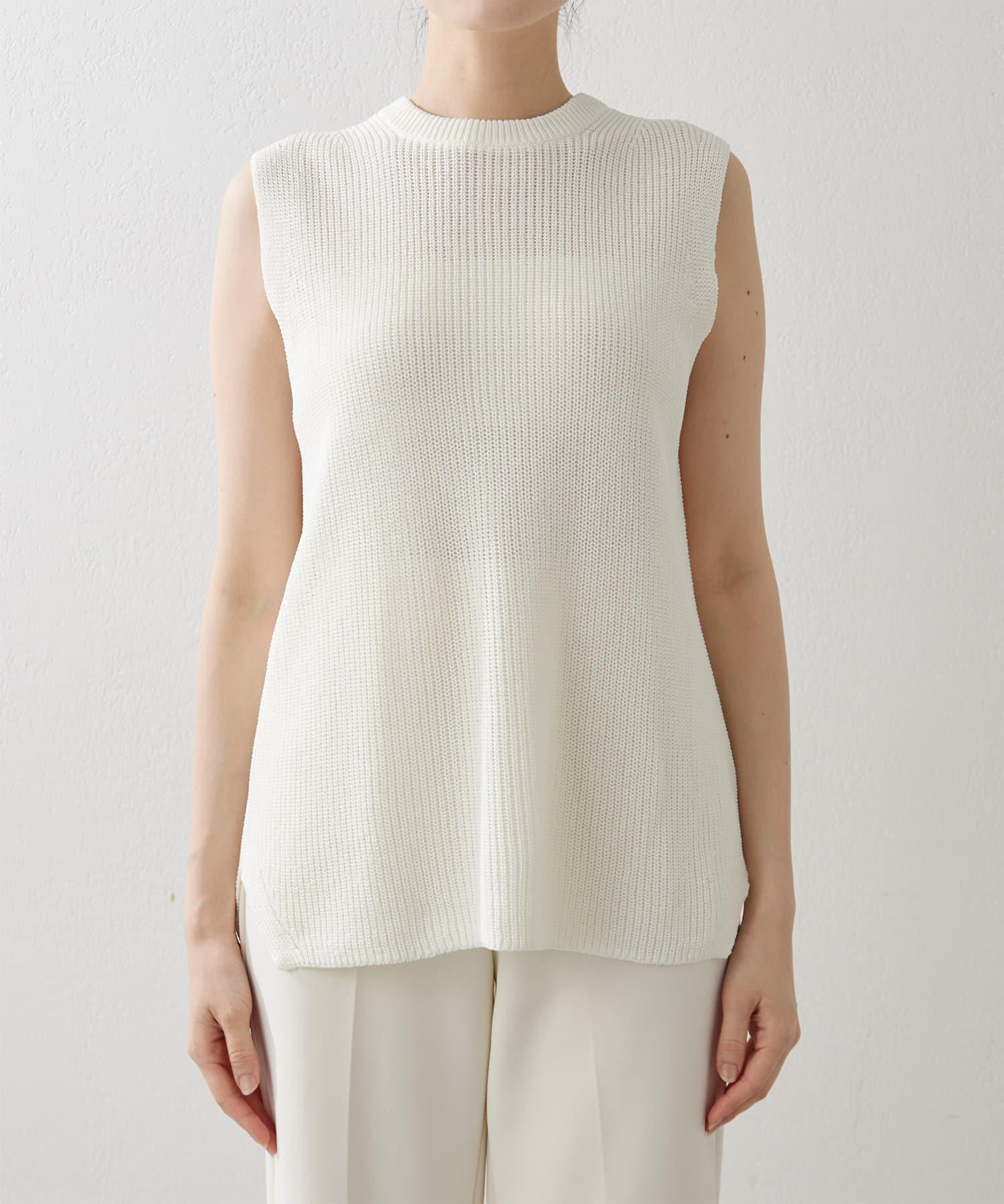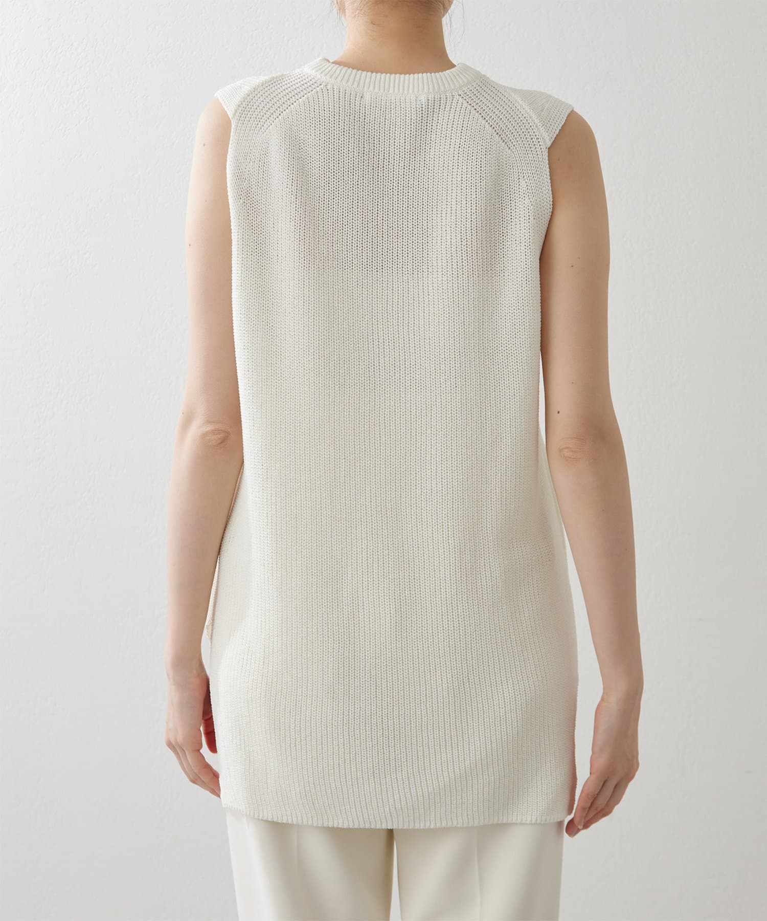 ■ローゲージで編まれたノースリーブニットプルオーバー。