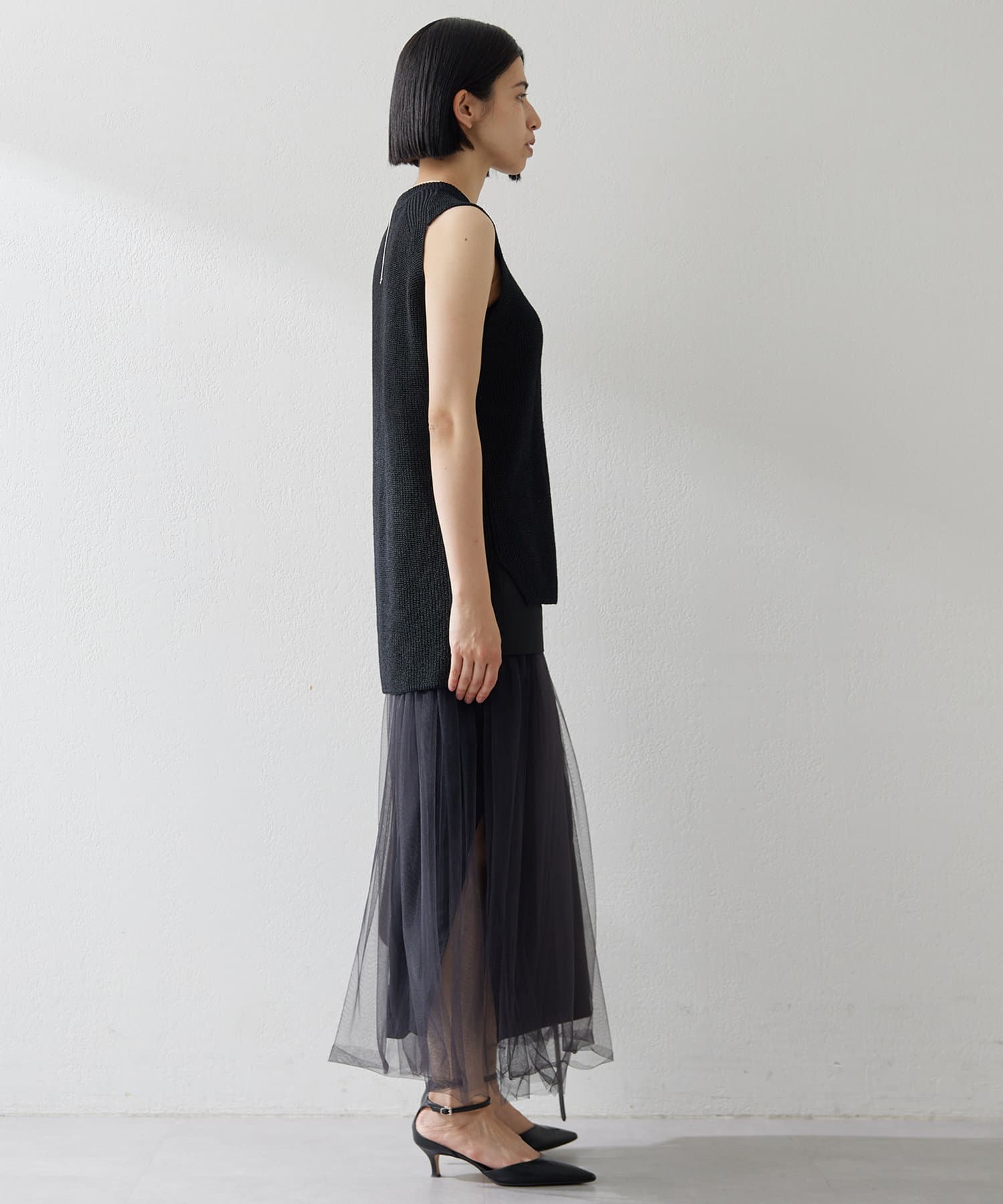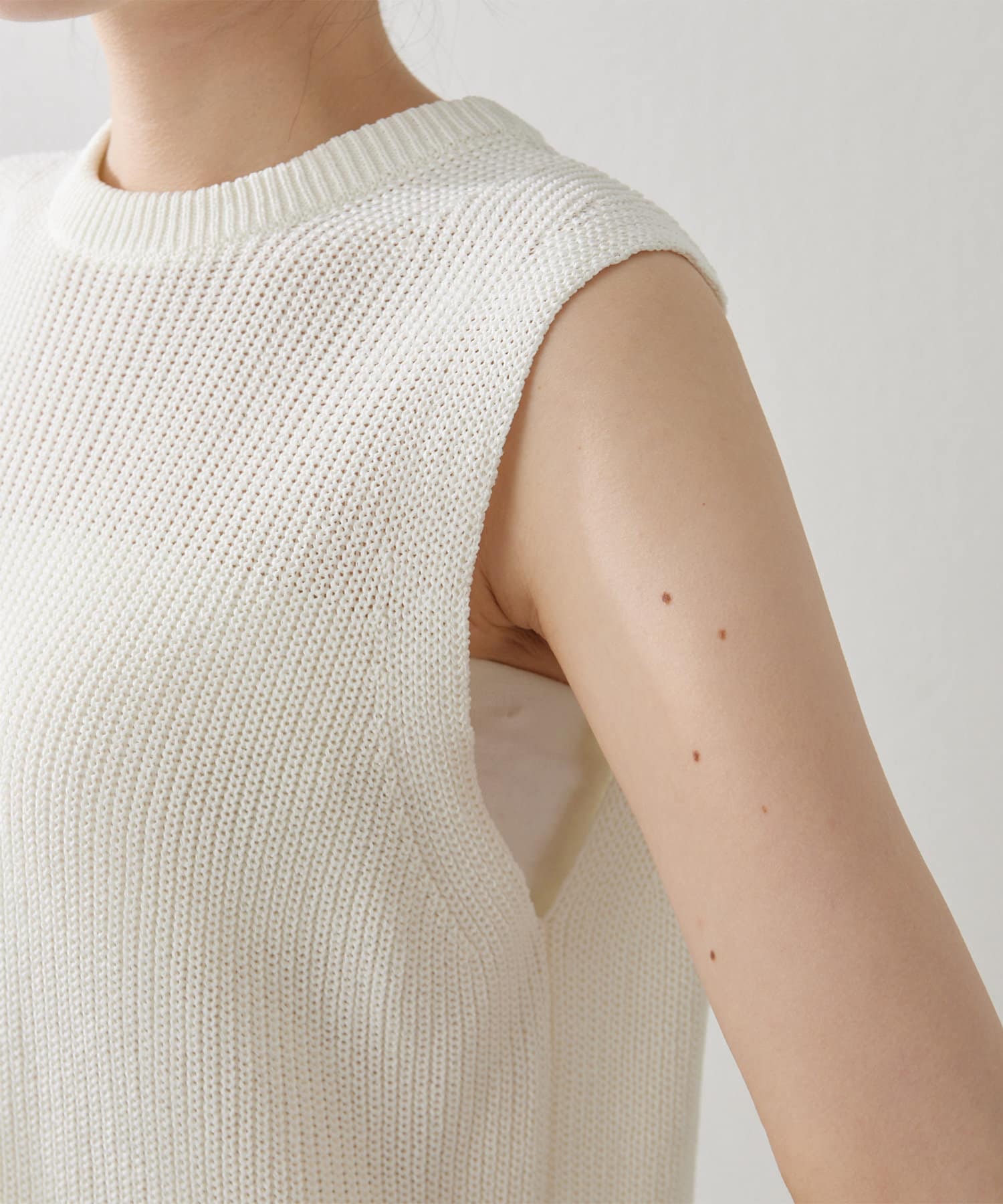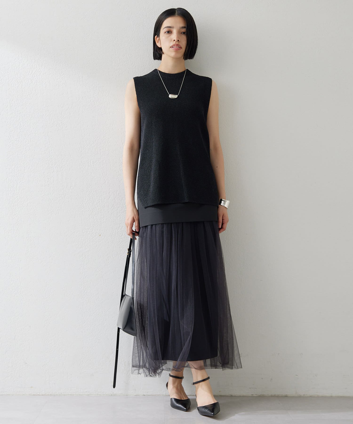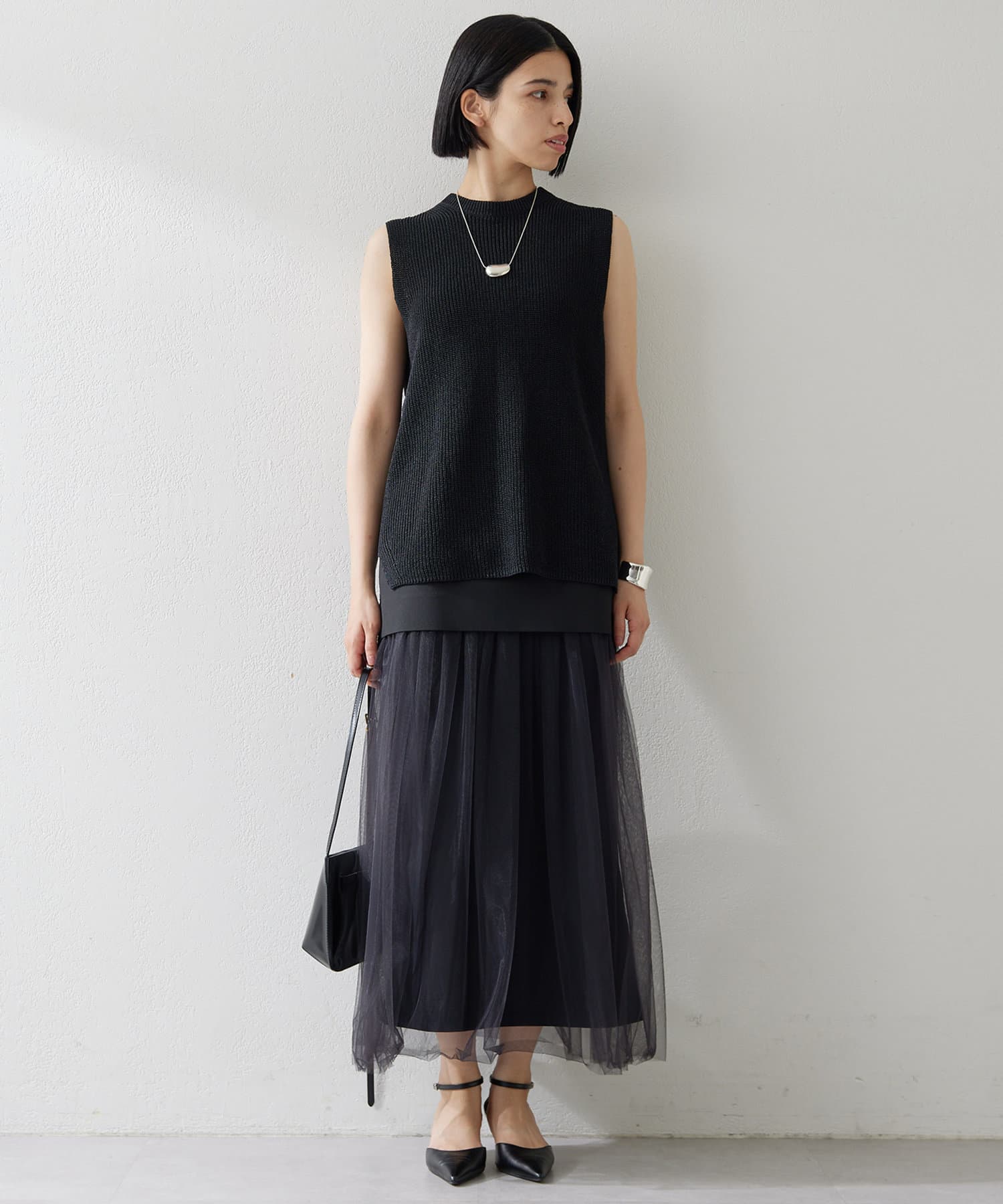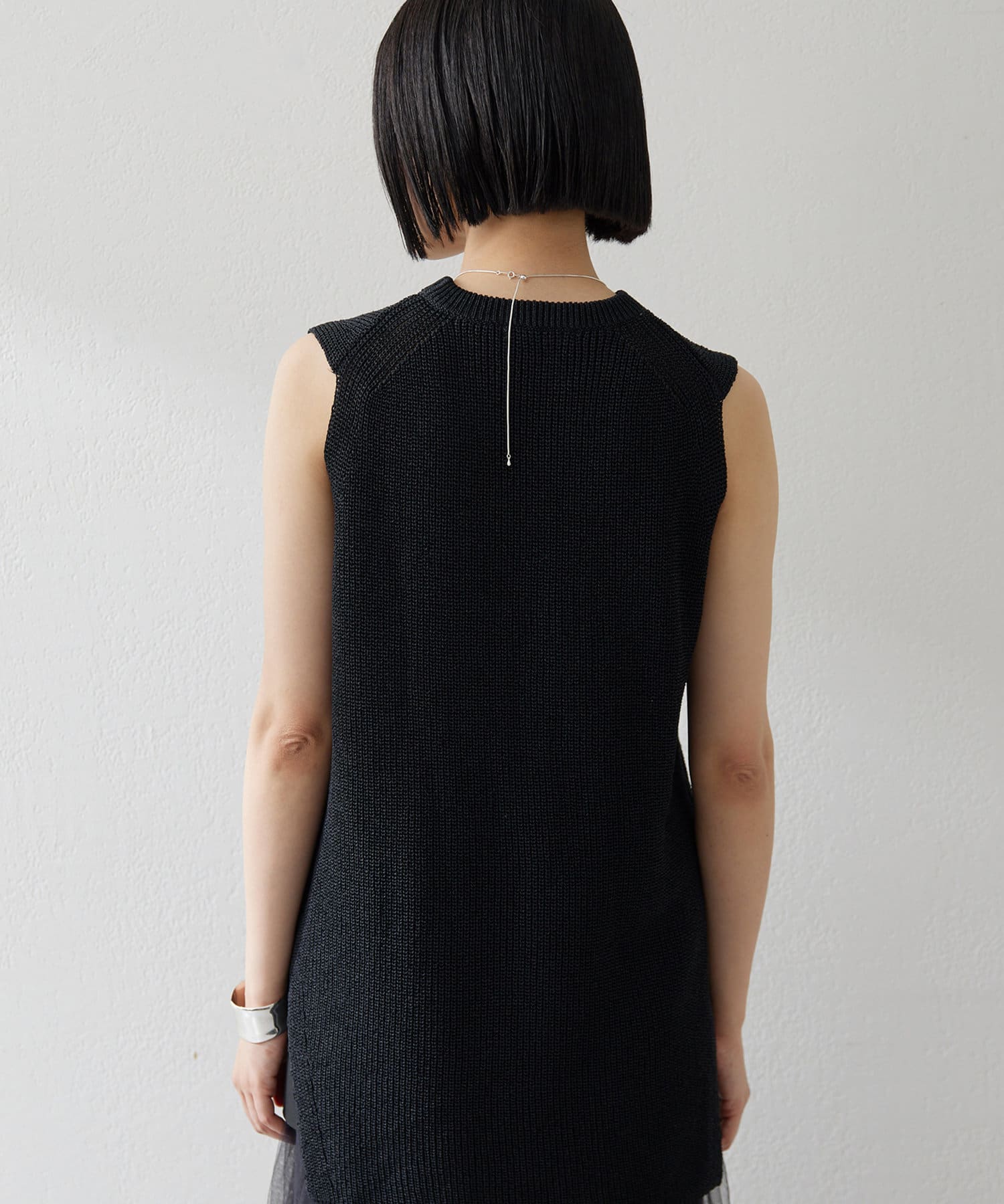 ■ローゲージで編まれたノースリーブニットプルオーバー。