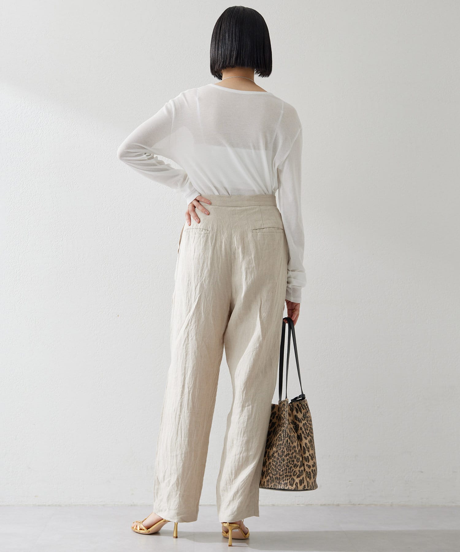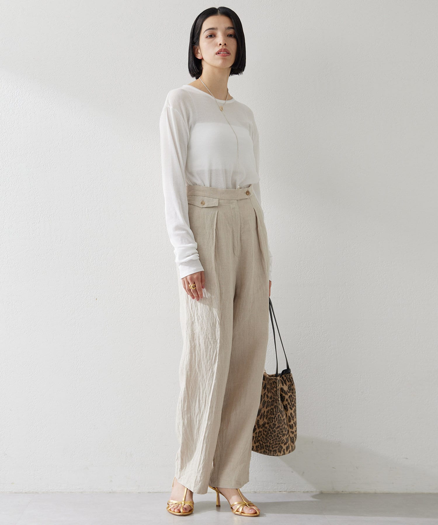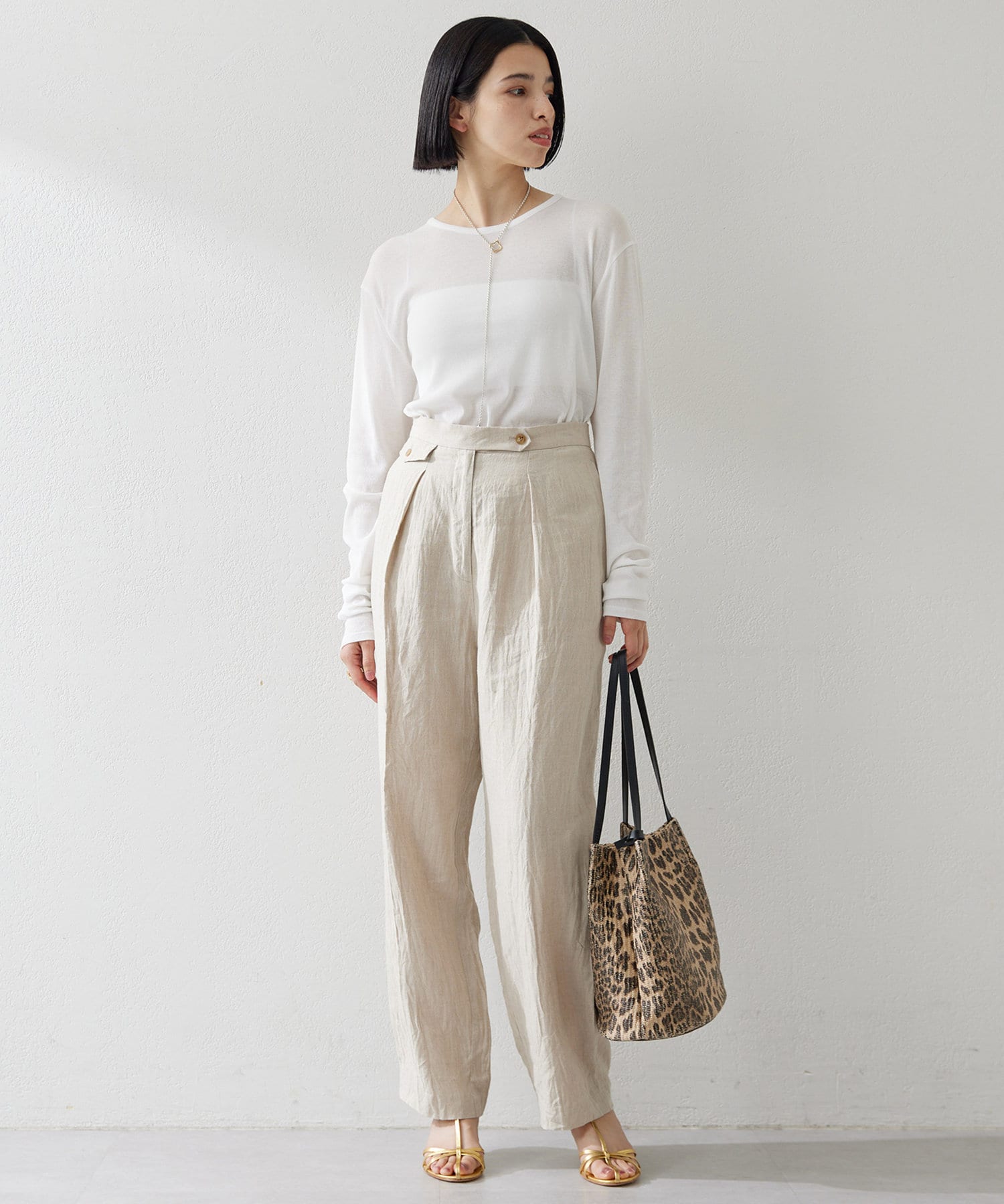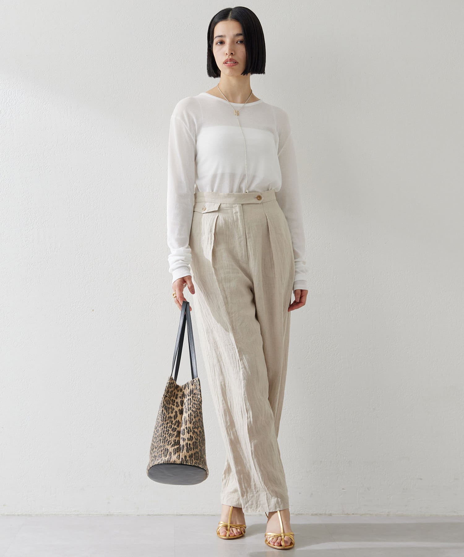 ■ゆるみのある素材感を生かした程よいゆとりのあるサイズ感で、身体のラインを拾いすぎないのもポイント。